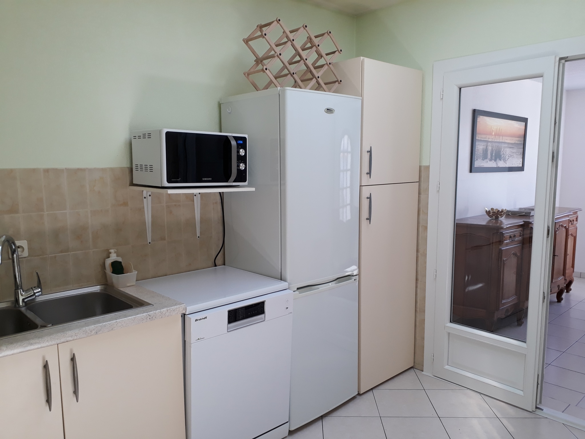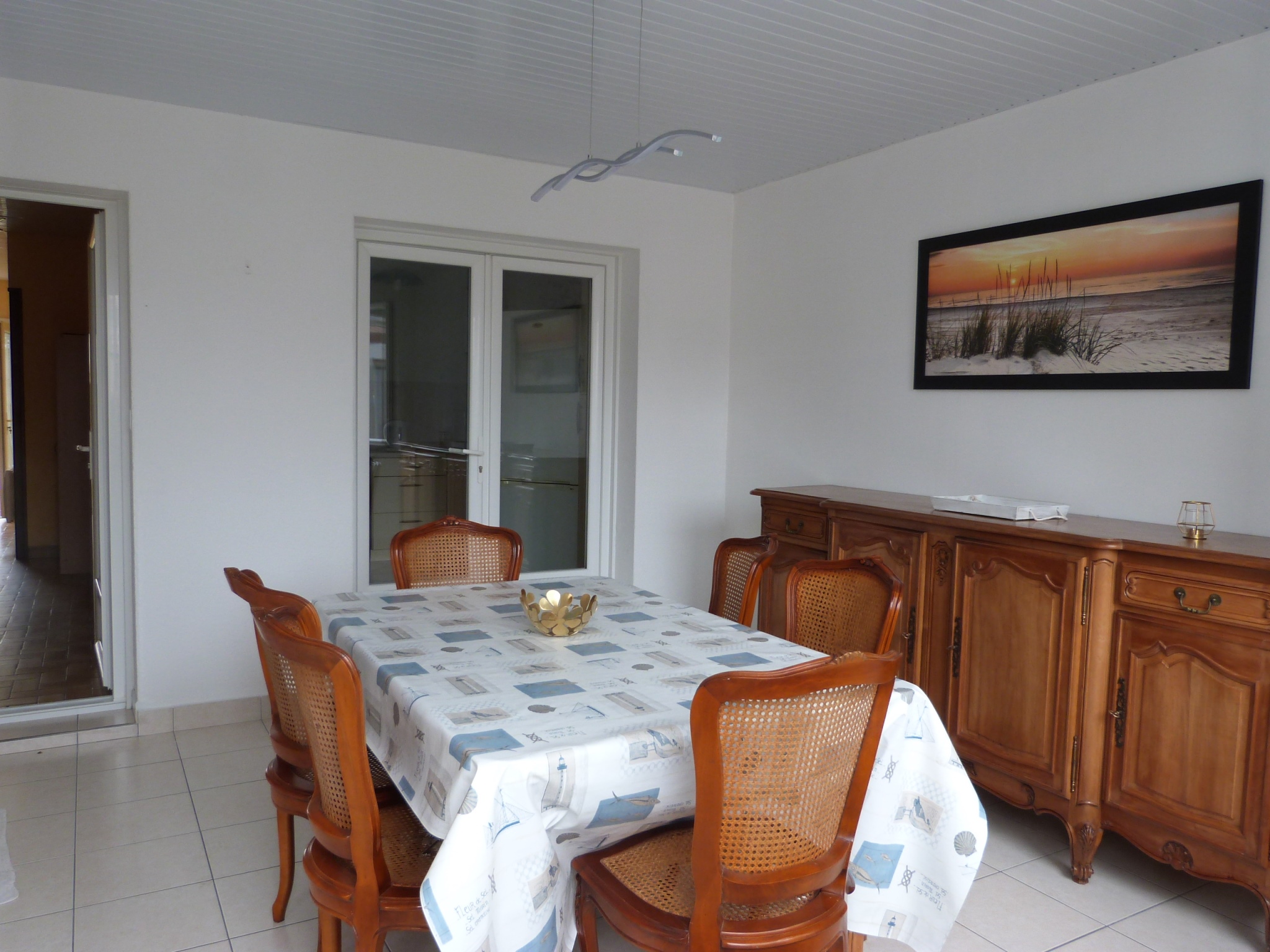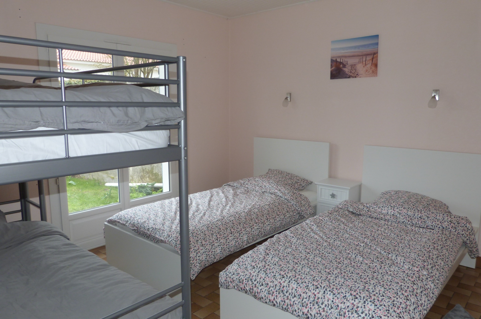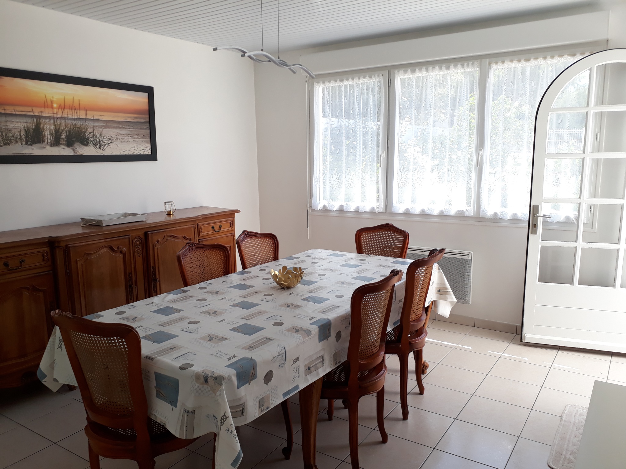 Maison indépendante de plain-pied composée d'un grand salon avec T.V et d'une salle à manger, cuisine aménagée et équipée (réfrigérateur-congélateur, plaque électriques, hotte, four, micro-onde), lave linge, une chambre (1x160cm) et une seconde chambre (2x90cm et lit superposé 2x90cm), salle d'eau et WC indépendant. . Courette à l'avant, jardin clos (salon de jardin, deux bains de soleil) derrière la maison et garage (possibilité de rentrer une voiture).