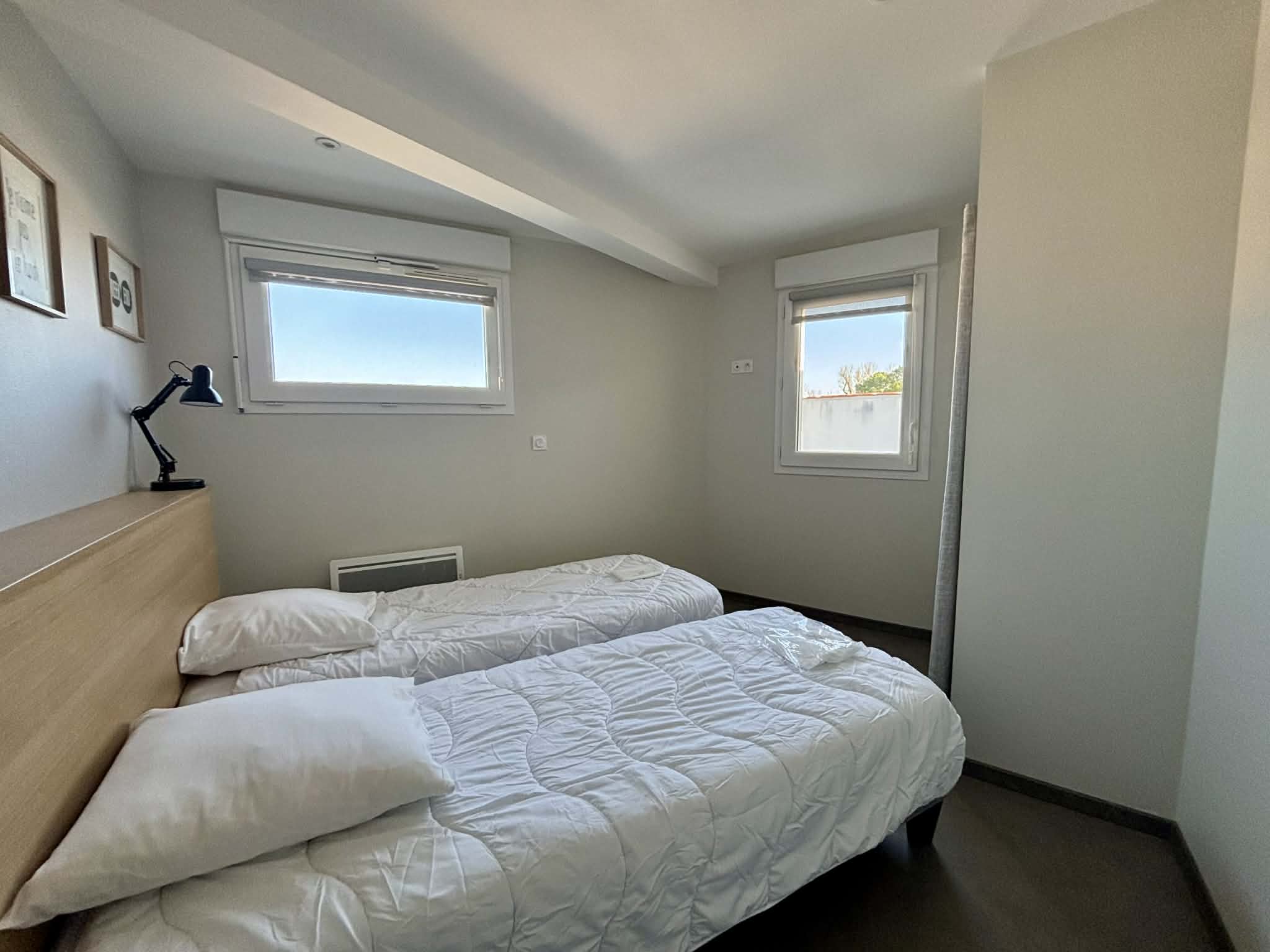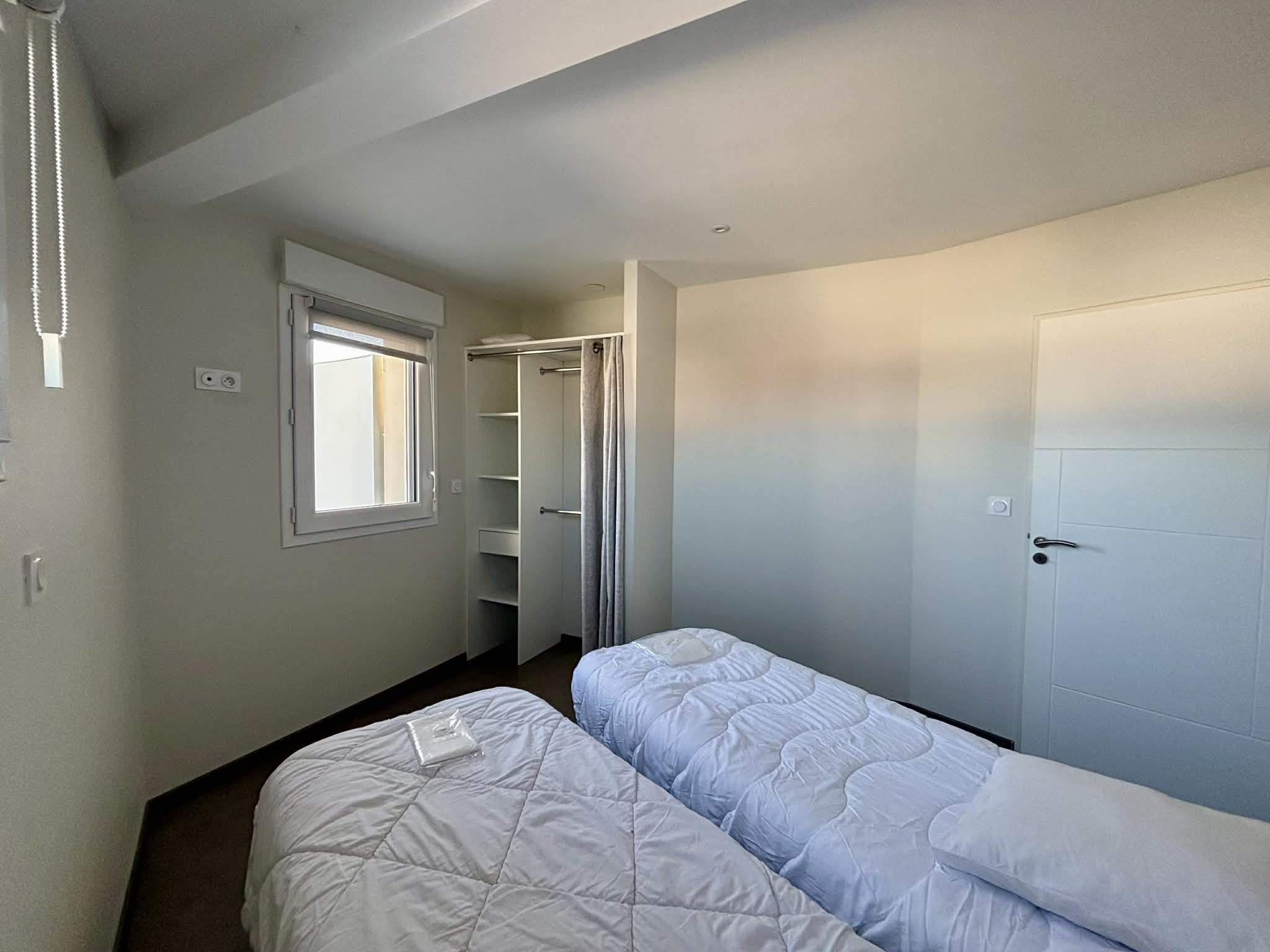Une chambre avec deux lits en 80 pouvant se rapprocher pour faire un lit en 160 et dressing,