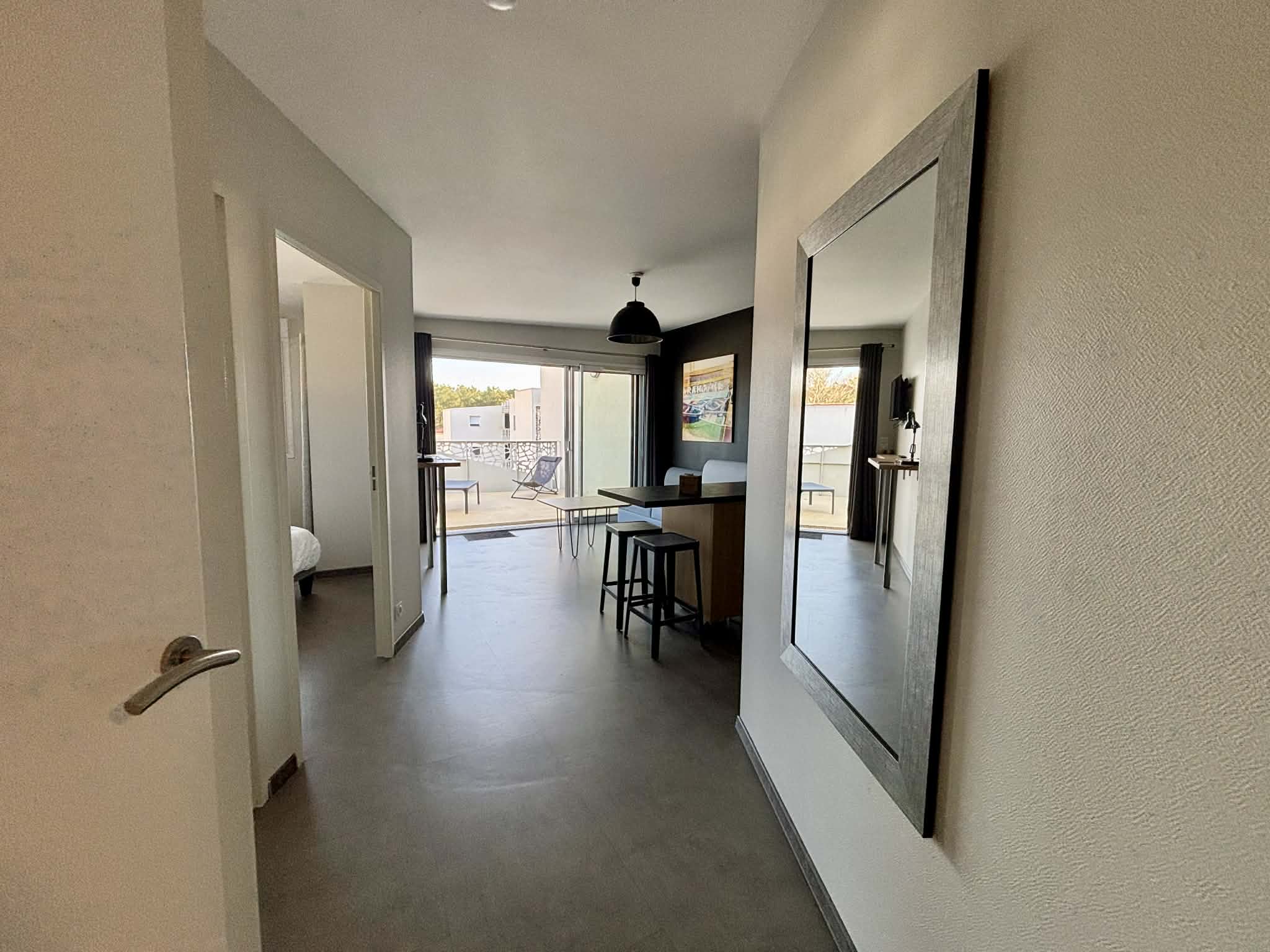 Salon/séjour avec îlot central, canapé convertible en 140, télévision écran plat,