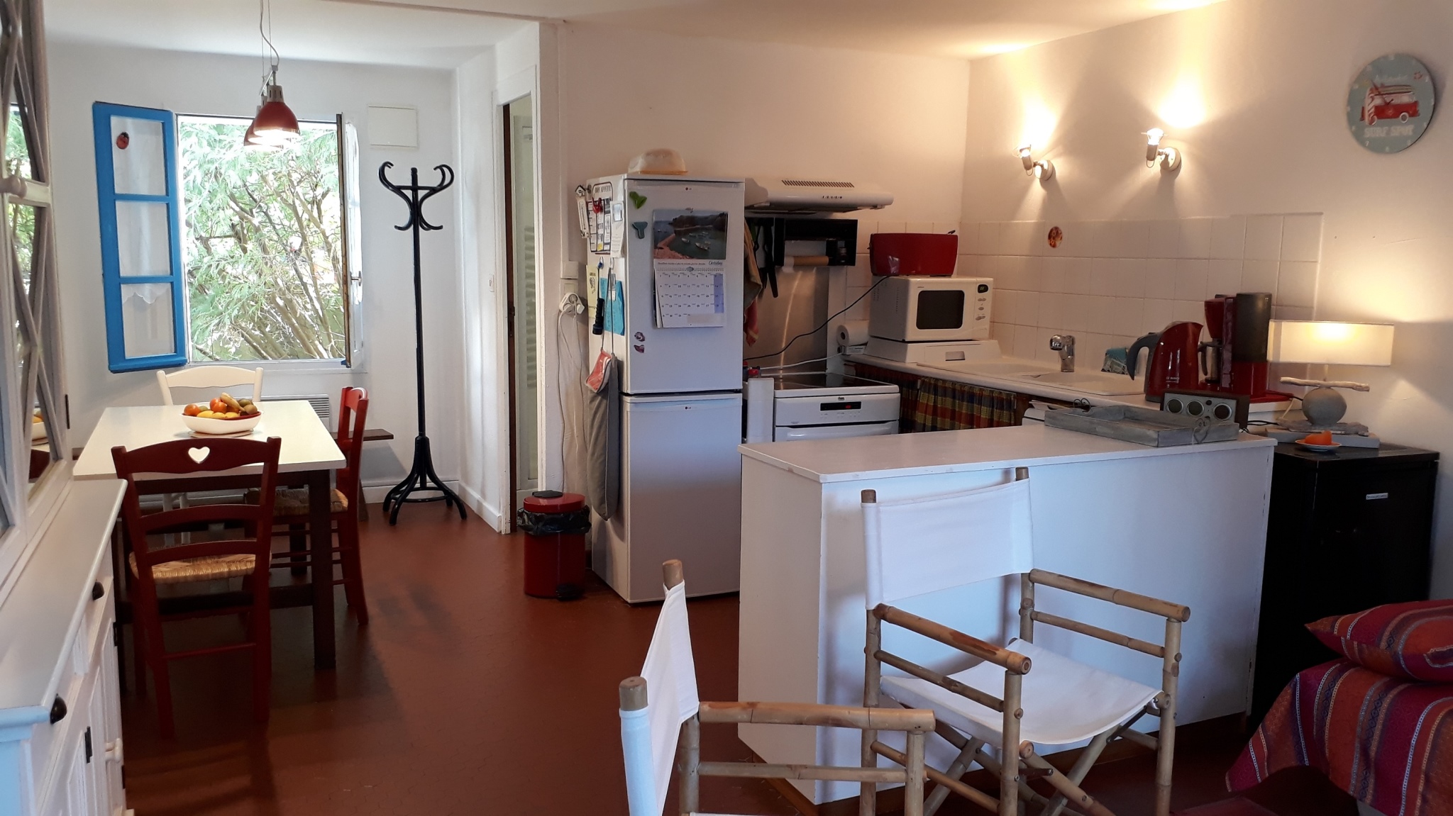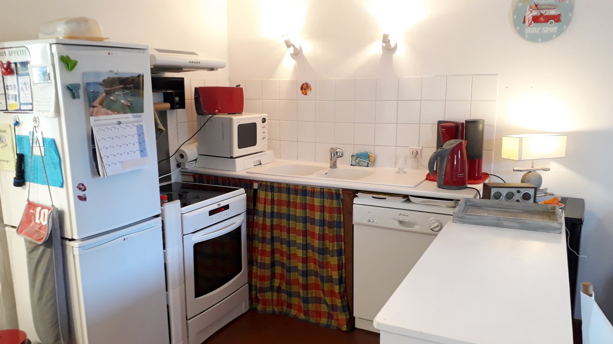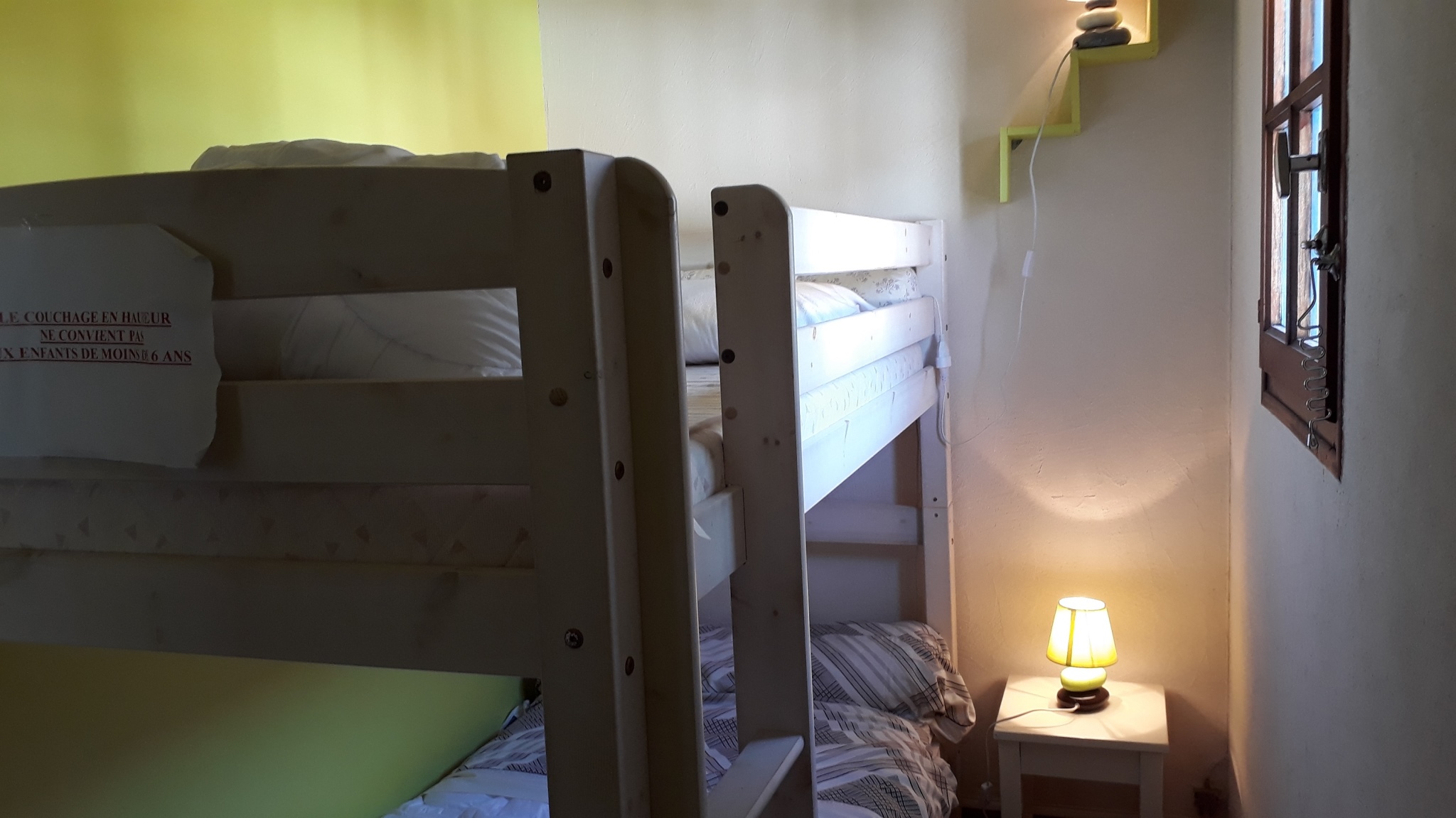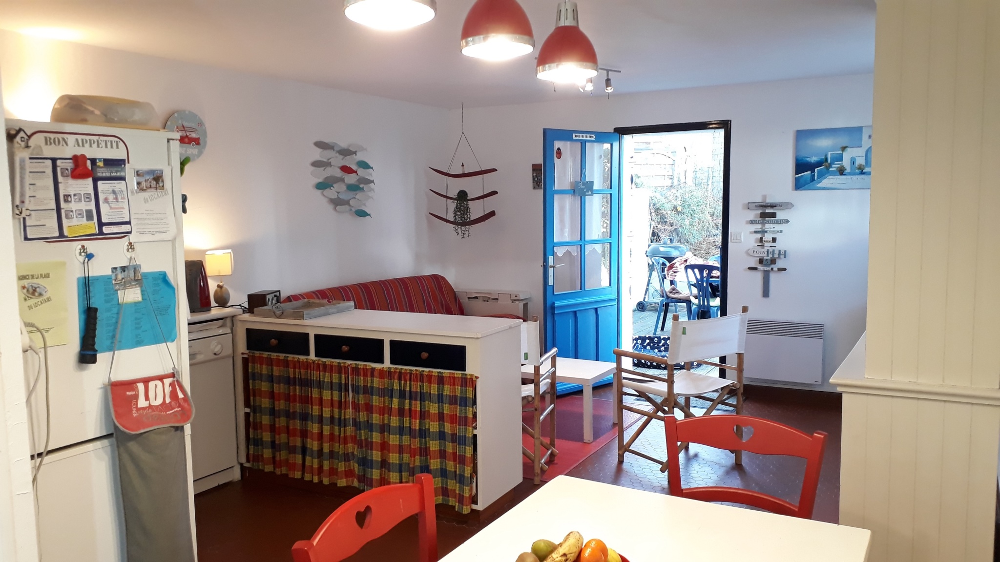 Venez profiter du calme de cette maison comprenant au rez de chaussée un salon (canapé convertible-télévision écran plat -lecteur dvd), un coin cuisine (plaque induction-four-2 réfrigérateurs/conservateurs), coin repas, salle d'eau avec wc, à l'étage (accès par escalier extérieur), 2 chambres l'une avec 1 lit de 140 et une TV, la seconde avec 2 lits de 90 superposés (le couchage en hauteur ne convient pas aux enfants de moins de 6 ans), salle d'eau avec wc, dégagement avec canapé convertible, rangements, lave linge et congélateur. Petite cou clôturée à l'abri des regard avec terrasse. Animaux admis.