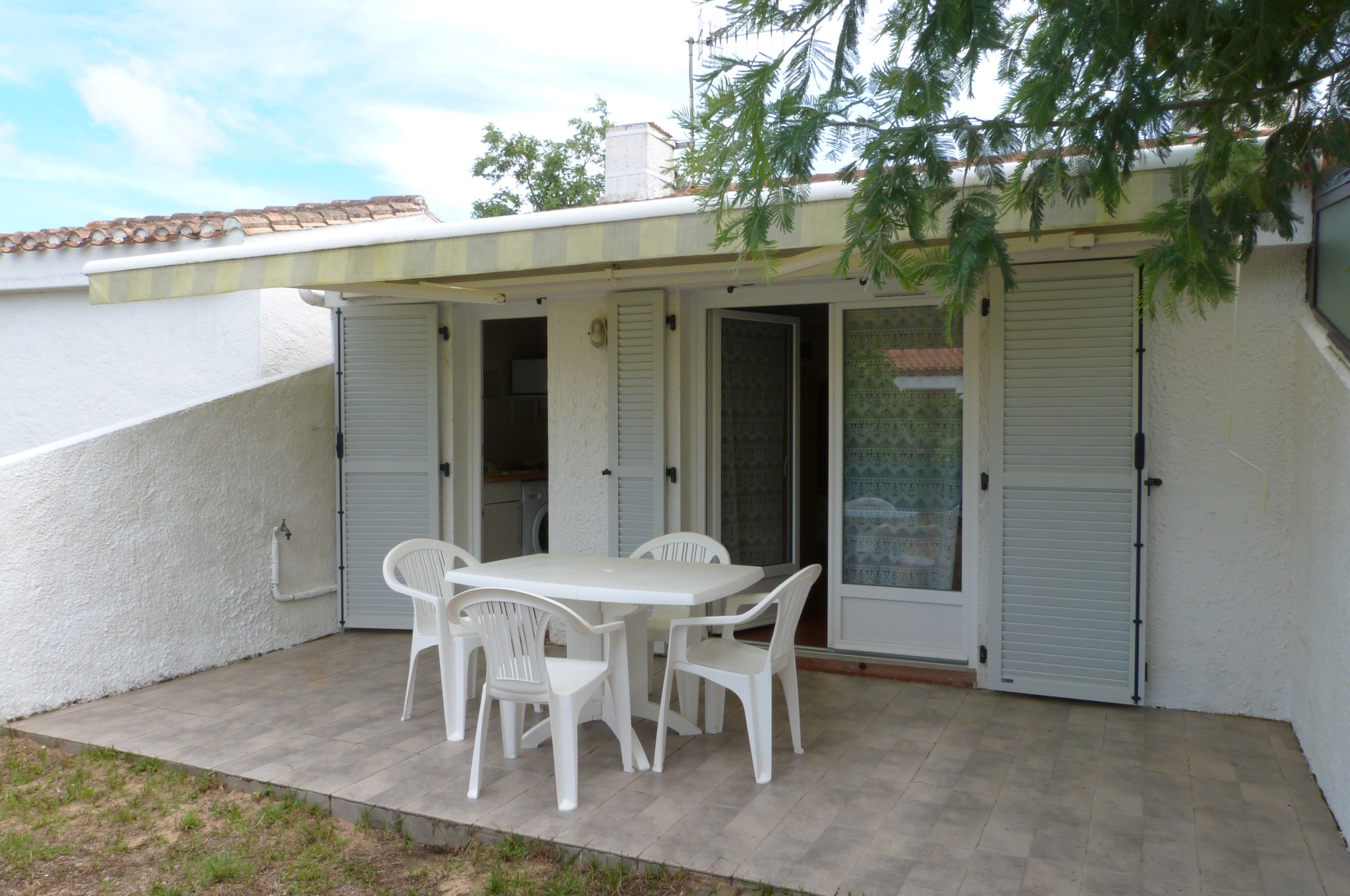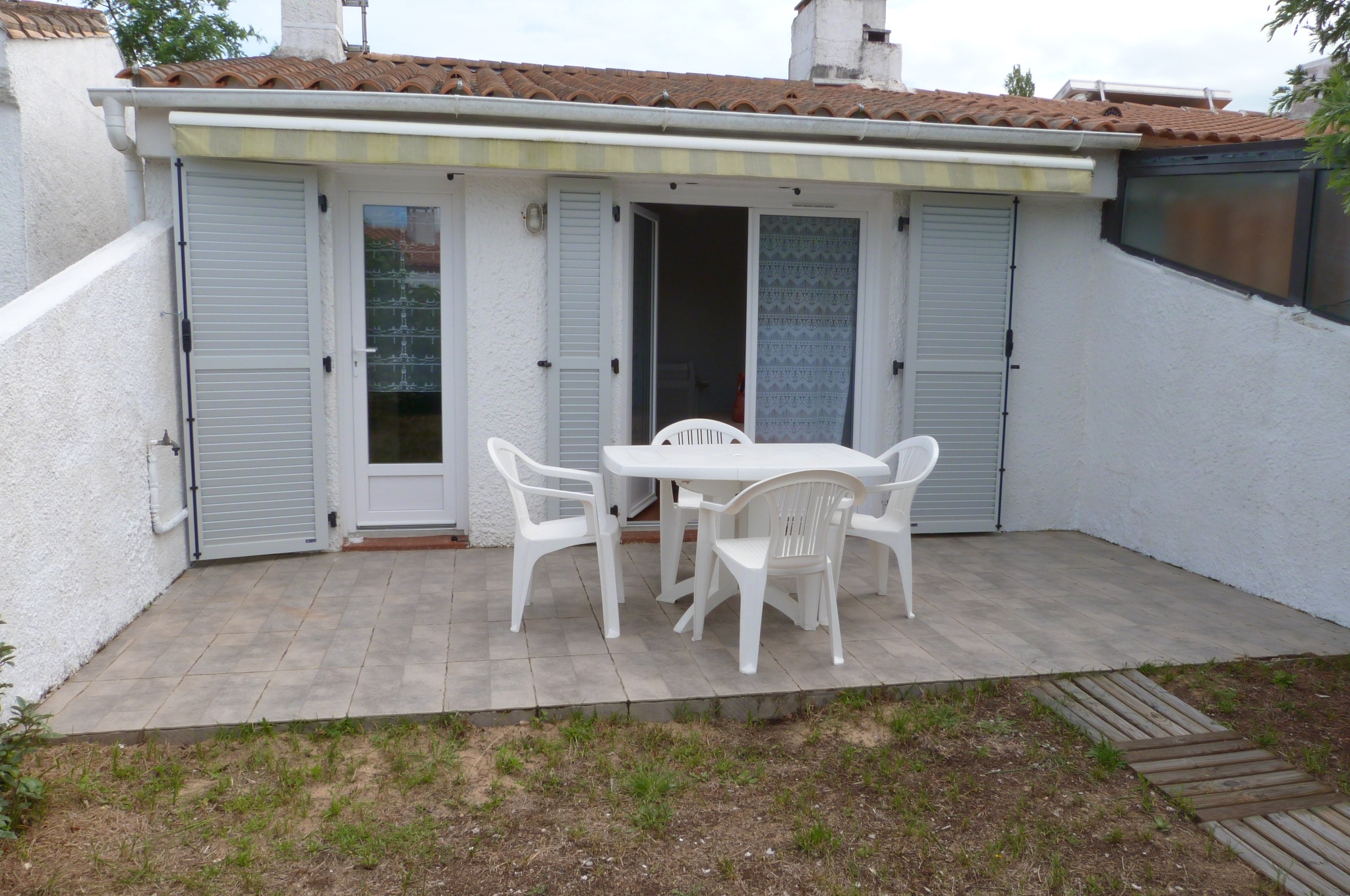 Profitez de son salon de jardin pour 4 pers sur terrasse équipée d'un store banne, barbecue, 2 bains de soleil et 2 vélos à disposition (1 homme - 1 femme).