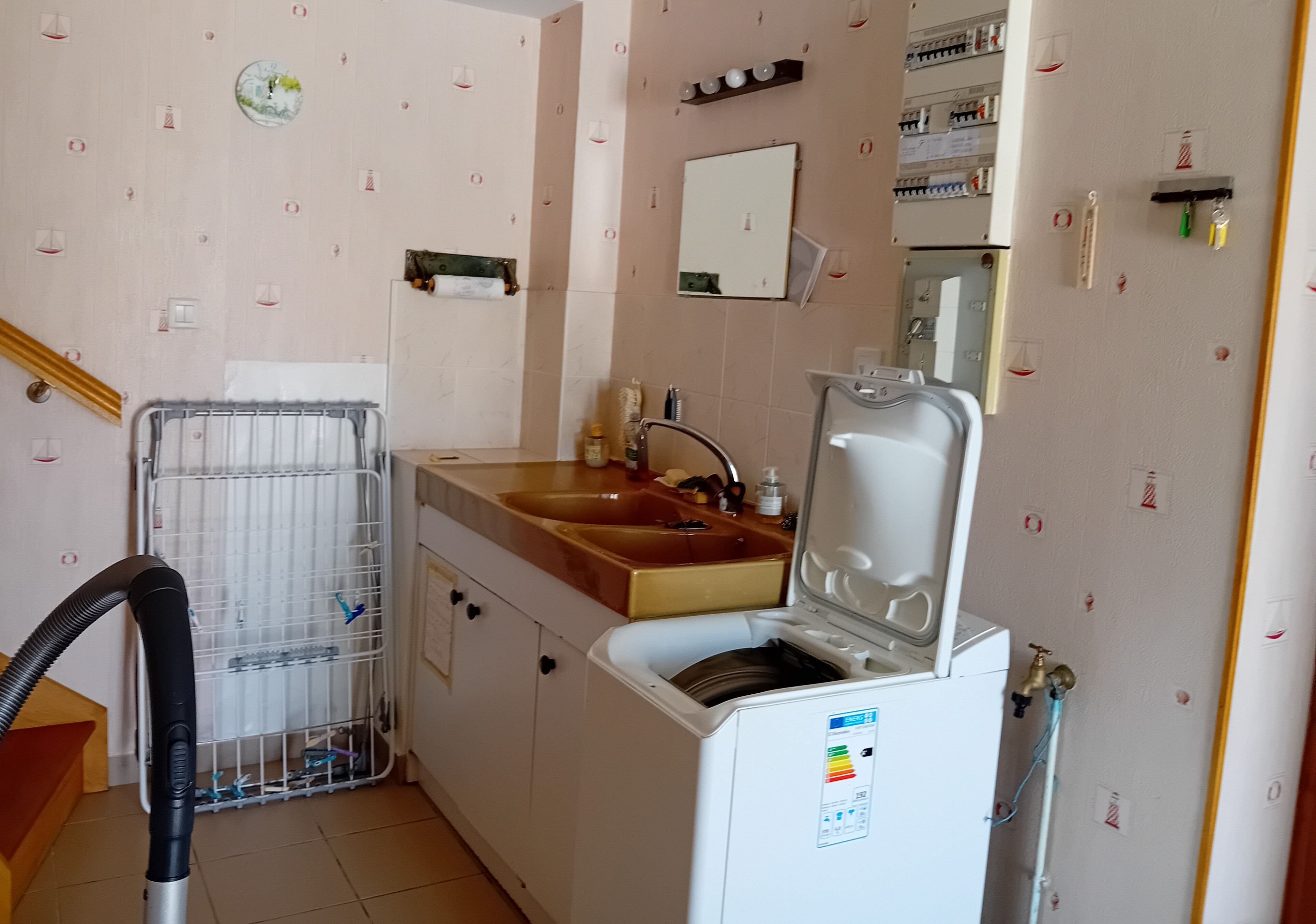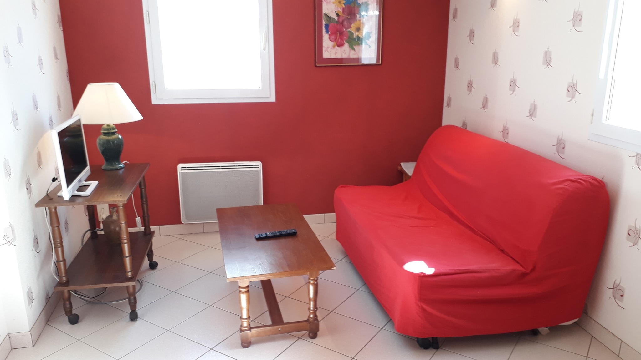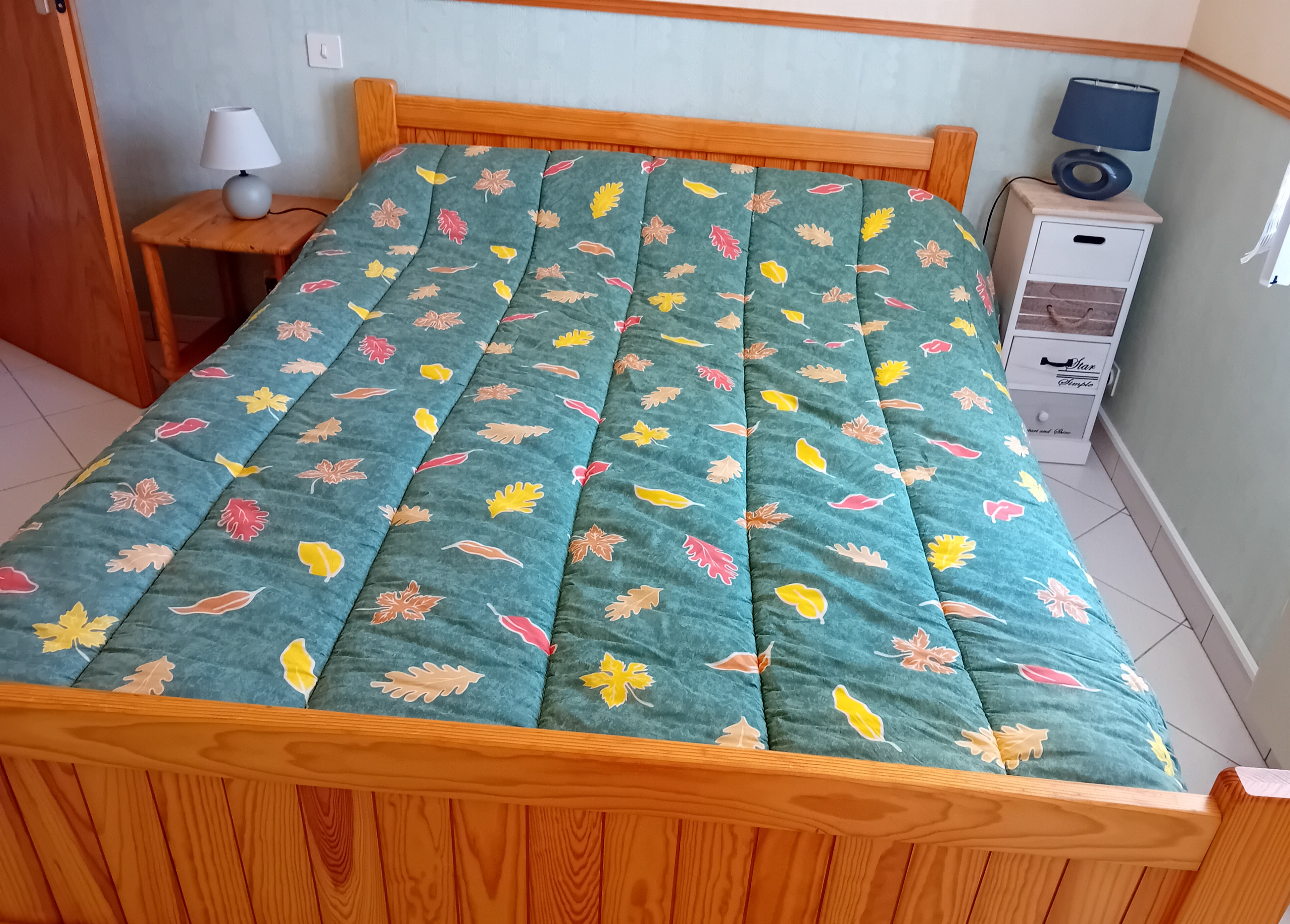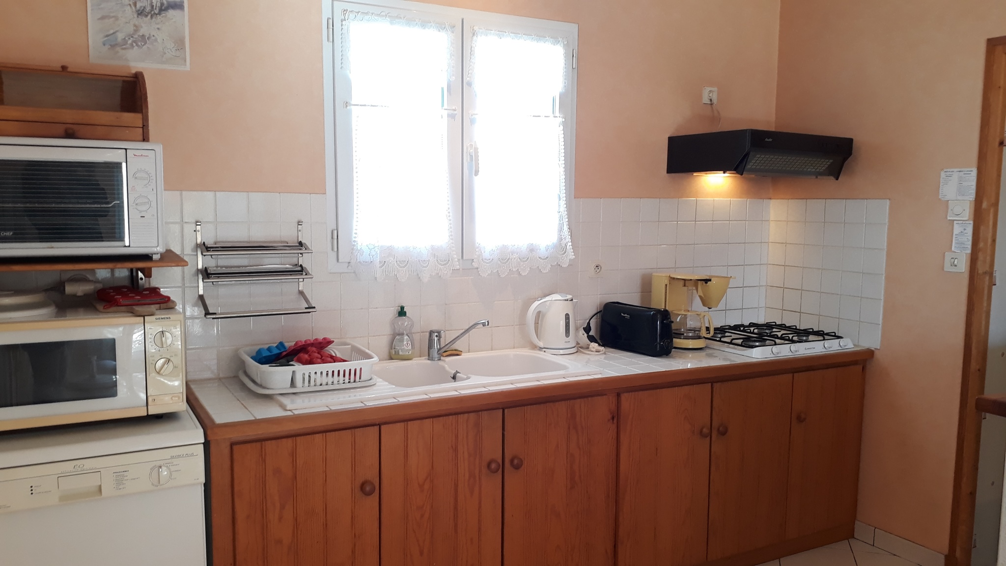 une cuisine ouverte (gazinière-four électrique-réfrigérateur/conservateur) avec lave vaisselle, d'un séjour avec coin salon (télévision), de deux chambres avec chacune 1 lit de 140, d'une troisième chambre avec 2 lits de 90, une salle d'eau, un WC séparé, un cellier avec lave linge. Le tout sur un jardin clos avec terrasse ensoleillée. Animaux admis.