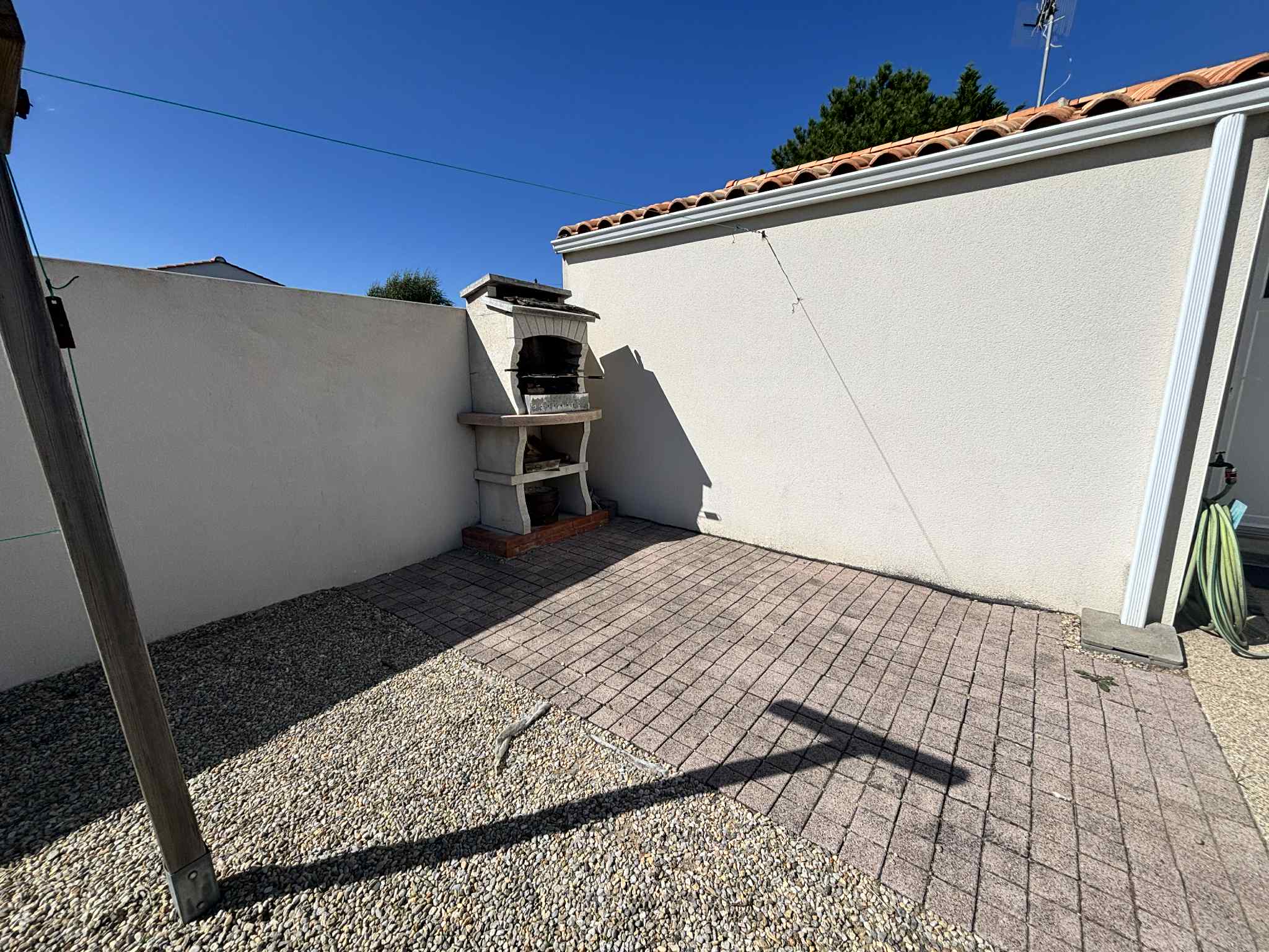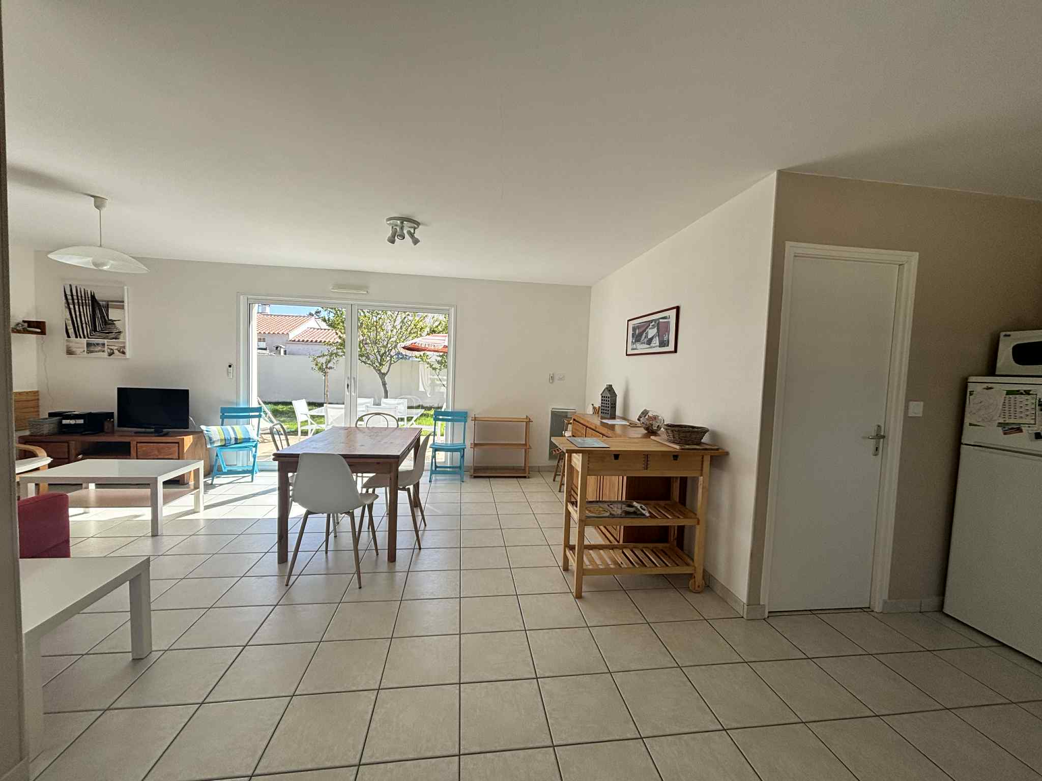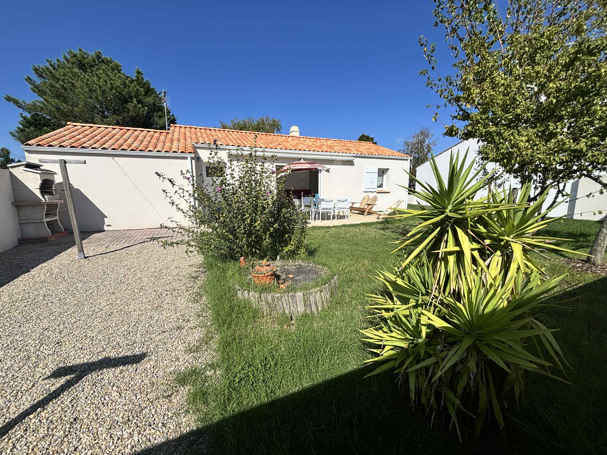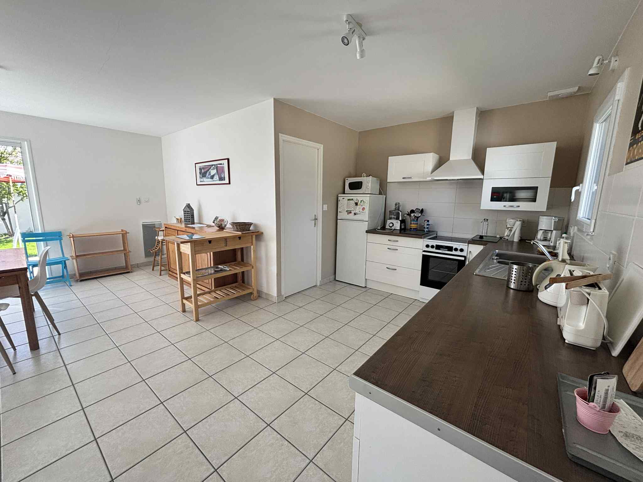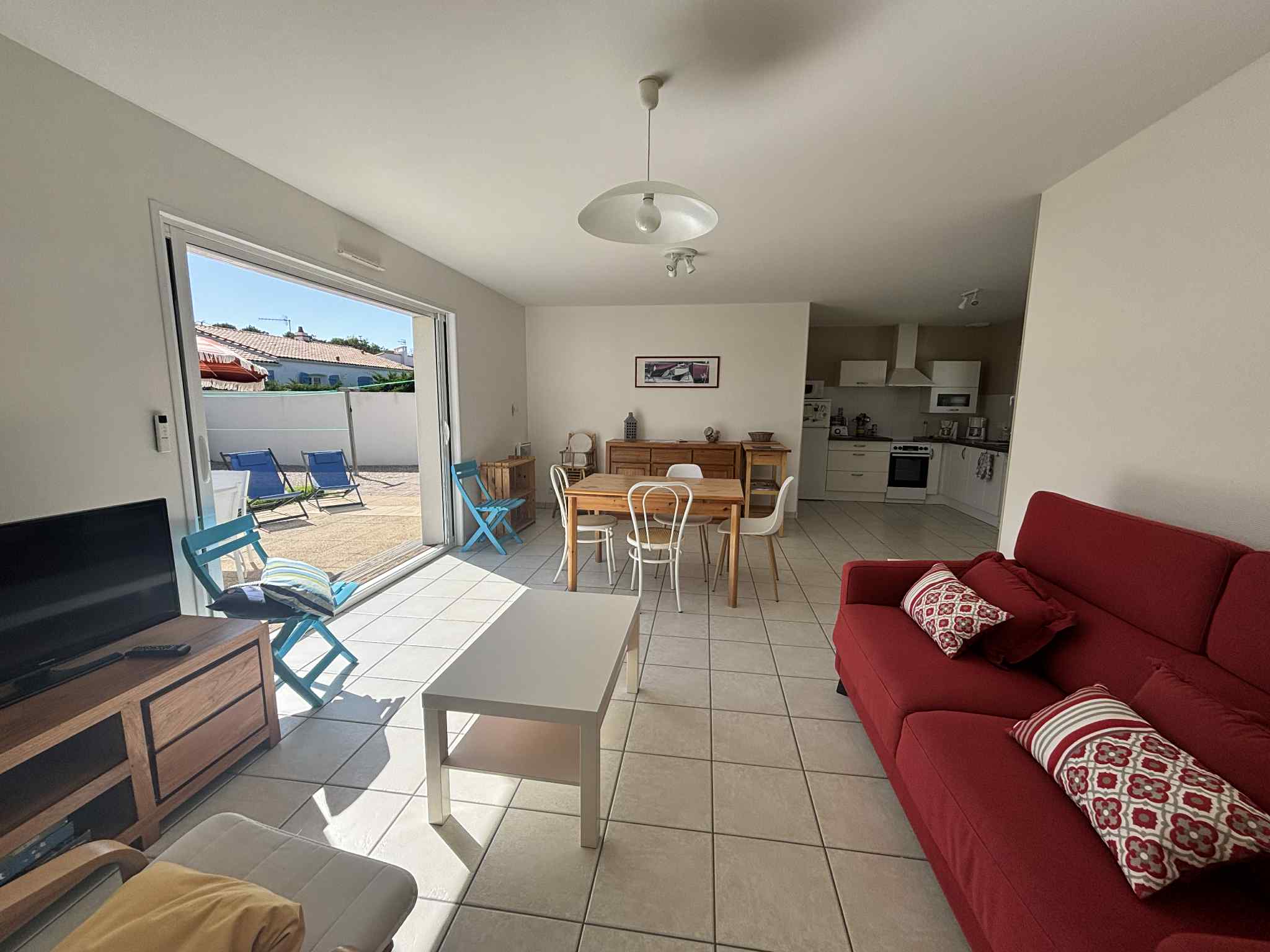 Maison située dans le quartier de La Terrière - La Tranche Sur Mer - à 1,4 km de la plage et 2800 m du centre-ville. comprenant un séjour avec écran plat, une cuisine ouverte (équipée avec plaque vitrocéramique, four, micro-ondes, lave vaisselle, réfrigérateur-congélateur), une première chambre avec un lit de 160 et une deuxième chambre avec 2 lits de 90. La salle de bain comprend une douche à l'italienne et un meuble lavabo, les WC sont indépendants. Un cellier avec un lave-linge et enfin une terrasse avec jardin de 400 m², salon de jardin, bains de soleil, store banne, barbecue en dur. Les animaux ne sont pas admis.