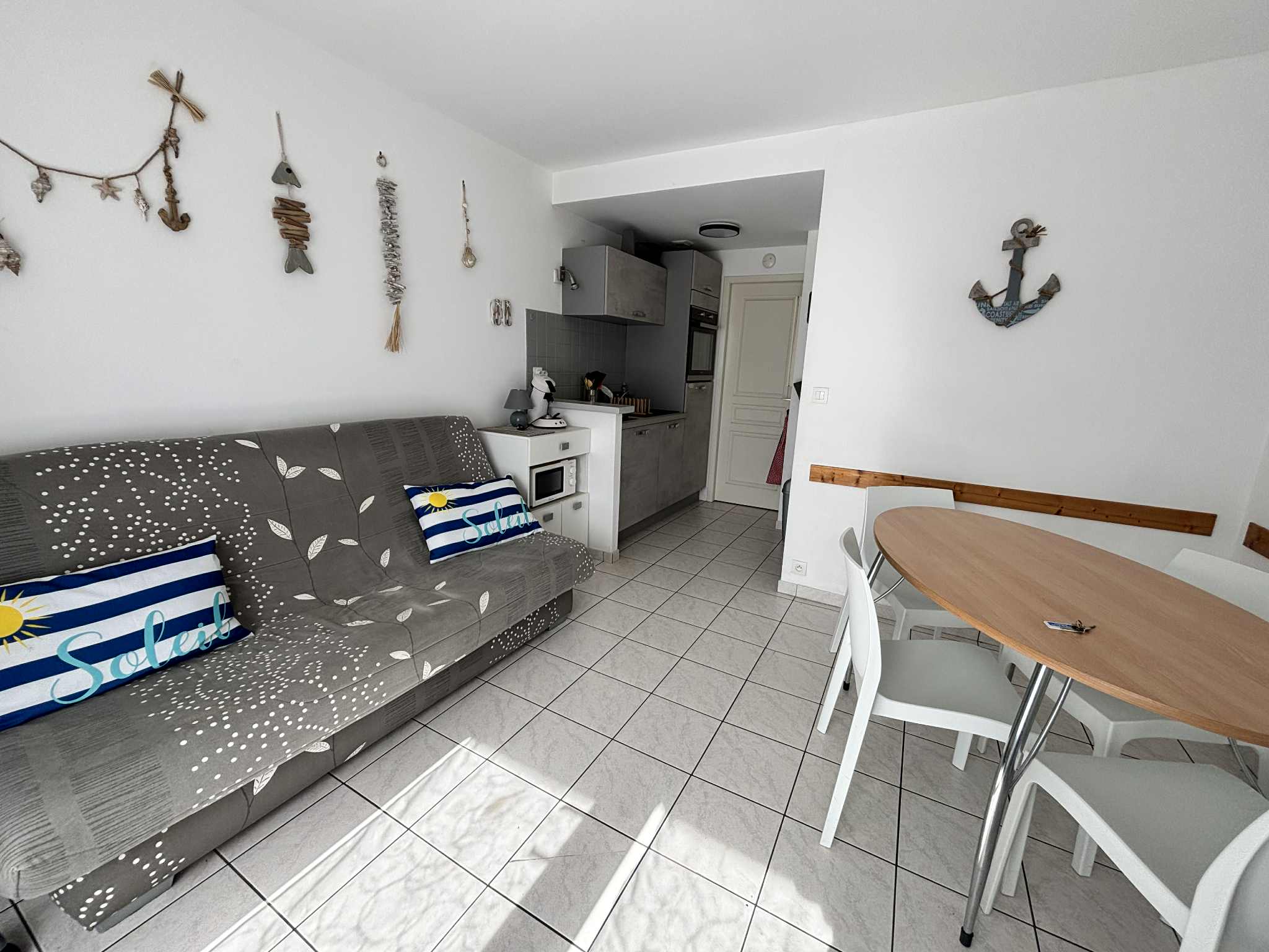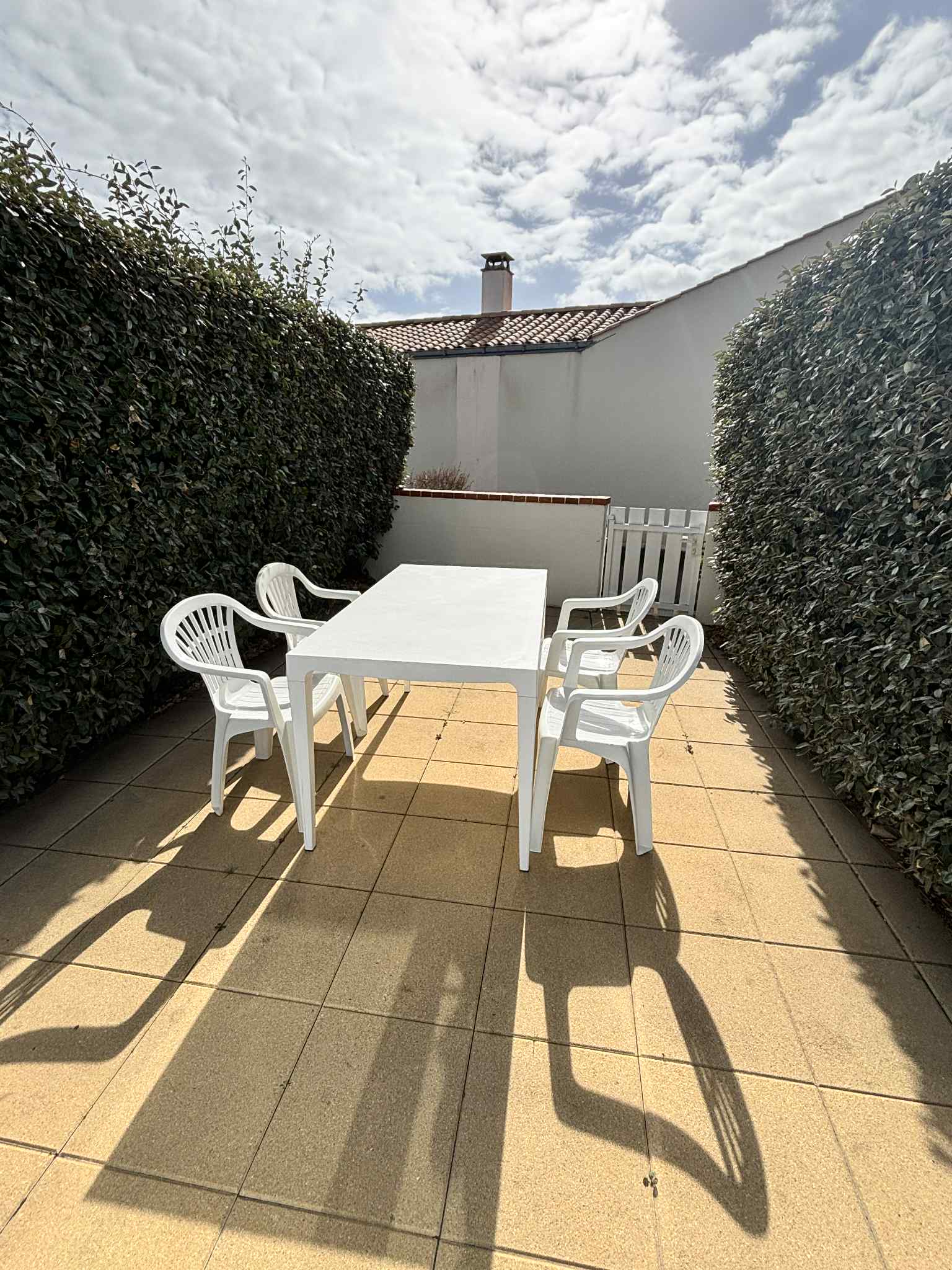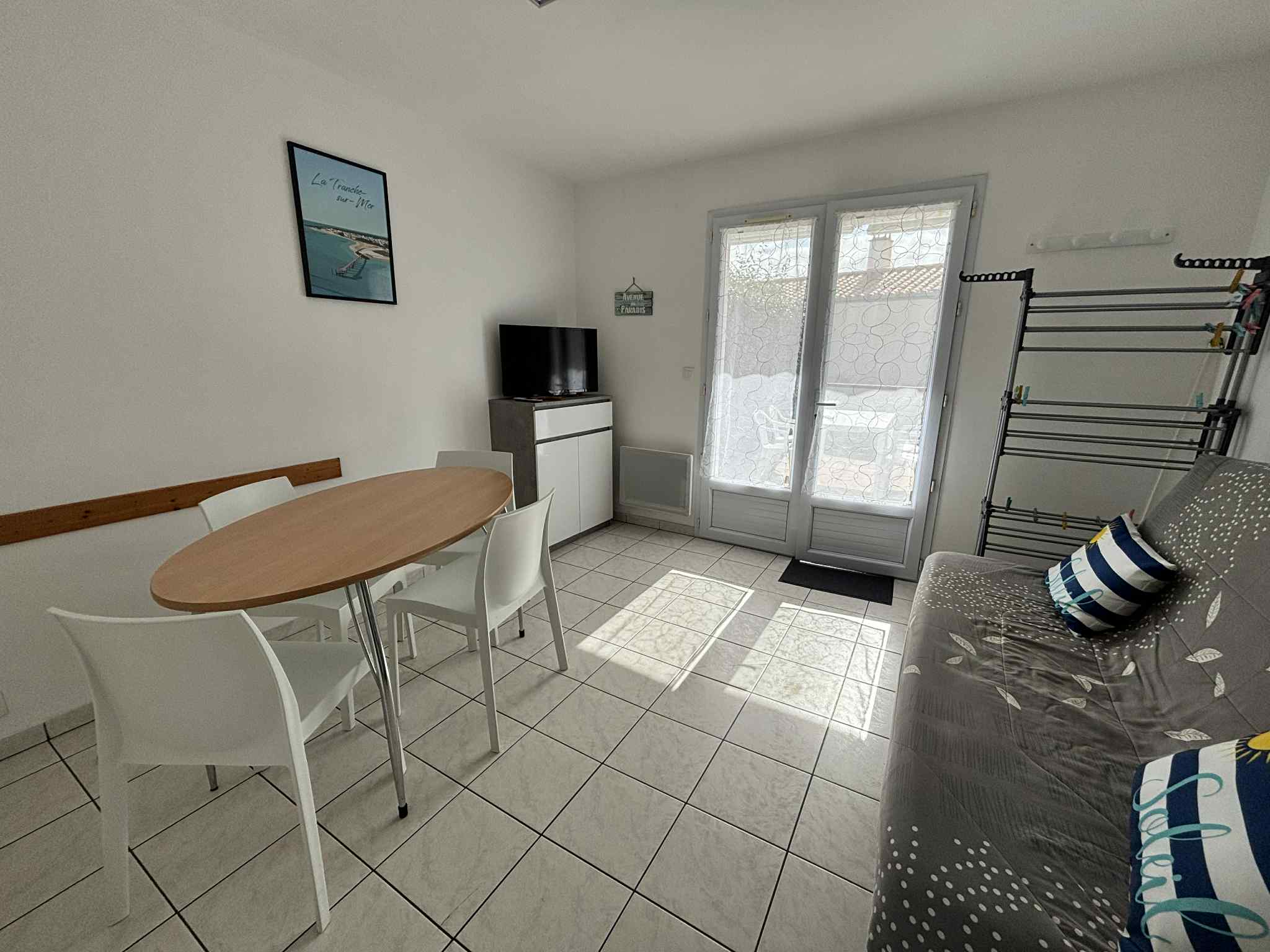 Dans une résidence récente à 100 m de la plage des Générelles et 600 m du centre ville, nous vous proposons un appartement pour 4 personnes avec courette et stationnement privé composé d'un séjour avec canapé clic-clac 140, kitchenette aménagée et équipée avec petit réfrigérateur, four, micro-onde et lave-linge, 1 chambre avec 1 lit de 140 armoire-penderie, salle d'eau (Douche, lavabo et WC), un salon de jardin avec banne et barbecue sont également à votre disposition lors de votre séjour. Animaux non acceptés. Cet appartement est classé 1* en meublé tourisme. La Tranche sur Mer est une petite ville au bord de l'Océan qui a gardé son caractère avec ses maisons basses et ses petites rues pavées.