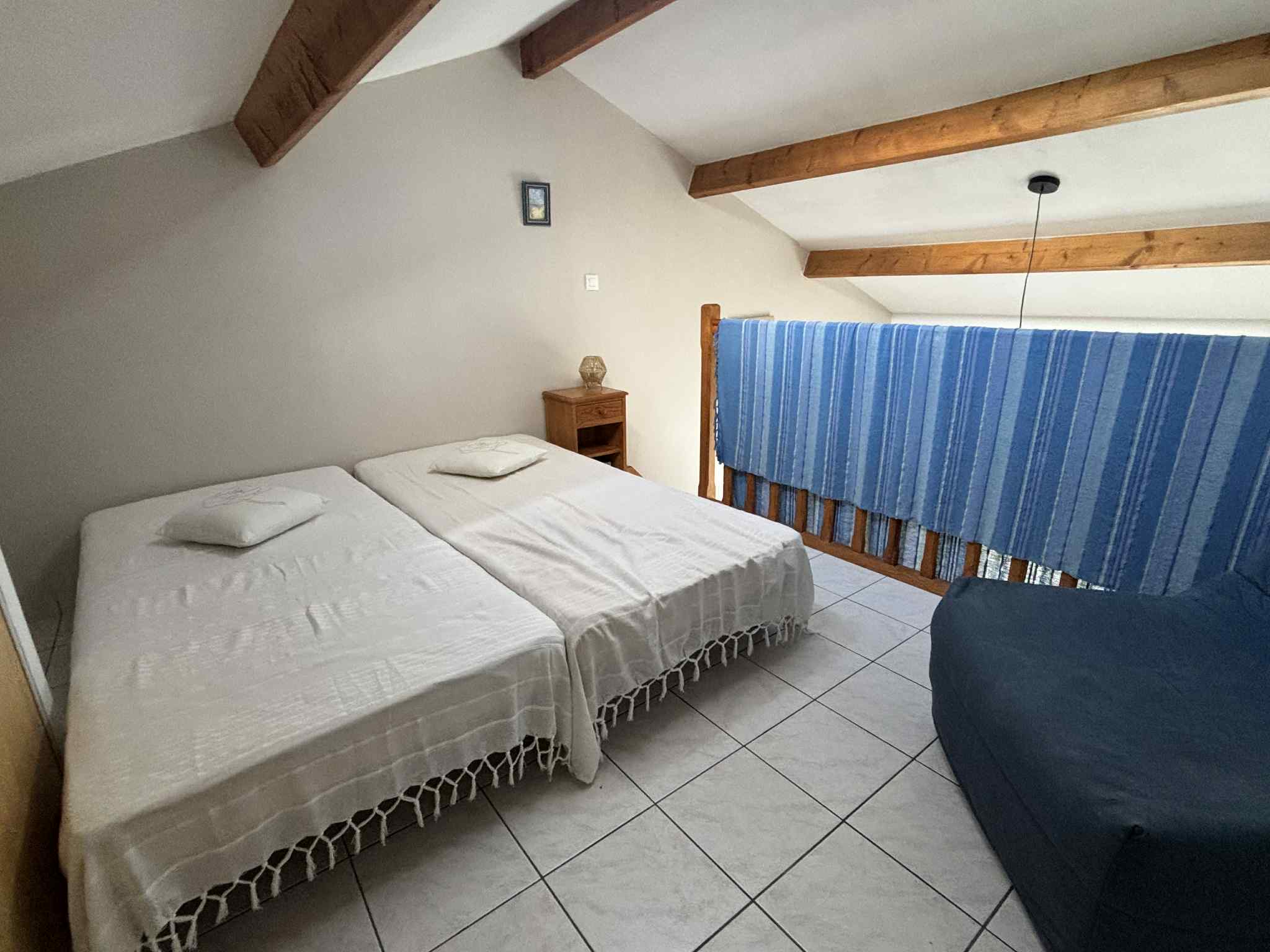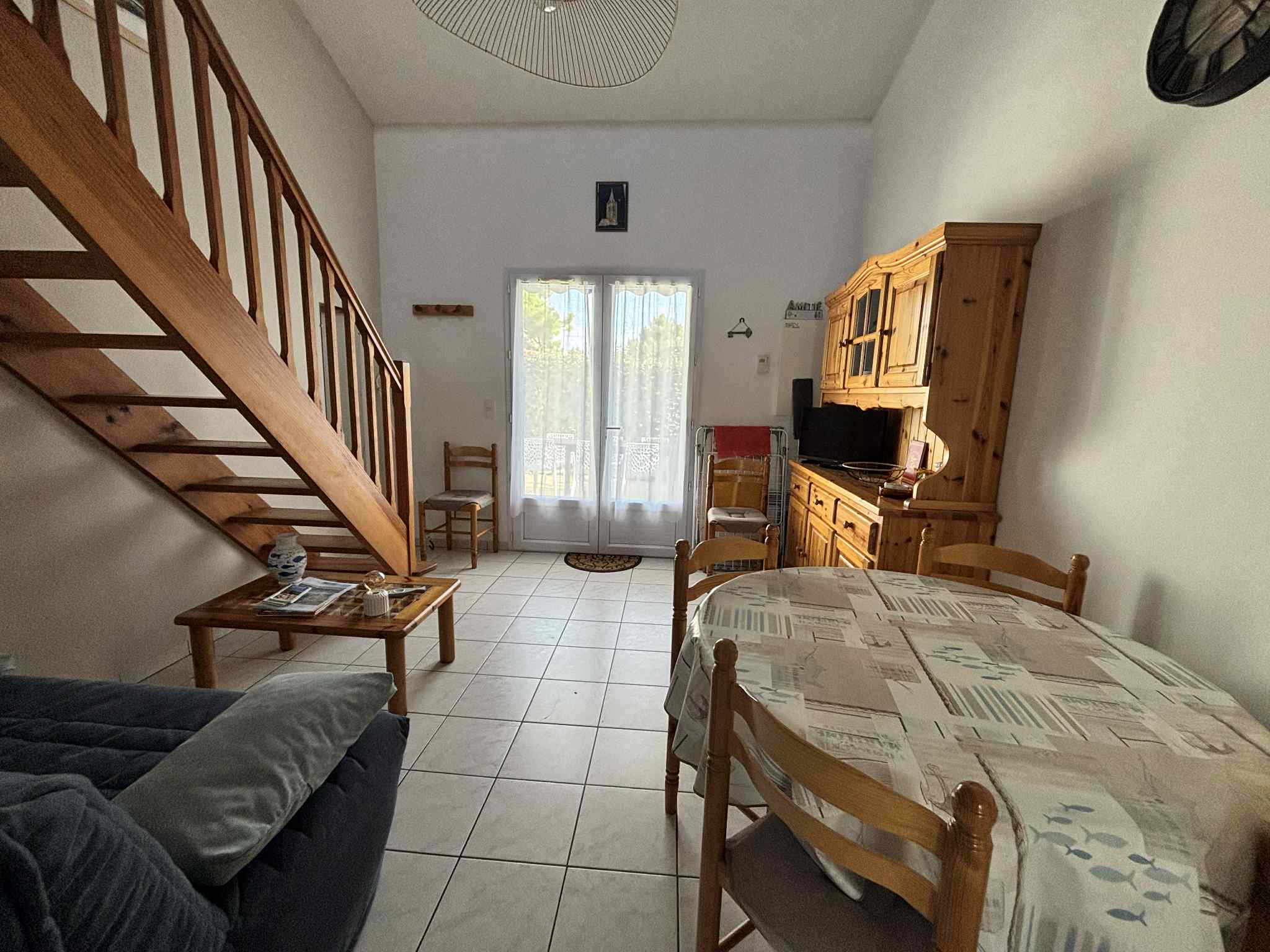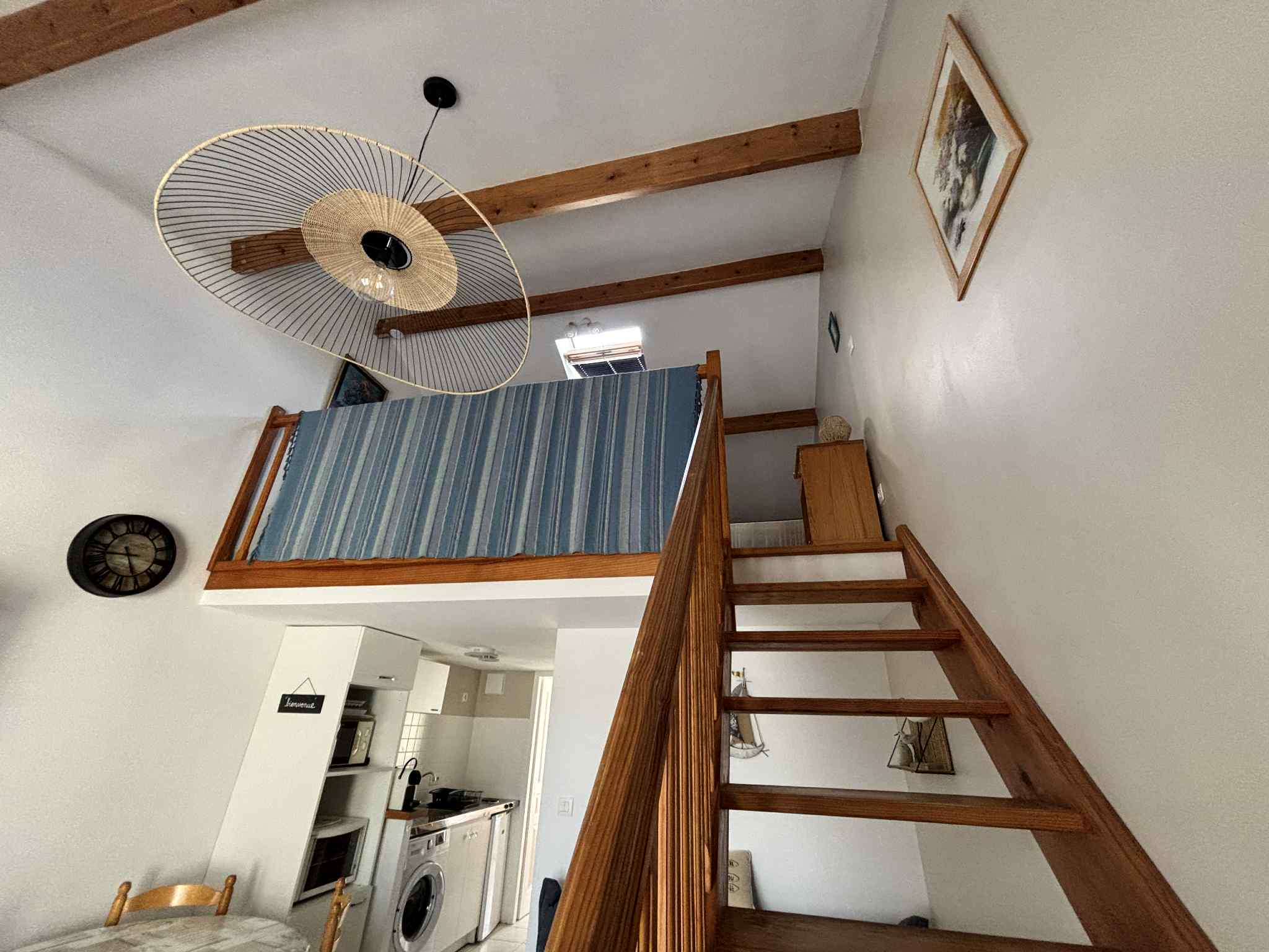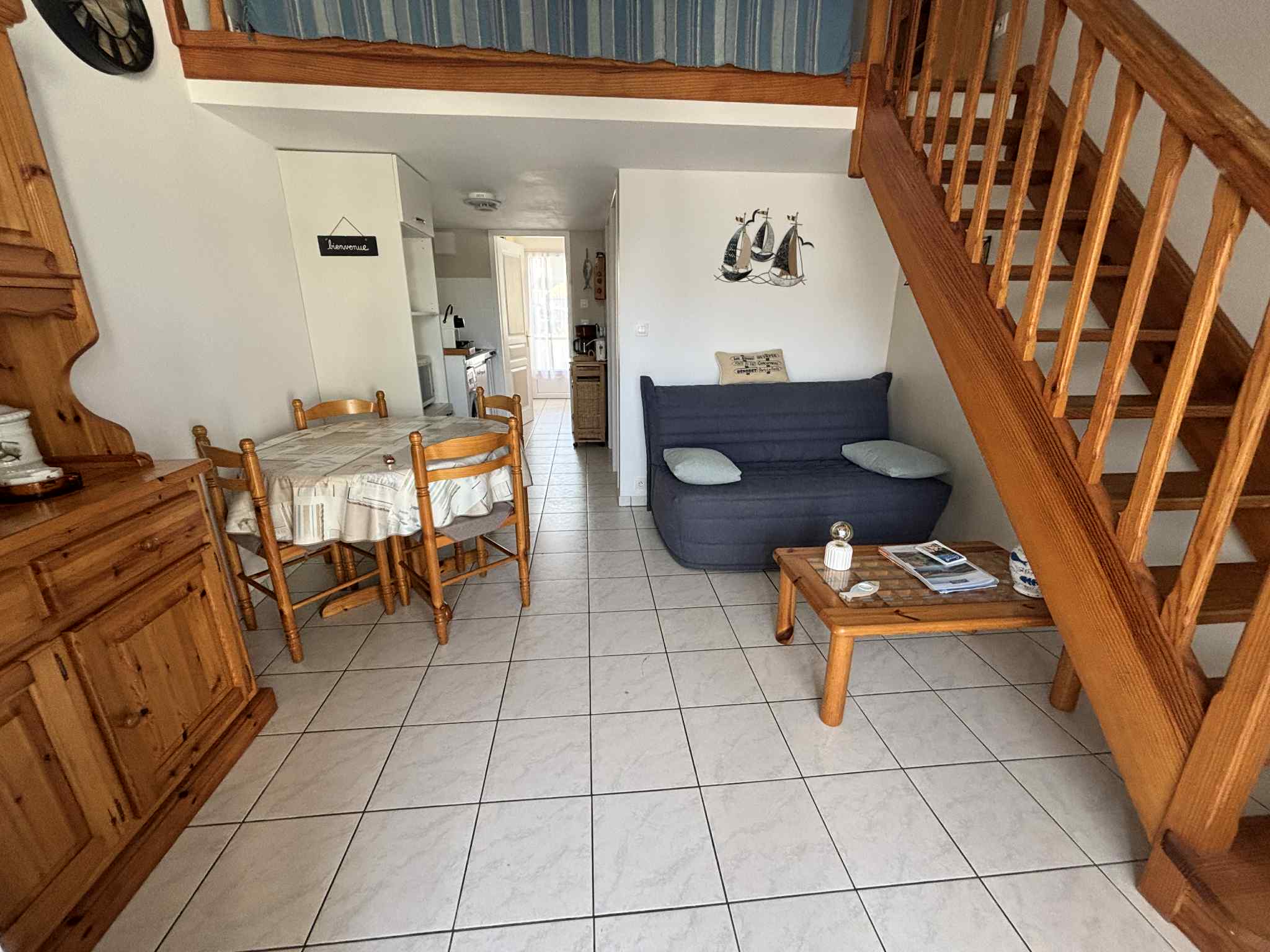 Elle se compose d'un séjour avec BZ de 140 et TV écran plat, kitchenette (2 plaques électriques, mini-four, micro onde, réfrigérateur, lave linge), 1 chambre avec 1 lit de 140, une salle d'eau (Douche + lavabo), WC, 1 mezzanine avec 2 lits de 90,1 lavabo et WC. 2 courettes dont une au sud avec salon de jardin et store-banne, un stationnement privé. Animaux non admis.