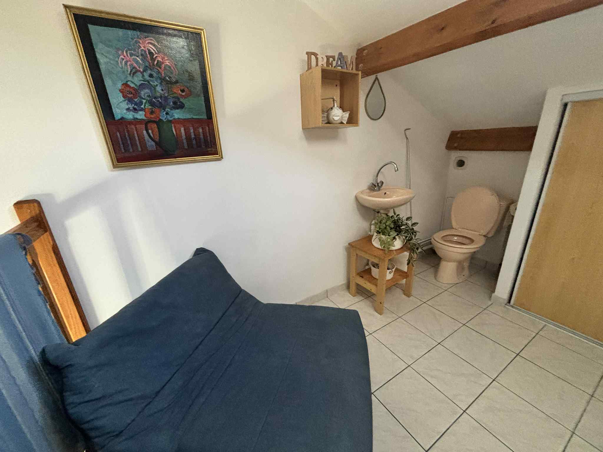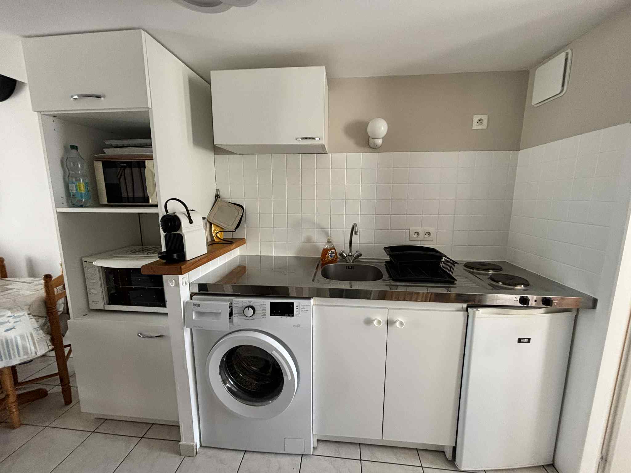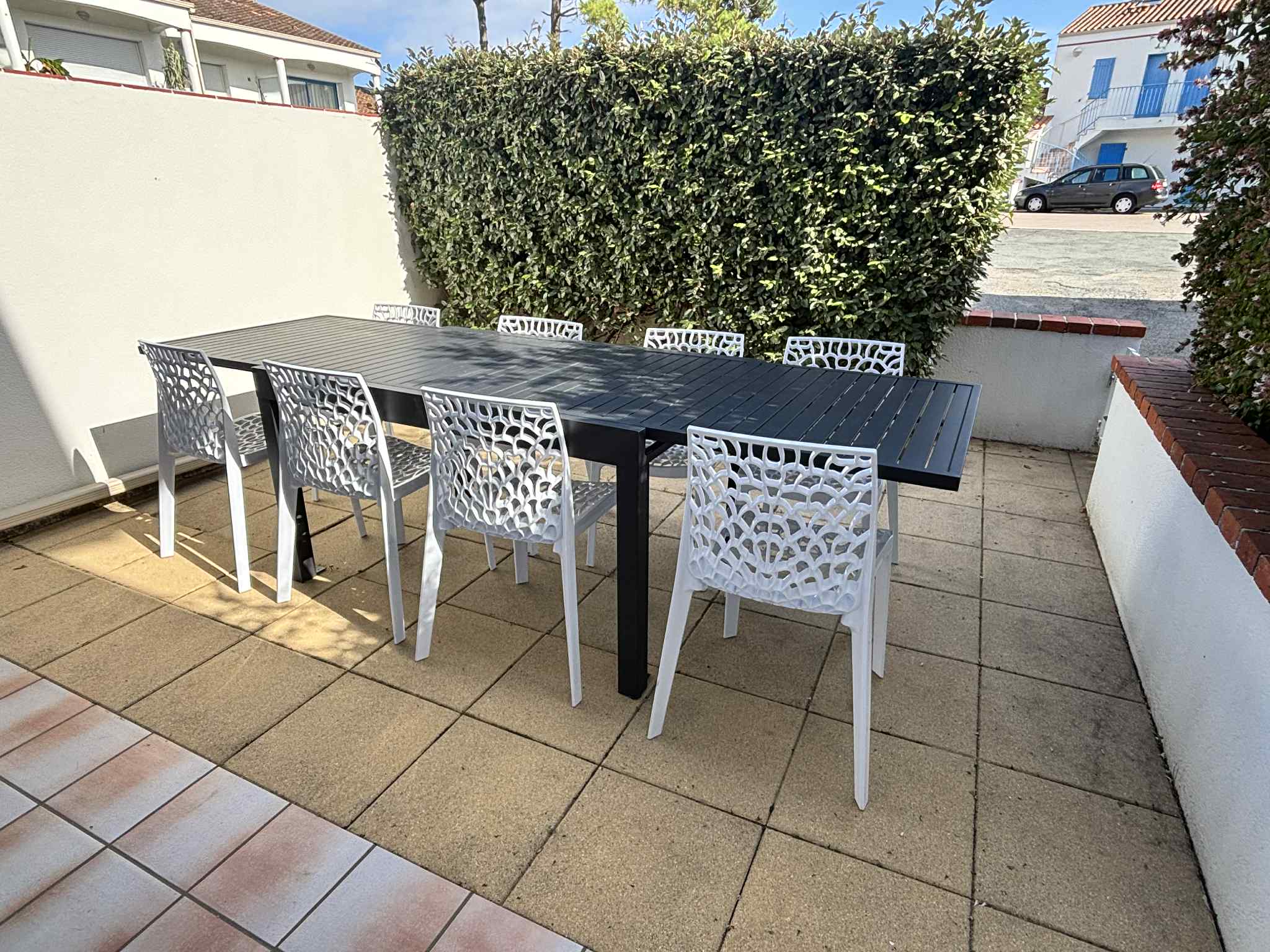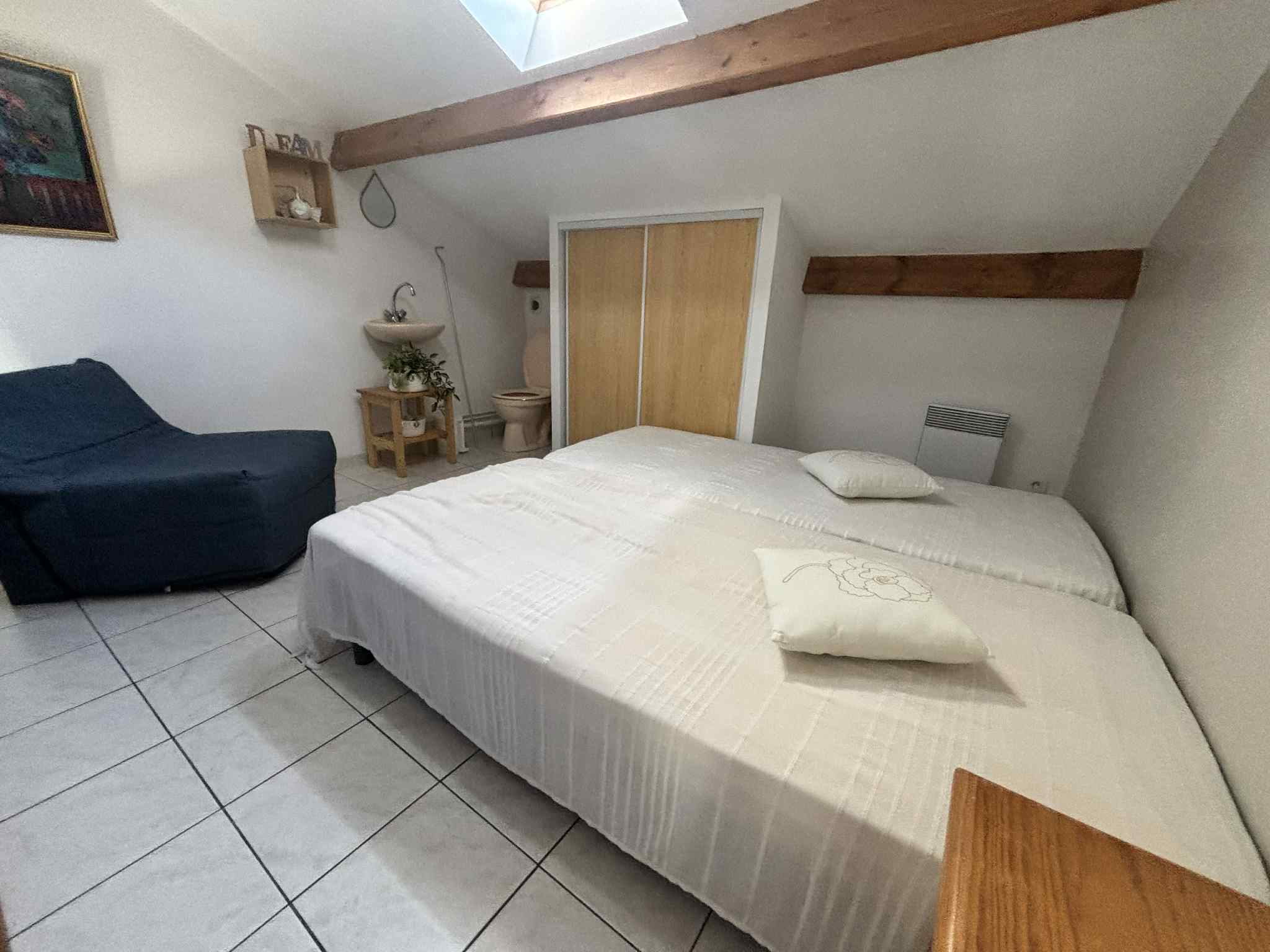 Elle se compose d'un séjour avec BZ de 140 et TV écran plat, kitchenette (2 plaques électriques, mini-four, micro onde, réfrigérateur, lave linge), 1 chambre avec 1 lit de 140, une salle d'eau (Douche + lavabo), WC, 1 mezzanine avec 2 lits de 90,1 lavabo et WC. 2 courettes dont une au sud avec salon de jardin et store-banne, un stationnement privé. Animaux non admis.