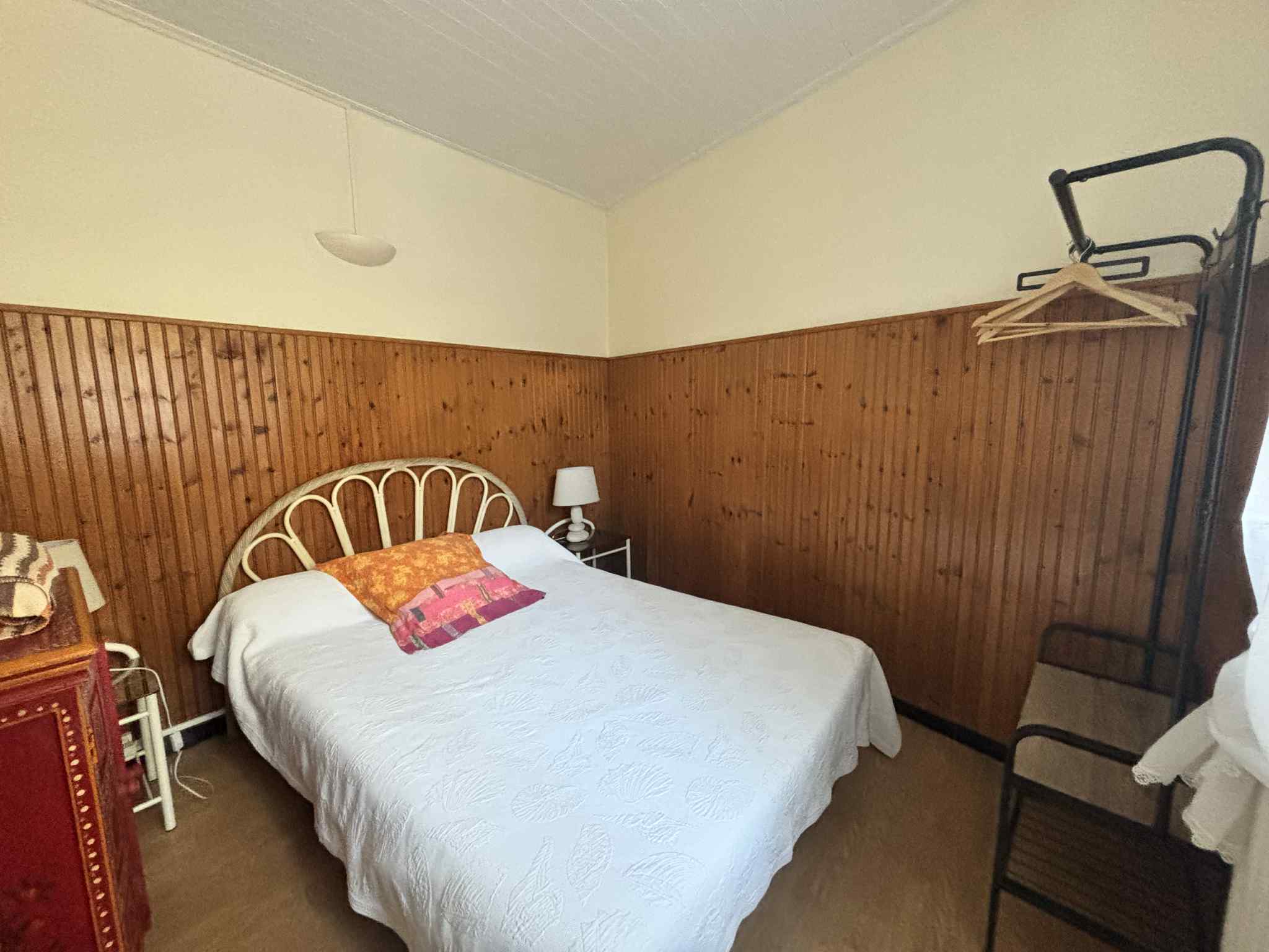 Maison de vacances sur 2 niveaux : au RDC Cuisine avec coin repas aménagée et équipée (réfrigérateur-congélateur, 4 feux gaz, four, micro-onde), un salon avec TV, une salle d'eau traversante (douche, lavabo, WC), 1 chambre avec 1 lit de 140, un débarras avec Lave-linge et accès à un patio, 1 WC. A l'étage 2 chambres communicantes l'une avec 1 lit 160 et l'autre avec 2 lits de 90. Animaux non admis. Wifi gratuite.