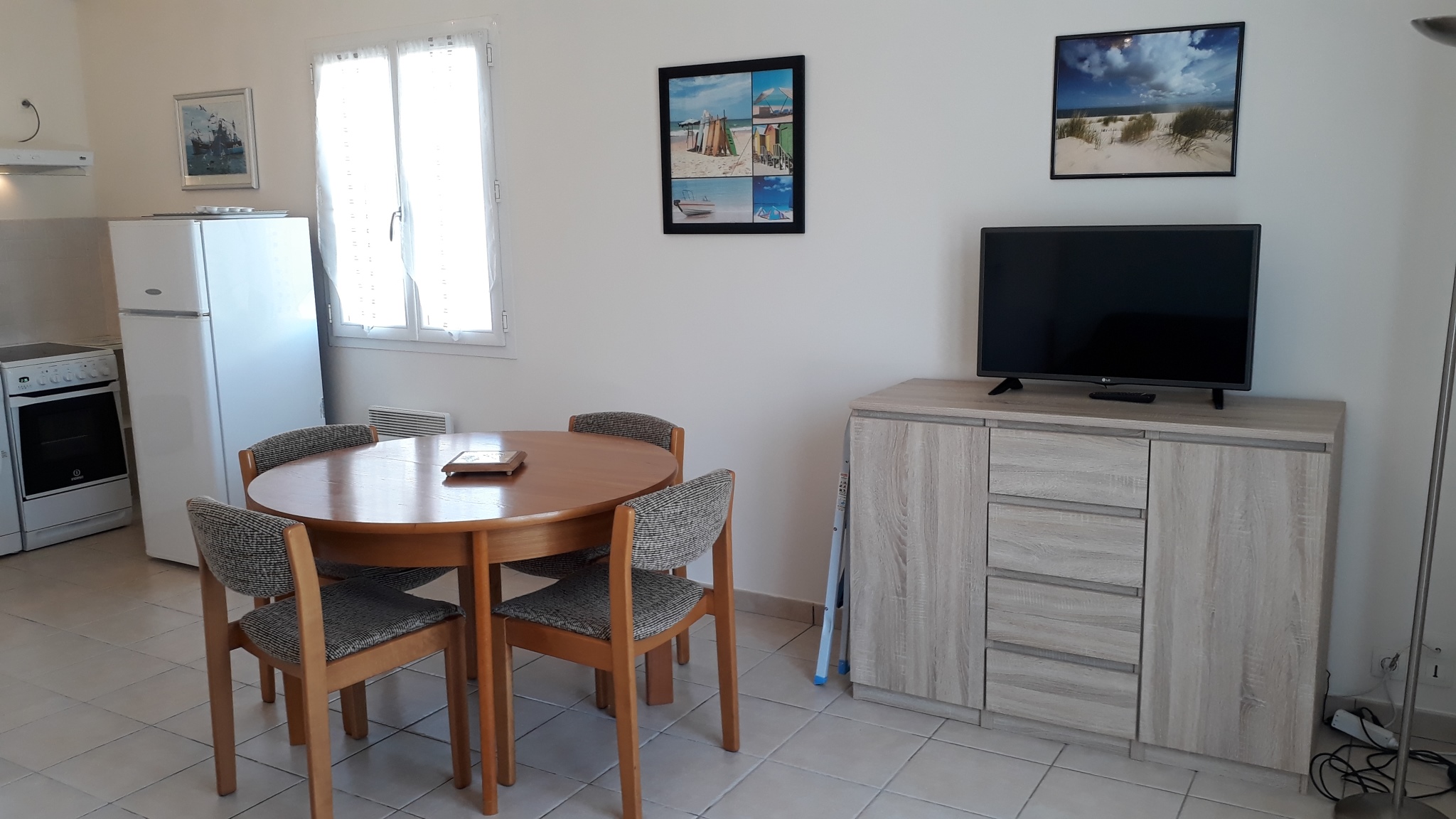 Elle est composée d'une pièce de vie avec TV, canapé convertible, coin cuisine aménagée et équipée, 2 chambres avec chacune 1 lit de 140 , salle d'eau avec WC. Équipements: TV écran plat ,lave-linge, réfrigérateur-congélateur,micro-onde, plaque induction, four, rehausseur bébé, lit parapluie,barbecue. Les animaux ne sont pas admis.