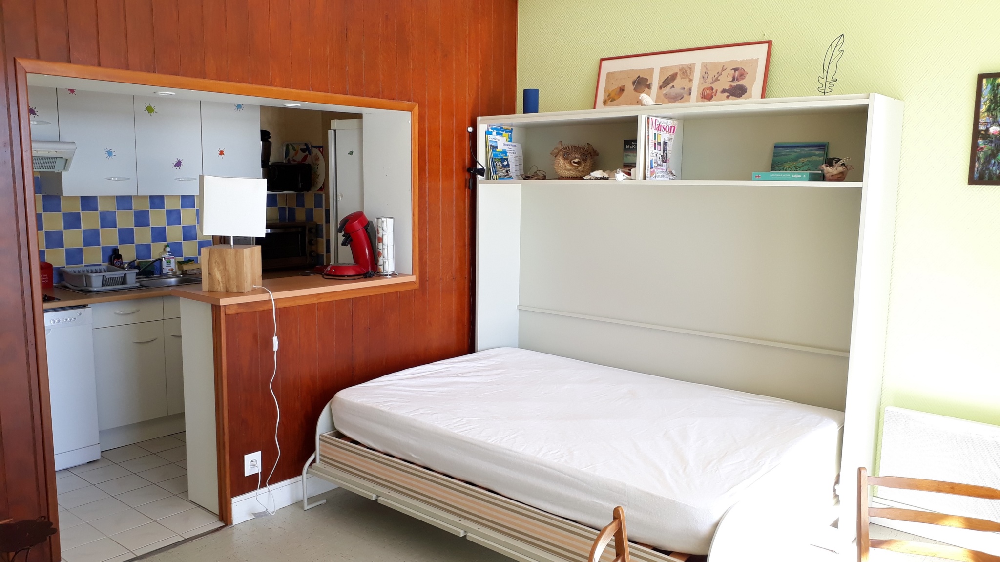 Venez découvrir ce studio situé au 2eme étage avec vue imprenable sur la lagune et l'océan et à seulement 400 m des plages et 800 m du centre ville où vous trouverez tous les commerces de proximité. Il est composé d'un dégagement (avec placard) desservant la pièce de vie comprenant un canapé convertible et un lit escamotable en 140, un coin cuisine aménagée (2 plaques vitrocéramiques-réfrigérateur/congélateur-four) avec lave vaisselle, salle d'eau avec wc (lave linge). Balcon exposé sud ouest. Parking, local vélo et terrain de tennis pour les résidents de l'immeuble. Petit animal admis. Cette location est labellisée 1 Clévacances.