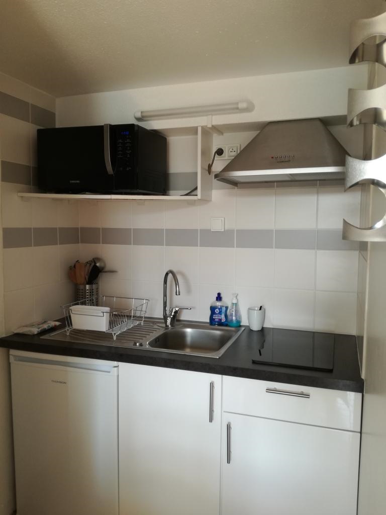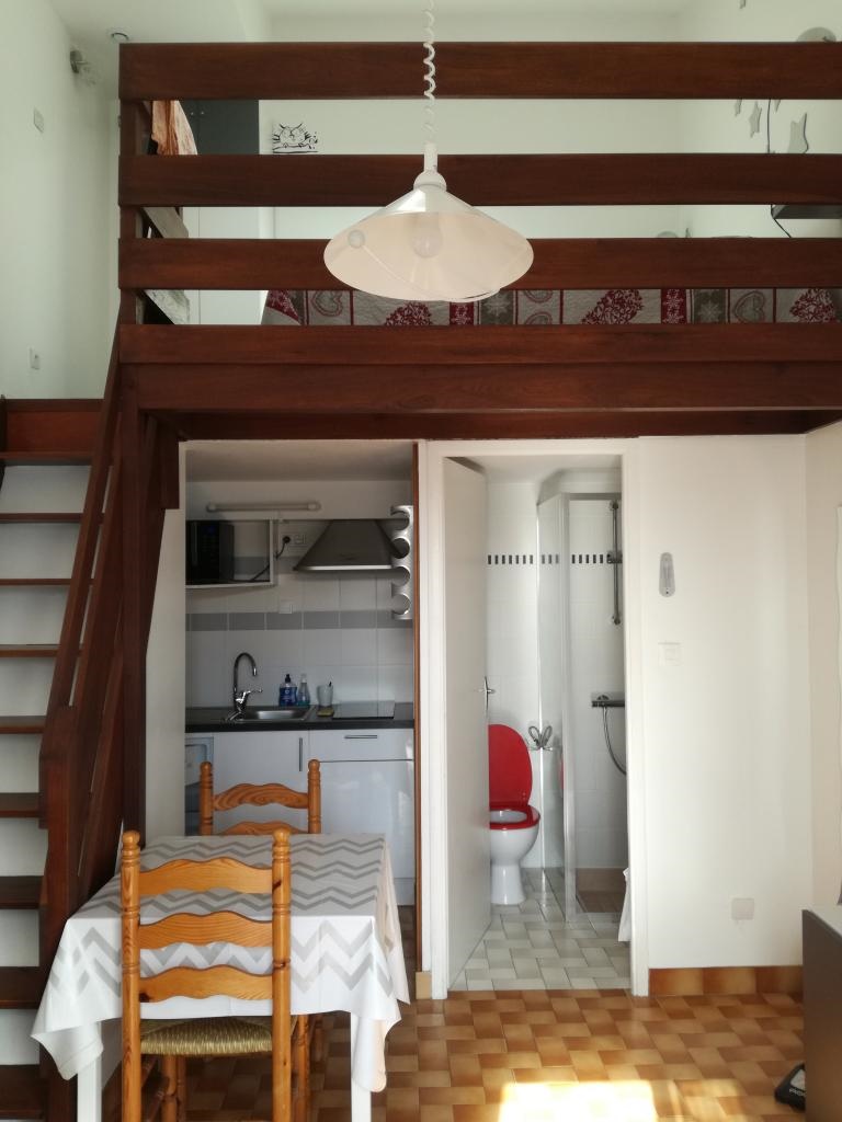 Dans une résidence au calme à toute proximité de la plage des chardons à la Faute-Sur-Mer, et 700m du centre ville, ce studio mezzanine de 20m² pour 2/3 personnes, est composé d'un séjour avec canapé BZ 140, TV écran plat, d'une kitchenette équipée (petit réfrigérateur/congélateur, 2 plaques induction, mico-onde multifonction), d'une salle d'eau avec douche, vasque et WC. Une mezzanine avec 1 lit de 140cm et une armoire. La location dispose également d'une courette-terrasse de 17 m² exposé sud-Est avec salon de jardin, parasol et petit barbecue électrique. Parking privatif numéroté dans résidence. Animal admis.