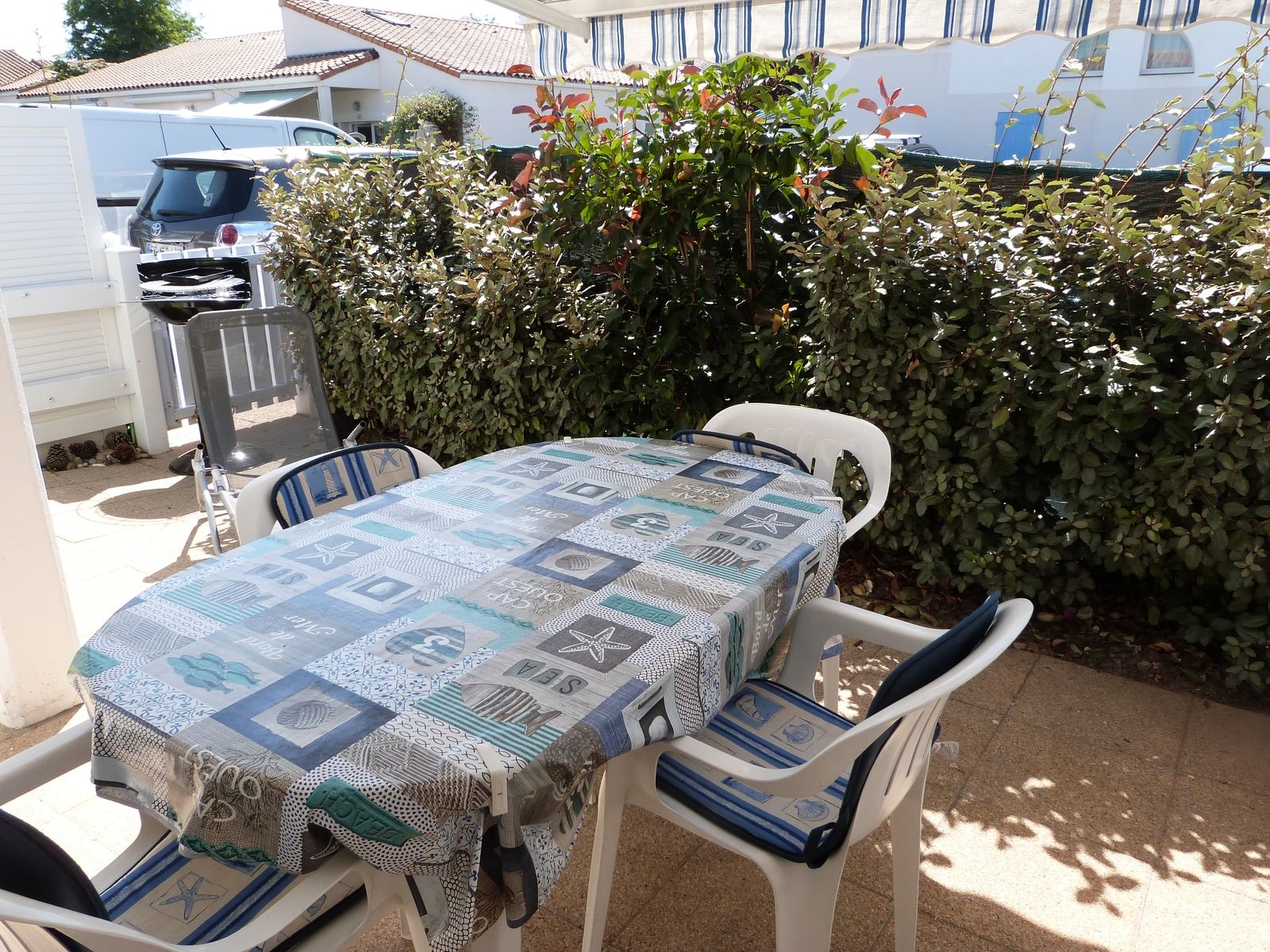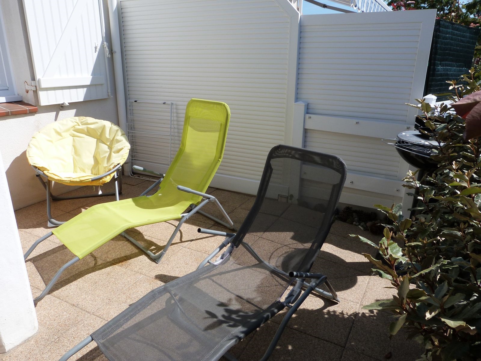 La location bénéficie d'une belle terrasse dallée, clôturée, avec salon de jardin, store-banne, 2 transats, barbecue à charbon. Vous disposez également d'un accès wifi dans la maisonnette.