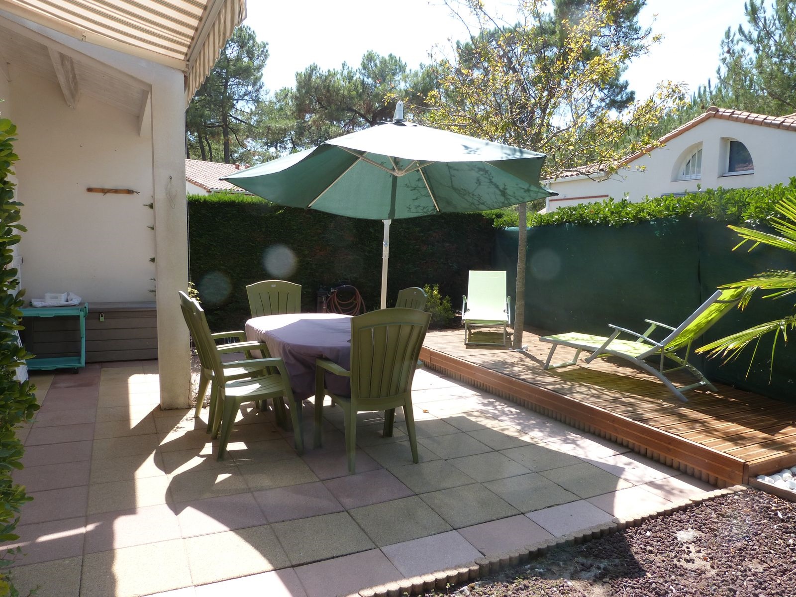 La location bénéficie d'une belle terrasse dallée, clôturée, avec salon de jardin, store-banne, et bains de soleil. Une place de parking privée se situe à toute proximité de la maisonnette. Copropriété avec piscine collective ouverte de mi juin à mi septembre et accès direct à la plage qui est à seulement 500m.