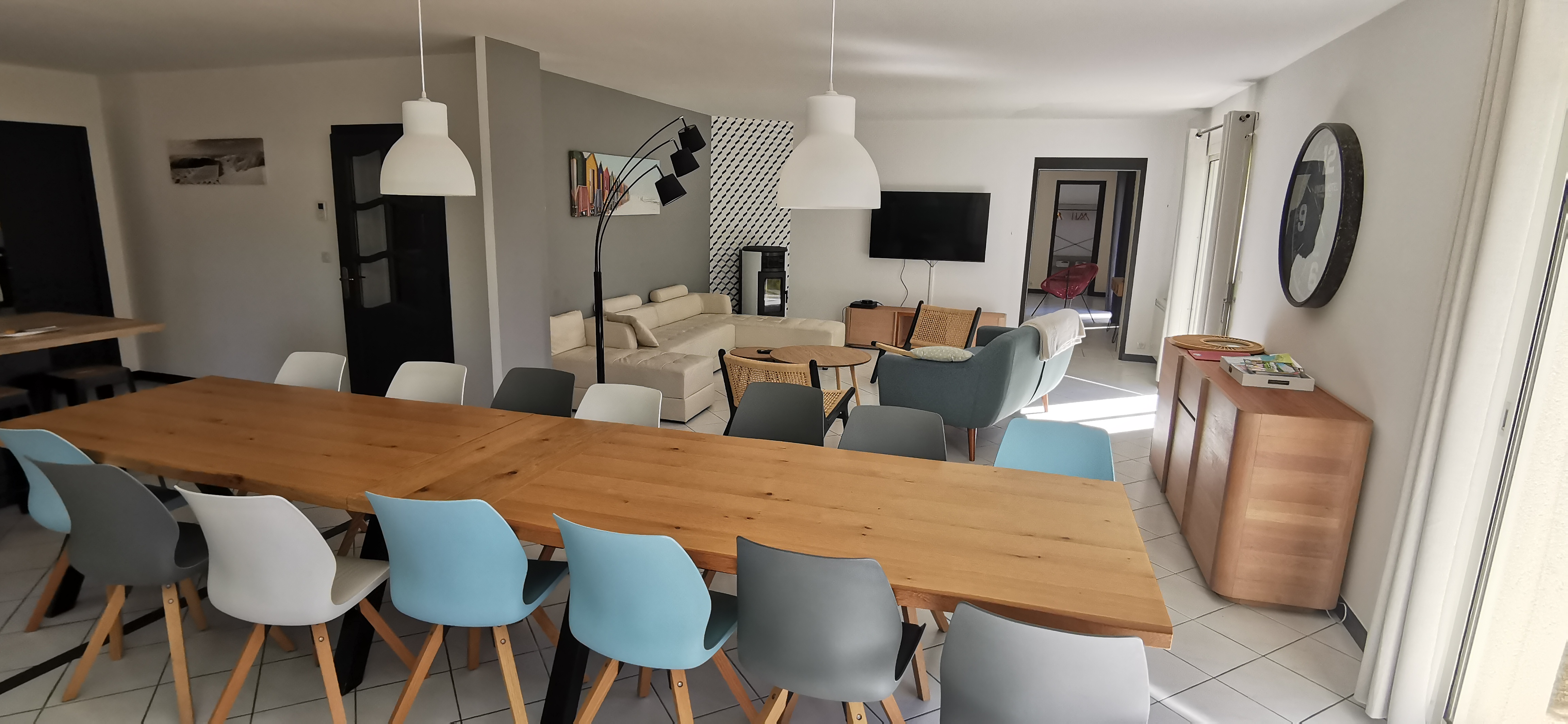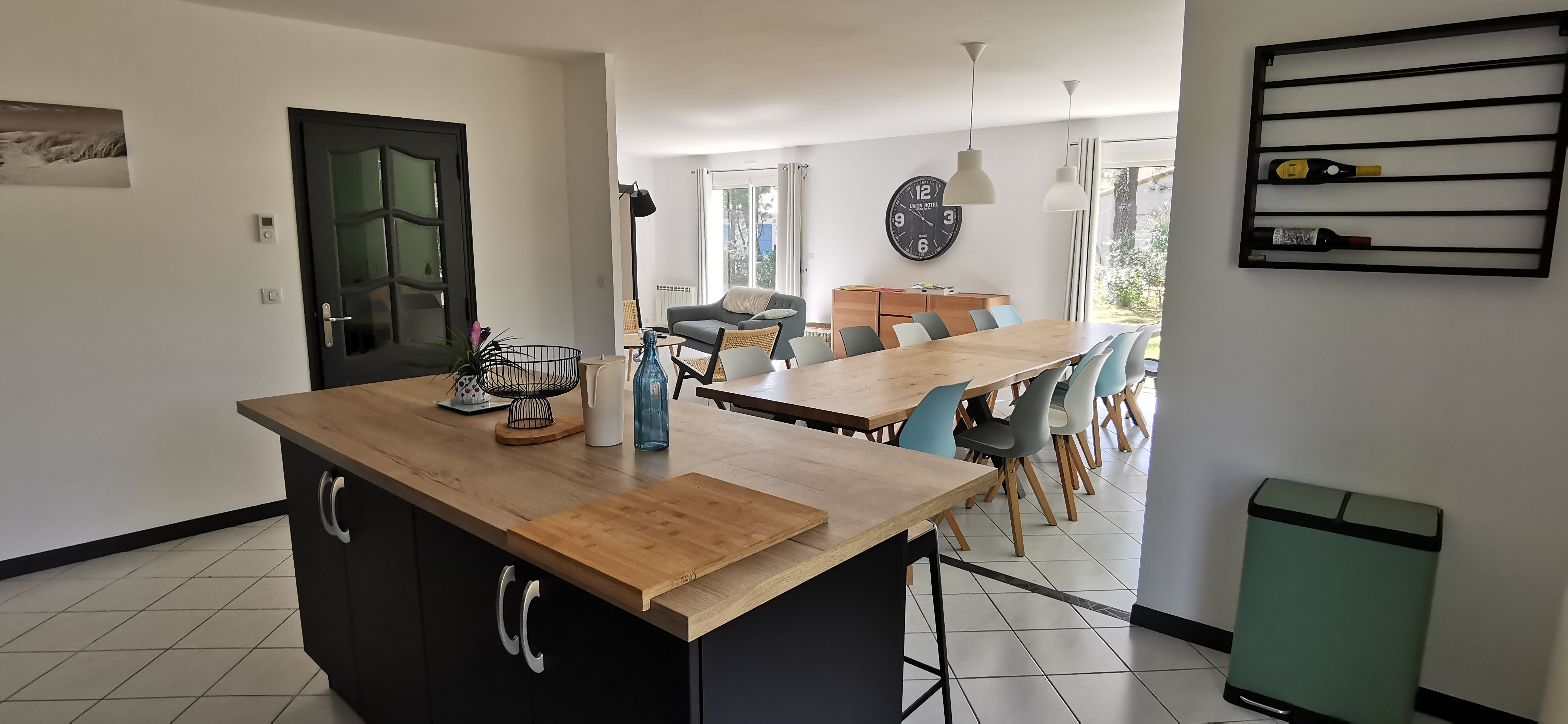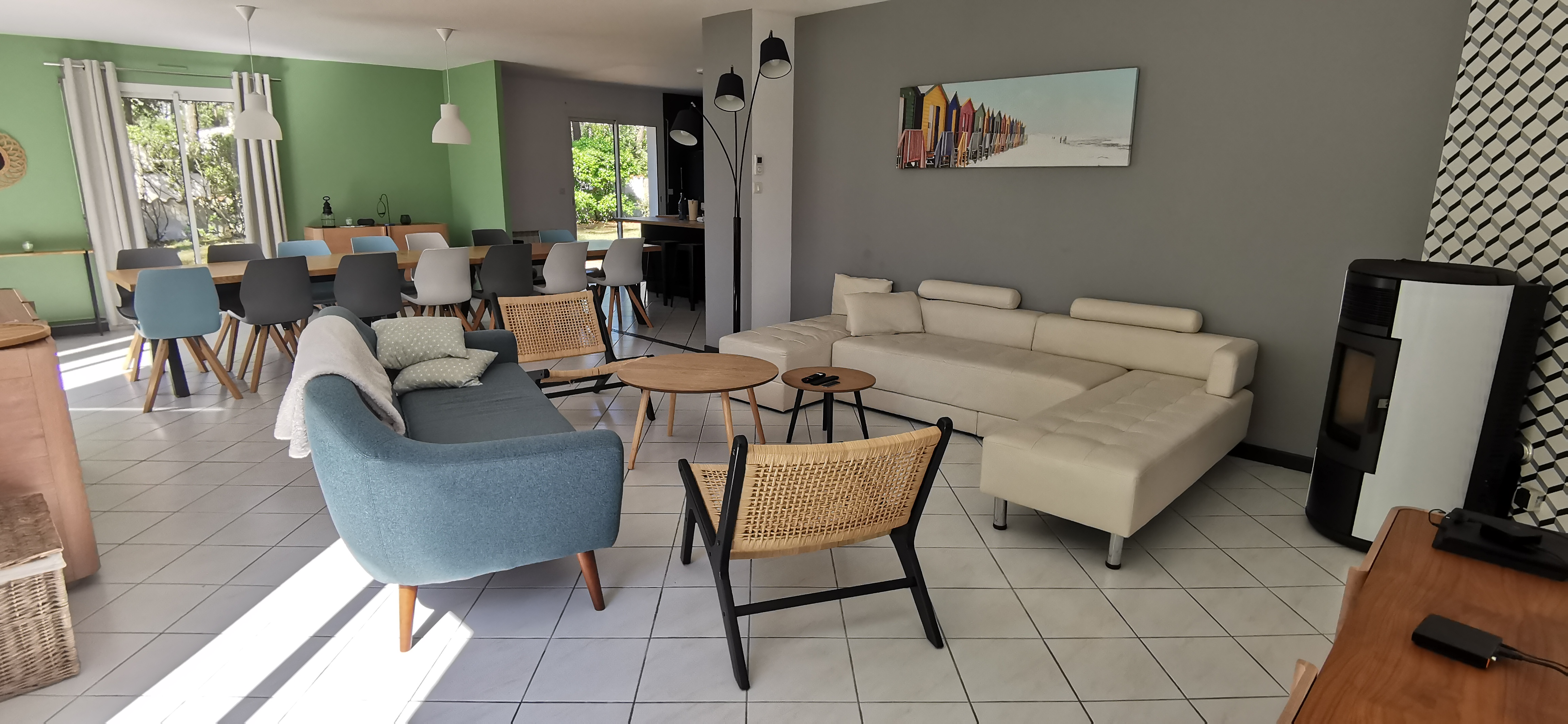 La Villa se compose au rez-de-chaussée d’un grand espace de vie avec cuisine équipée, séjour et salon se prolongeant sur un deuxième séjour (couchage deux personnes), une suite parentale avec lit de 160, salle d’eau et WC séparés, deux chambres dont une avec lit 160 et l’autre avec lit superposé (en bas lit 140 et en haut lit 90) . salle de bains et WC séparés. A l’étage : deux chambres dont une avec lit 160 et l’autre avec deux lits 90 rapprochés . un coin nuit (palier) avec canapé 140 . une salle d’eau et WC séparés.