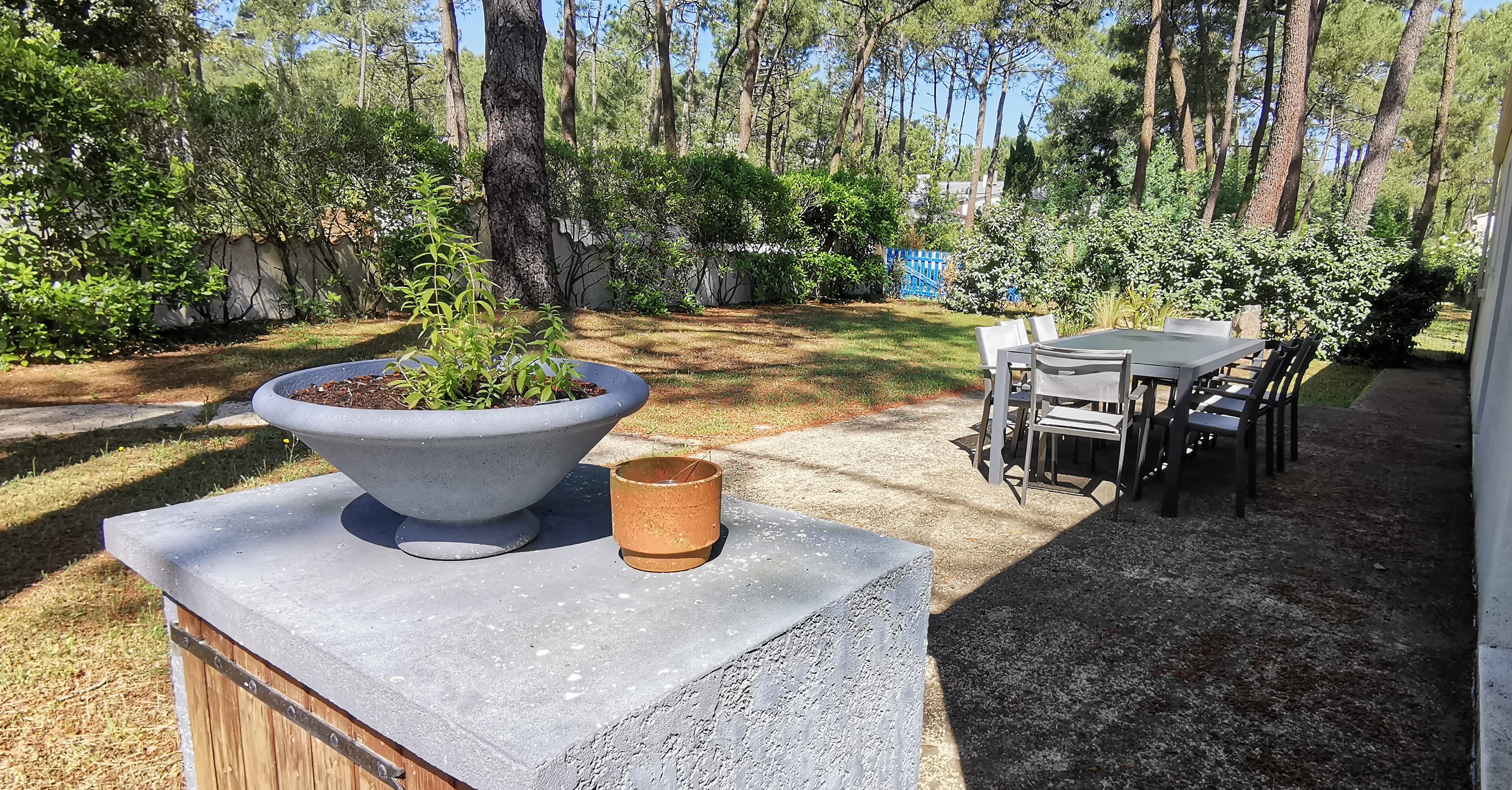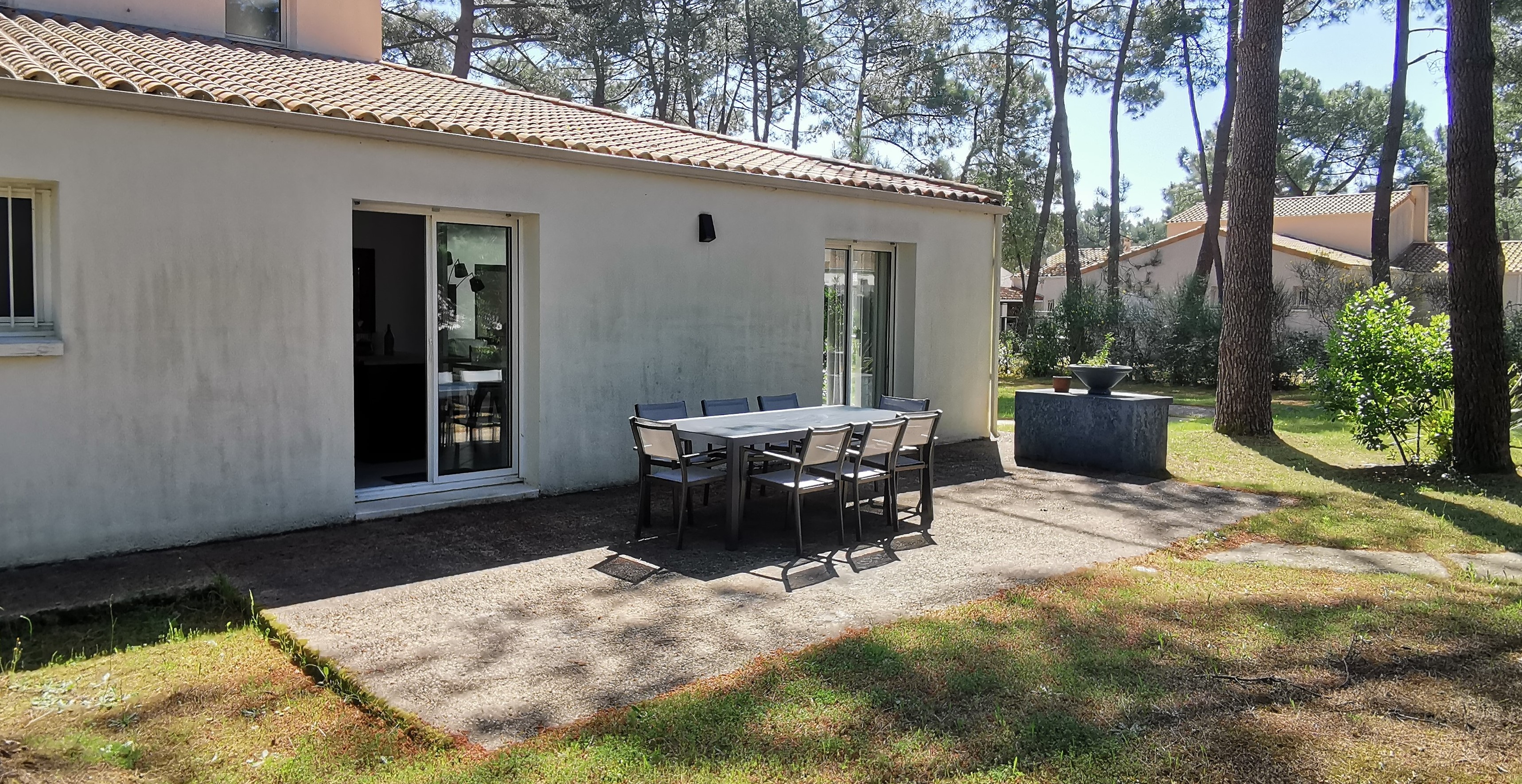 A l’extérieur la Villa possède un parc de 1800m² avec deux terrasses équipées à l’ombre de la pinède et permettant de stationner plusieurs véhicules. Idéale pour des vacances entre amis ou en famille cette villa a une capacité de 14 personnes maximum. Animaux non admis. Accès wifi compris. Le ménage de fin de séjour est à réaliser par les locataires. Services en suppléments sur demande : location de draps, linge de toilette et de matériel bébé, ménage de fin de séjour (300€)