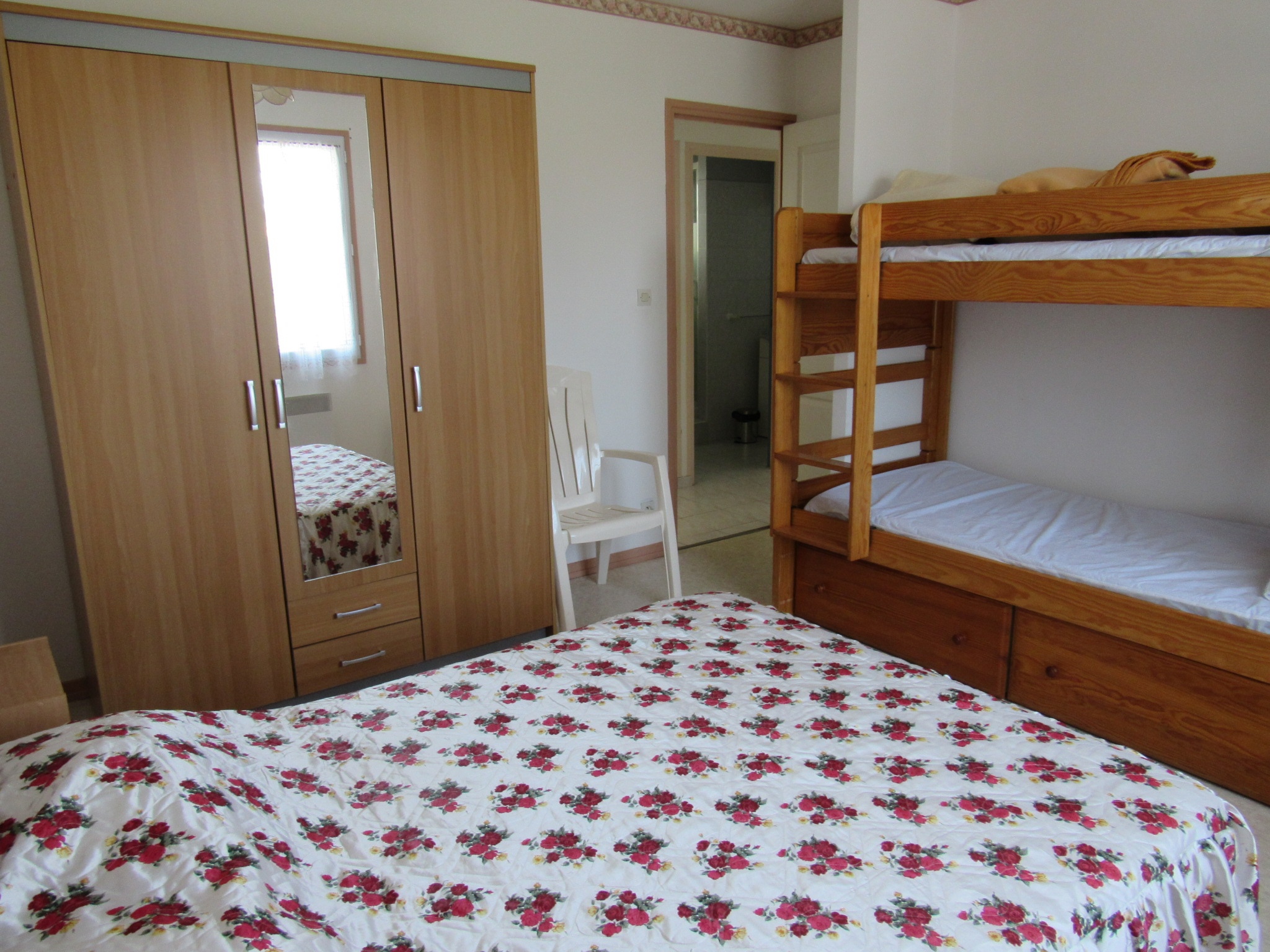 Cette maison propose une cuisine ouverte (gazinière-four électrique-réfrigérateur avec case congélateur) avec lave linge, un séjour avec coin salon (télévision écran plat), une première chambre avec un lit de 140 et une deuxième avec un lit de 140 et 2 lits superposés de 90 (le couchage en hauteur ne convient pas aux enfants de moins de 6 ans), une salle d'eau, un WC séparé. Le tout sur un jardin clos avec deux terrasses. Les animaux ne sont pas admis.