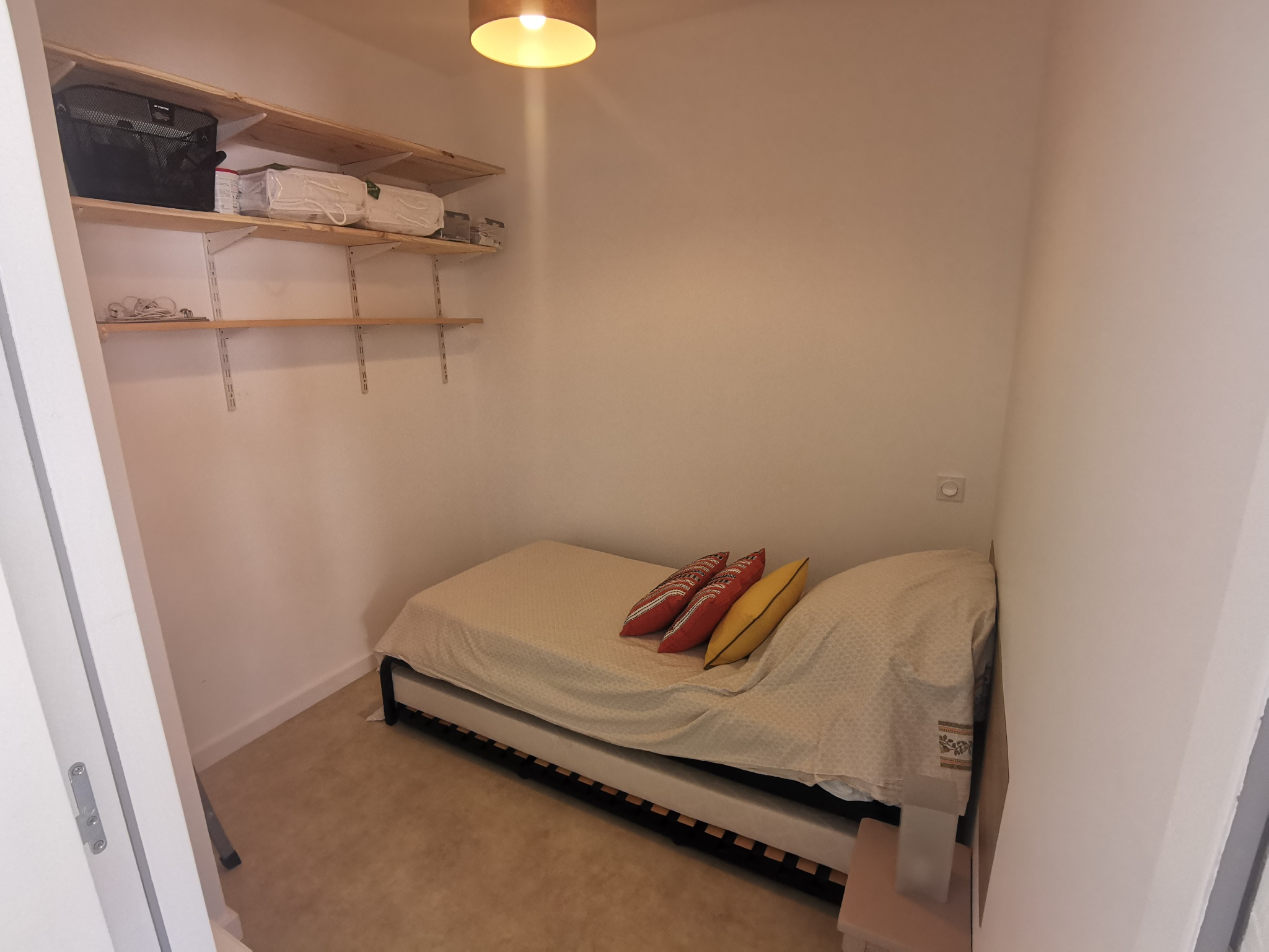 Appartement de 51m² au 1er étage (sans ascenseur), en copropriété, situé dans le Domaine de la Savinière, dans le Quartier de la Terrière. Il se compose d'une cuisine équipée (lave-vaisselle, four, micro-ondes, réfrigérateur/congélateur) et ouverte sur un salon/séjour de 21m², une première chambre avec un lit de 140, une deuxième dite 'cabine' comprenant deux lits de 80 (gigogne) pouvant se déplier pour faire un vrai lit de 160. Une grande salle d'eau avec une cabine de douche, lave-linge, lavabo et WC séparés. A l'extérieur, un balcon de 15 m² avec salon de jardin. Le domaine comprend une piscine collective ouverte et chauffée du 1er juin au 30 septembre, également à votre disposition : un local pour les planches ainsi que 2 places de stationnement sur un parking privatif. Cet appartement est labellisé 2 Clévacances