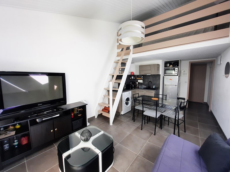 Dans secteur boisé et recherché, maison entièrement rénovée dans résidence située à proximité de la plage et des commerces de LA FAUTE SUR MER comprenant au rez-de-chaussée : entrée avec placard, séjour (canapé convertible de 120 - tv) avec cuisine aménagée et équipée (Réfrigérateur-congélateur, lave-linge, micro ondes multi fonctions, 2 plaques à induction), chambre avec un lit de 160, salle d'eau avec WC. A l'étage une mezzanine avec un lit de 140. La location bénéficie d'une grande terrasse équipée avec store banne électrique et d'un emplacement de parking privatif. Location idéale pour passer des vacances agréables. Petit animal de compagnie accepté.