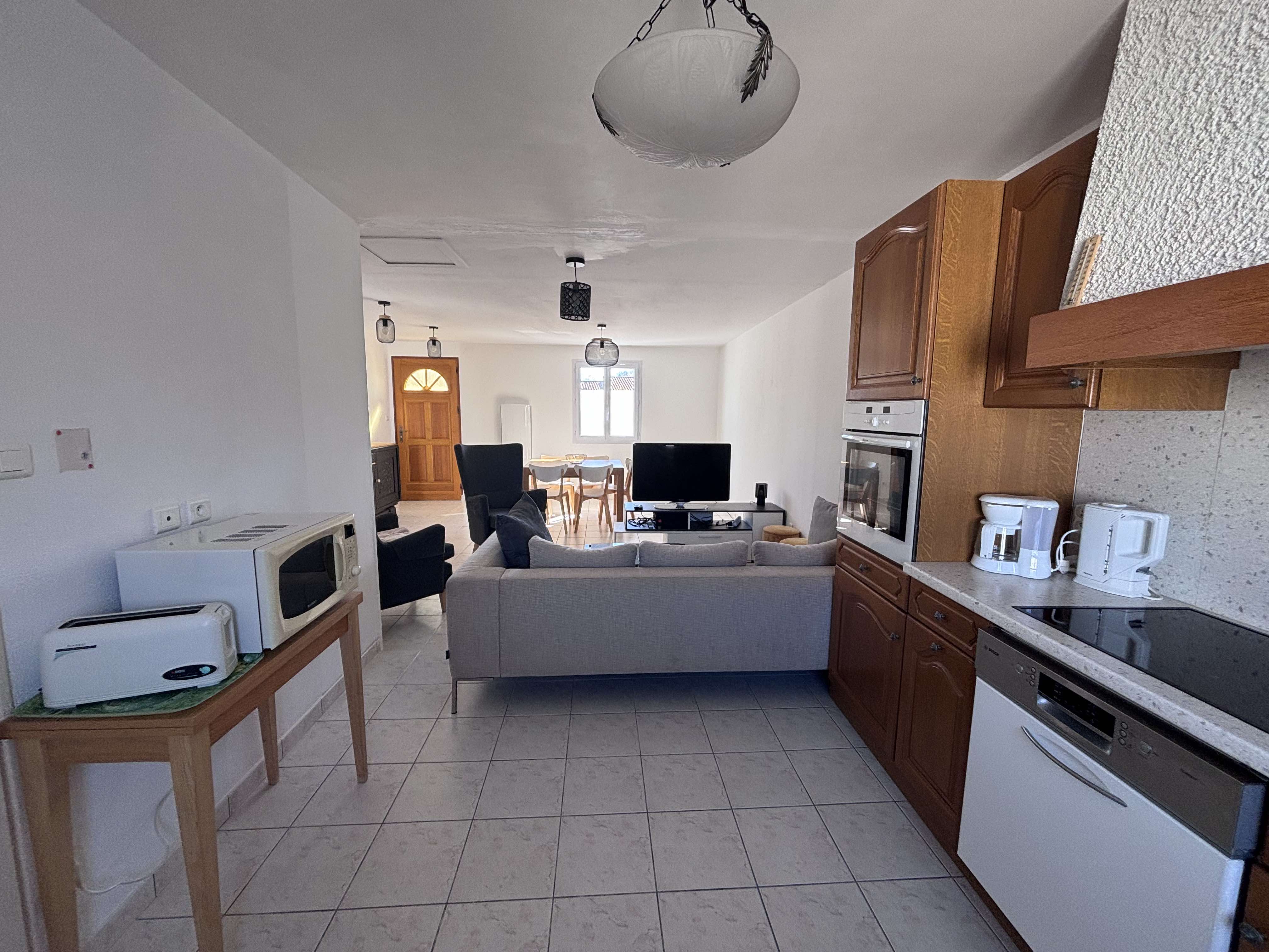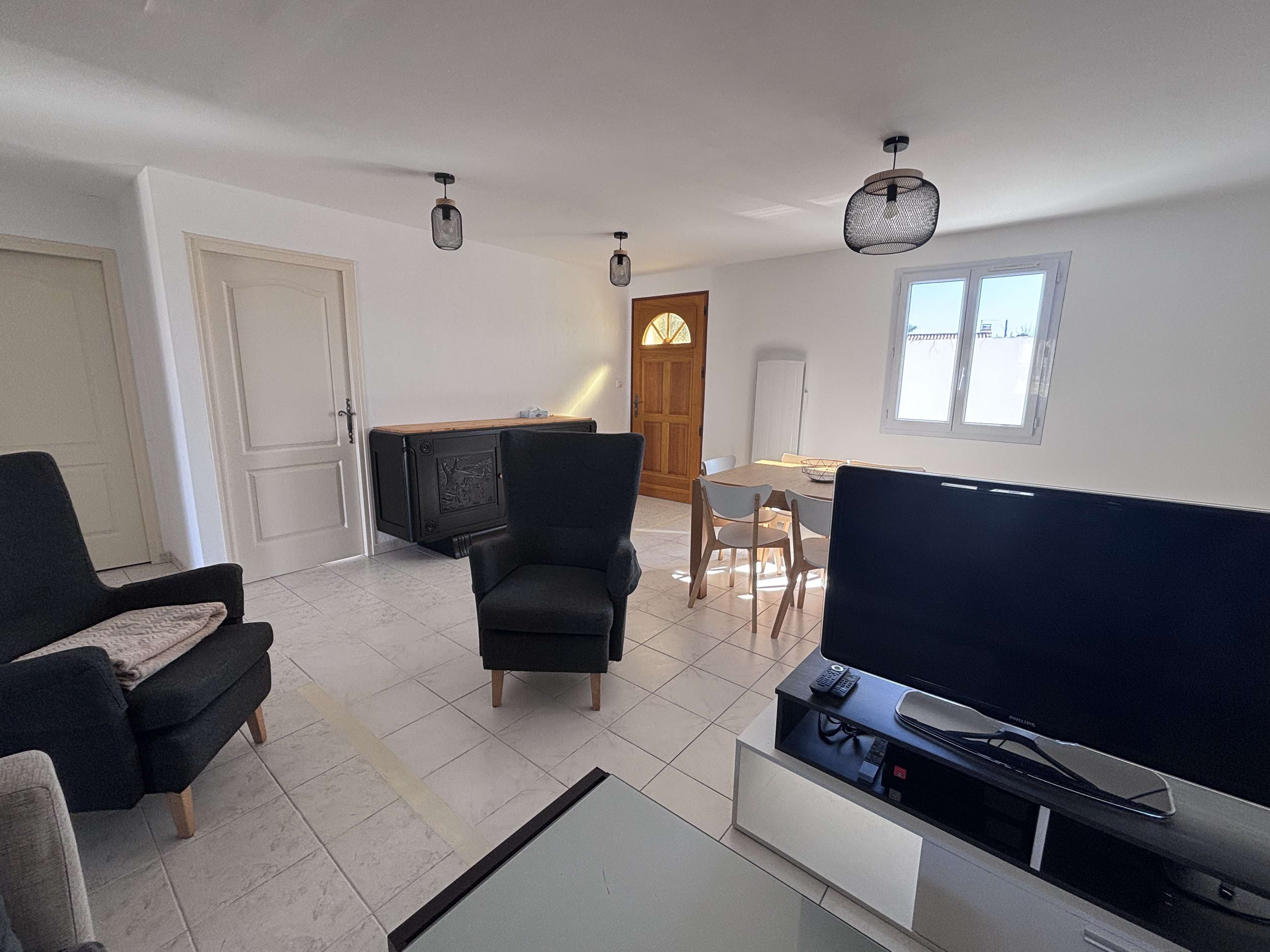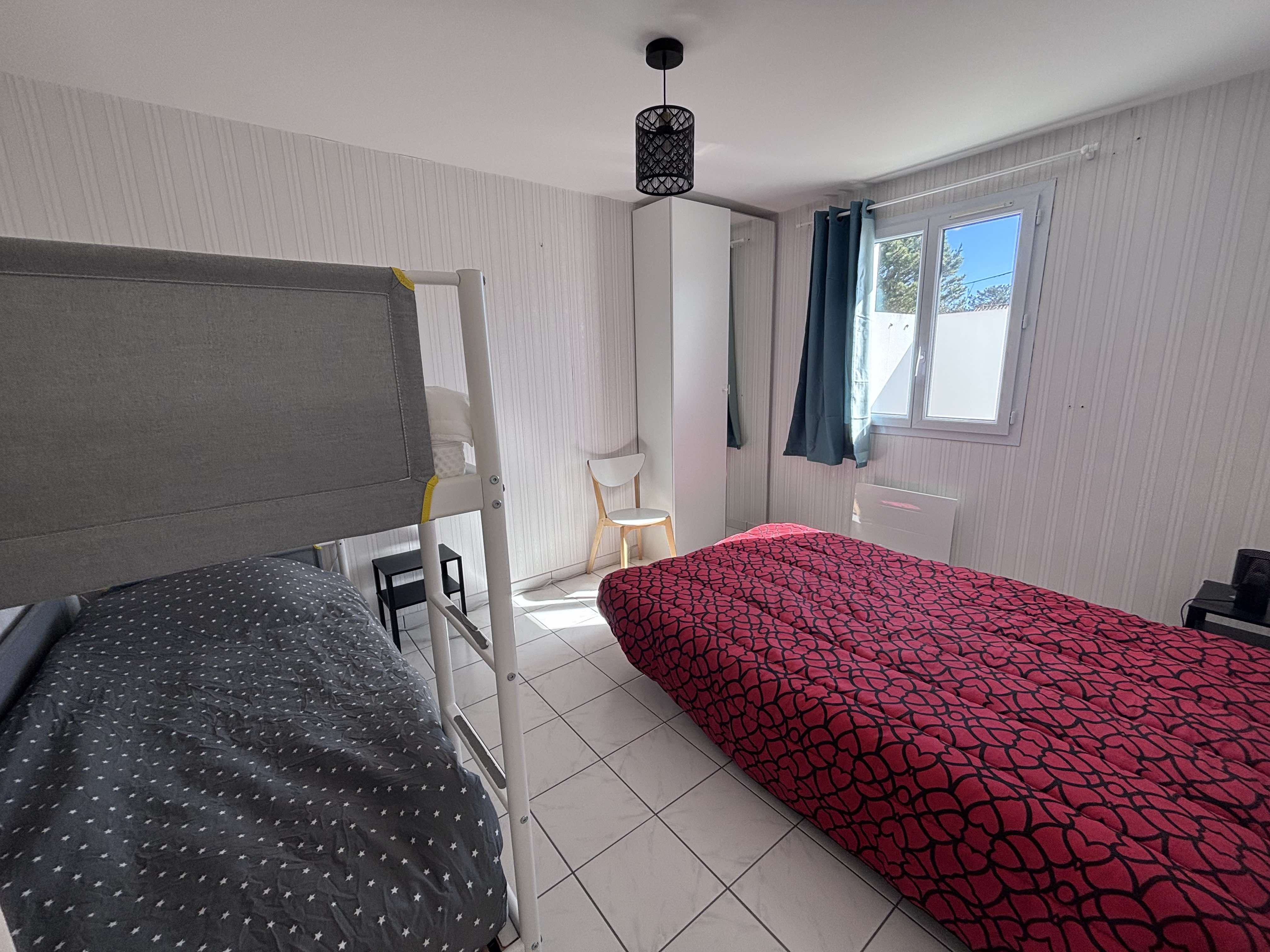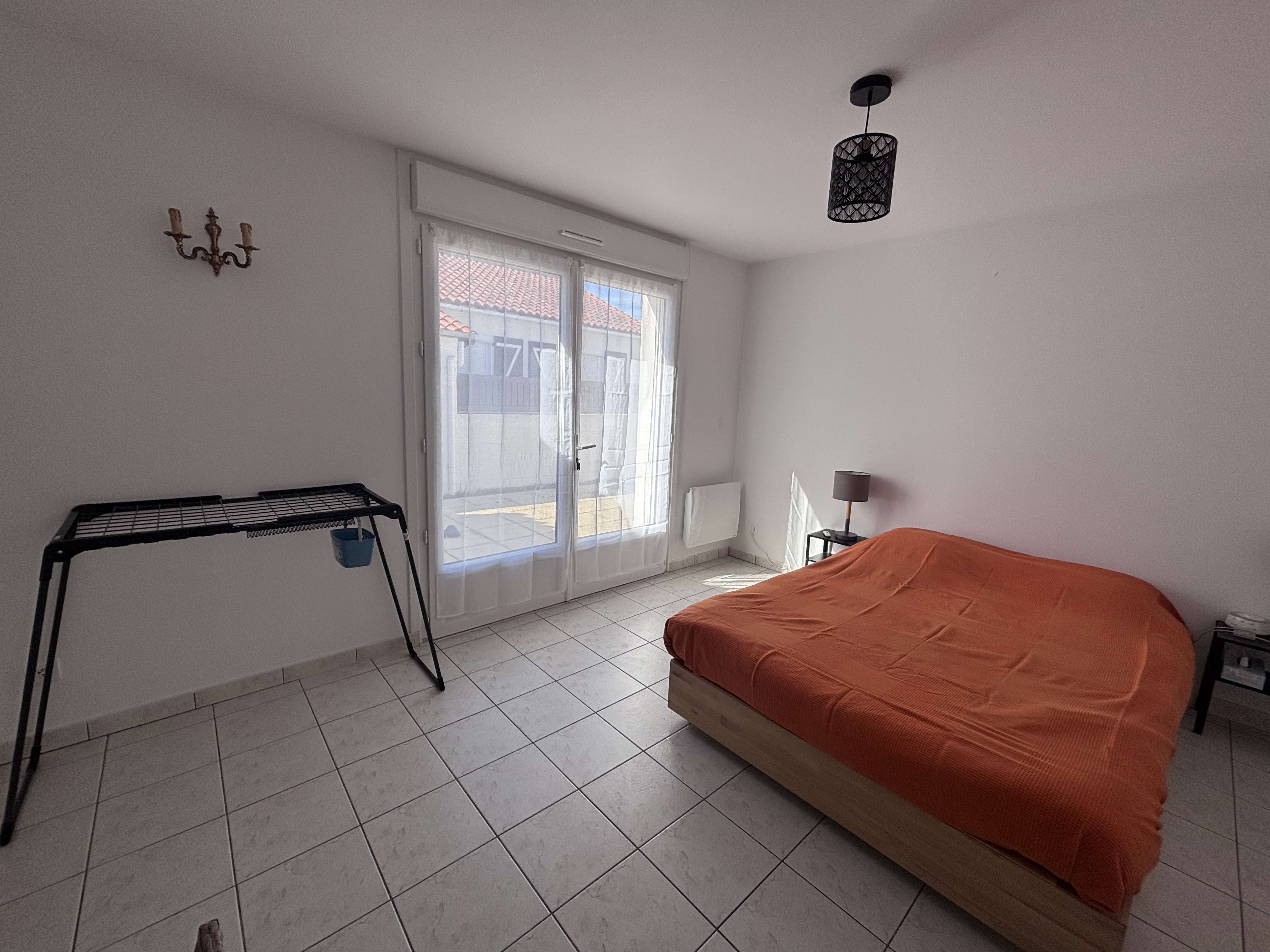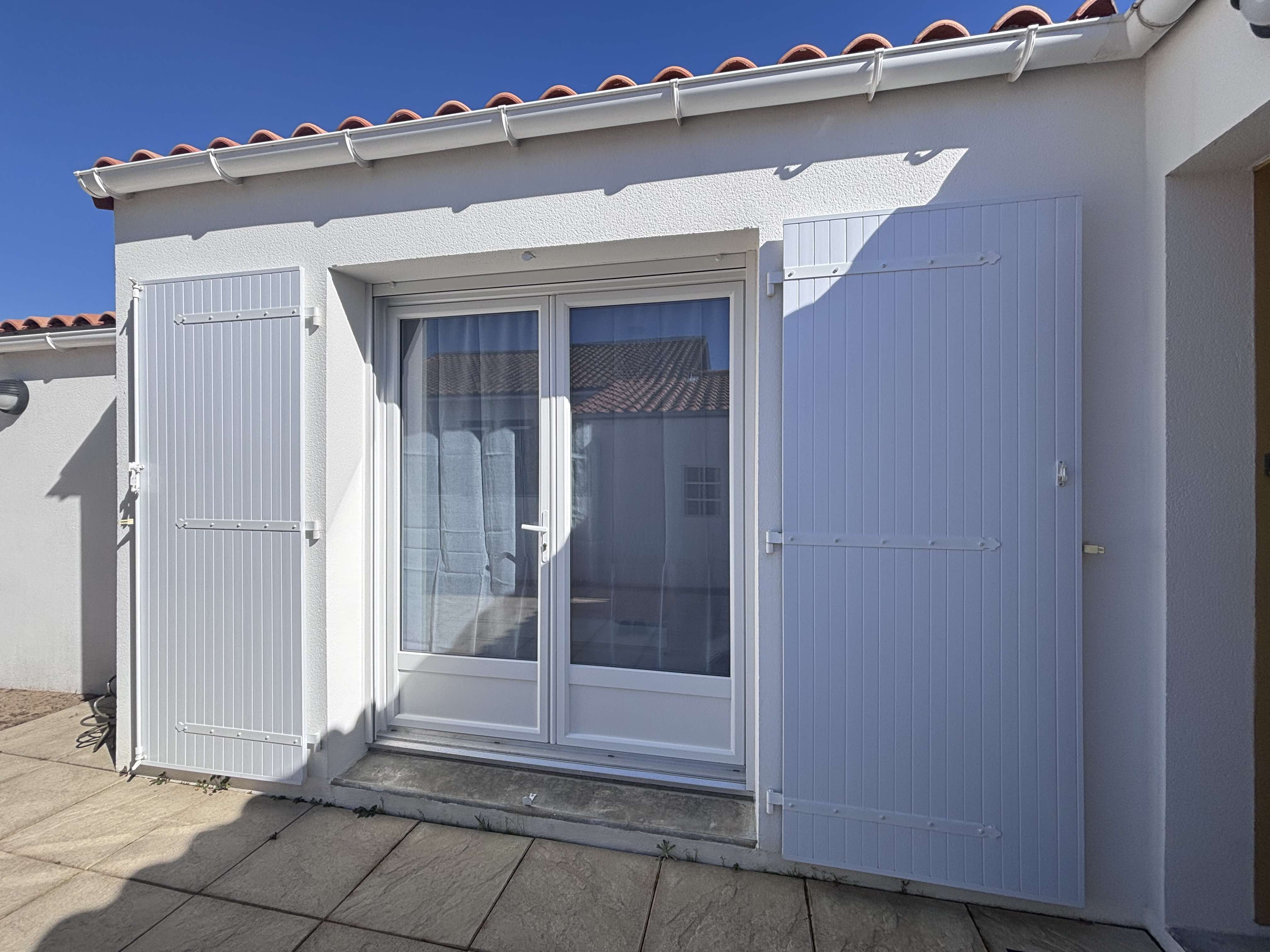 à 500m du centre-ville de la Tranche sur mer et 350m de la plage de l'Embarcadère, maison pour 6 personnes, parking privatif sur terrain clos. Ce logement comprend une cuisine équipée (micro-ondes, four, plaque vitro-céramique) ouverte sur le salon/séjour avec canapé et télévision écran plat, table pour les repas, une très grande chambre avec un lit double en 140x200, une seconde chambre avec un lit en 140x200 et 2 lits superposés en 90x190. Salle d'eau avec douche avec meuble vasque, WC séparés. à l'extérieur, terrasse exposée sud avec salon de jardin et mobilier de terrasse. Une place de parking privative, animaux non admis.
