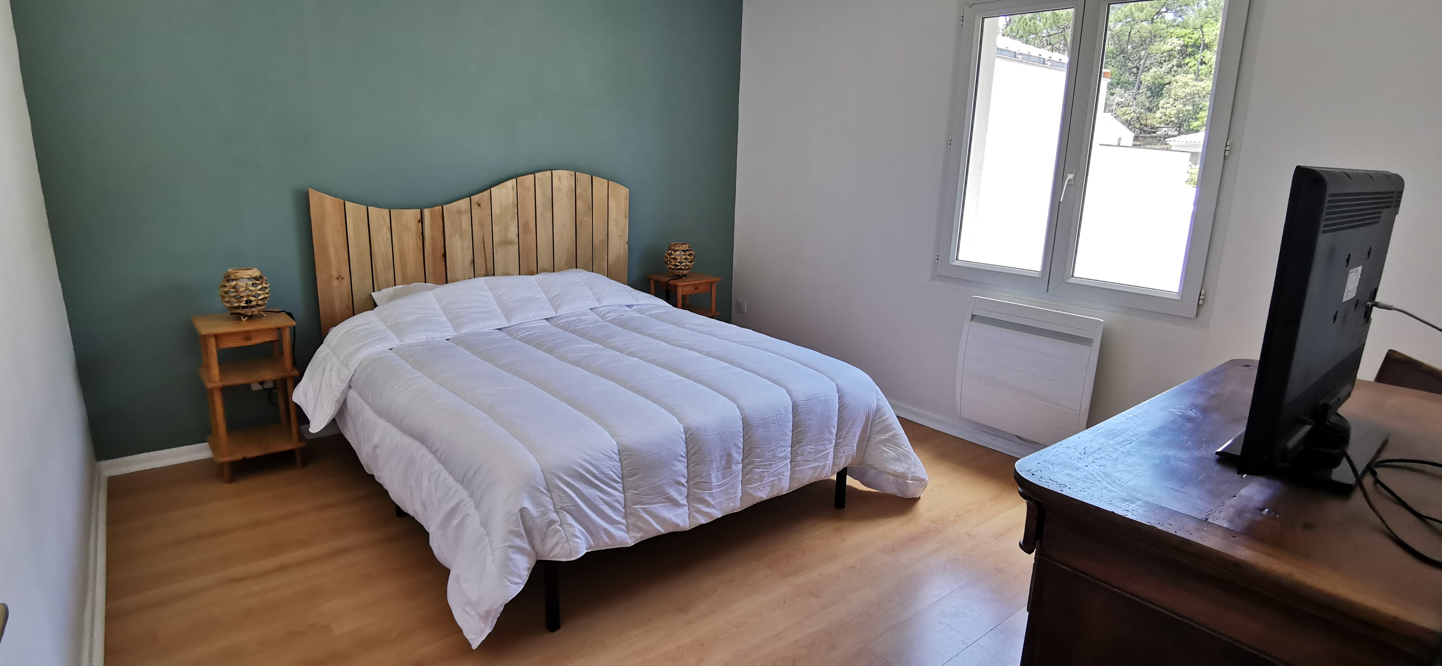 LE PHARE : Découvrez « La Déferlante », une maison de vacances idéale pour 6 personnes, située entre mer (400 mètres de la plage du phare) et forêt, à près d’1,5 km du centre-ville de La Tranche sur Mer. Cette maison de plain-pied offre un salon/salle à manger confortable. La cuisine séparée est entièrement équipée avec un réfrigérateur, un congélateur, un four, un micro-ondes et un lave-vaisselle. Vous trouverez « la chambre bleue » avec un lit de 140 cm, « la chambre verte » avec un lit de 160 cm avec télévision, ainsi qu'une troisième chambre avec deux lits superposés de 90 cm idéale pour les enfants. La salle de bain comprend une baignoire, une douche et une machine à laver, avec des WC séparés. Un petit garage pratique est disponible pour entreposer votre matériel de plage. À l'extérieur, le terrain clos et arboré dispose d'un barbecue, de mobilier de jardin et de transats. Il y a également un emplacement pour deux voitures dans la propriété, deux terrasses et une petite véranda.
