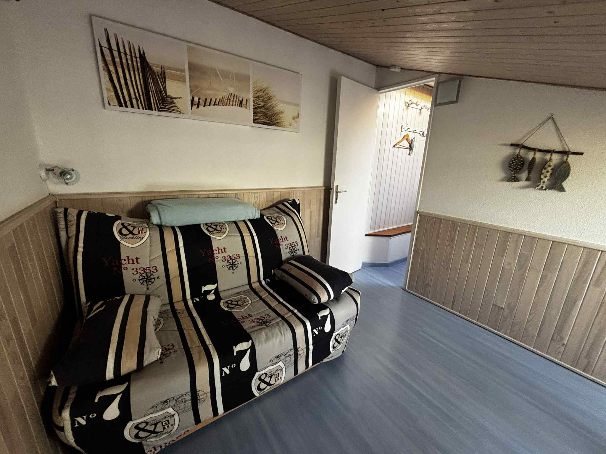1 chambre mansardée avec 2 lits 90 gigognes.