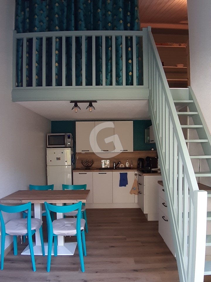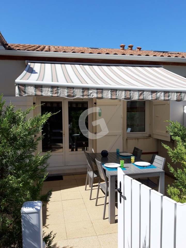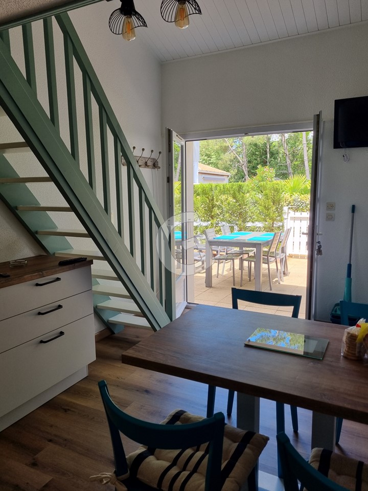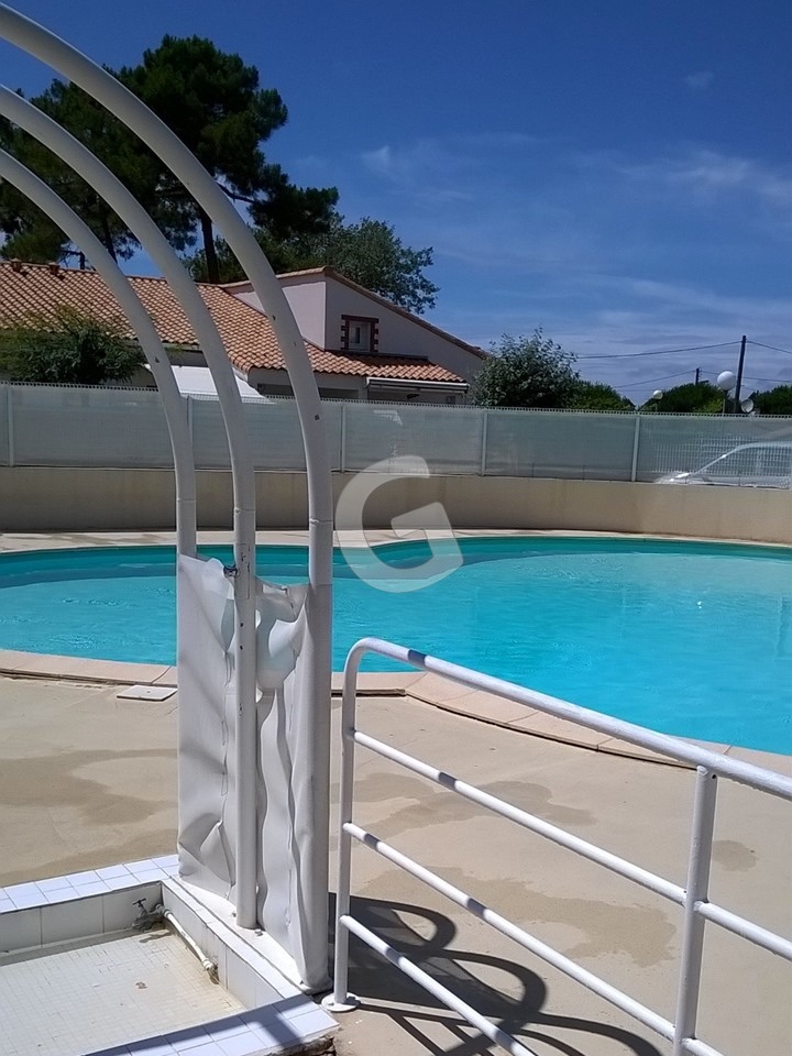 Pavillon T2 mezzanine dans le Domaine Sainte Anne, pour 4 personnes, dans la résidence de vacances avec piscine collective non chauffée, à 200 m de la plage par un accès direct privé, 1,5 km commerces saisonniers et 5 km du centre ville.