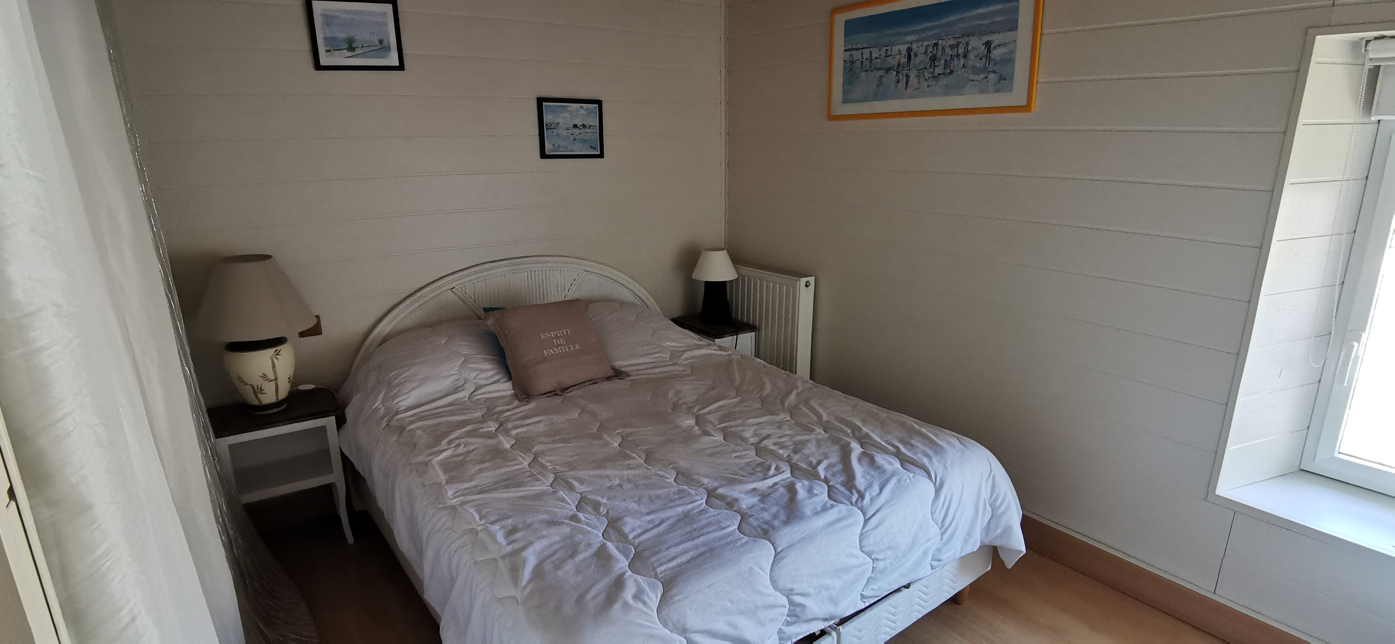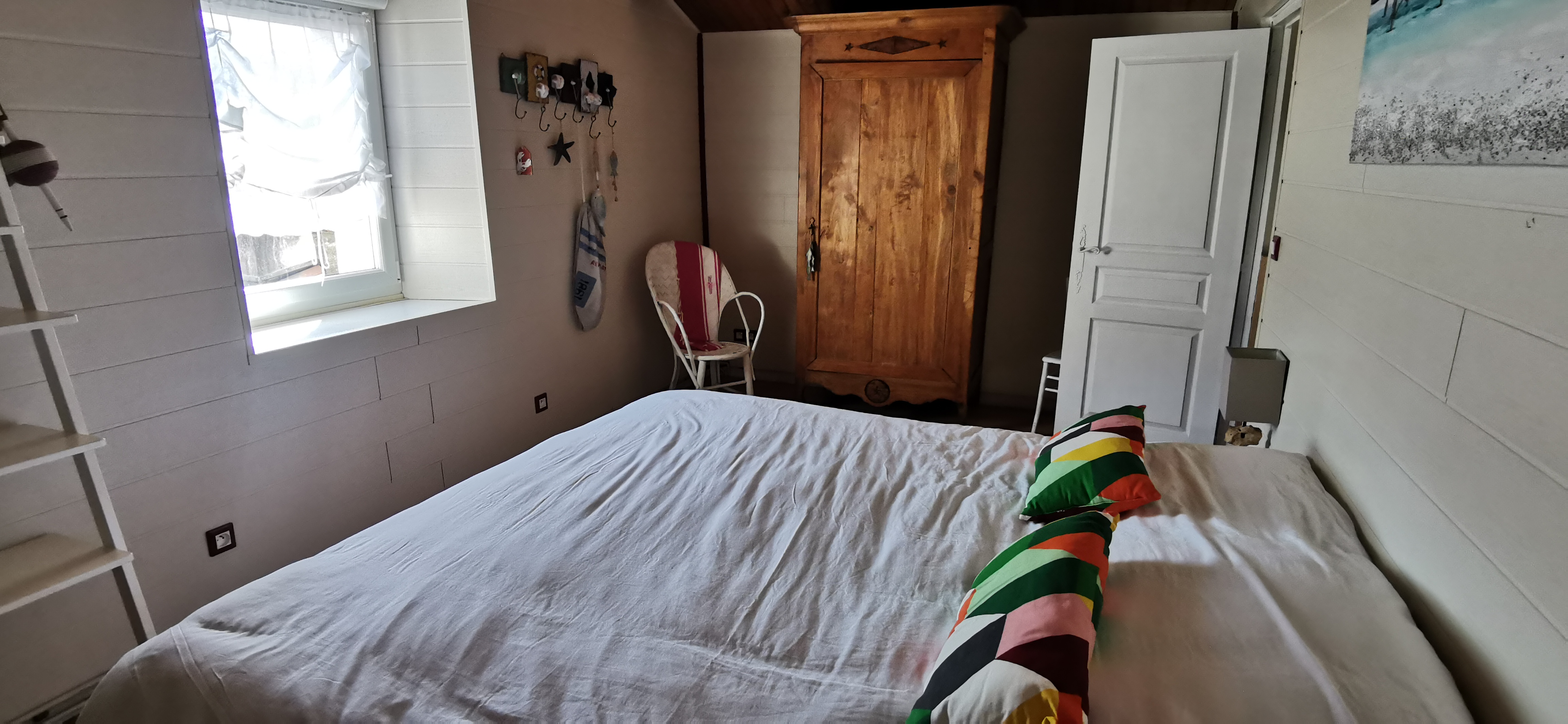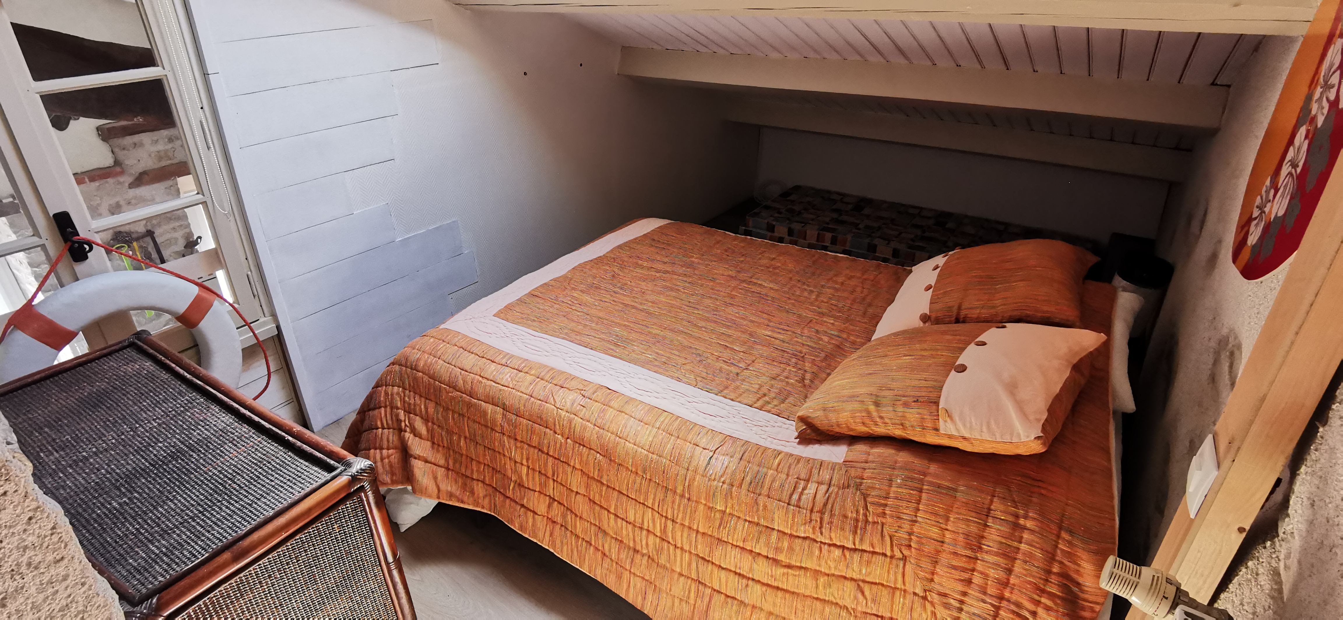 1 chambre mansardée 1 lit de 140 (la fenêtre de la chambre donne accès dans la cuisine).