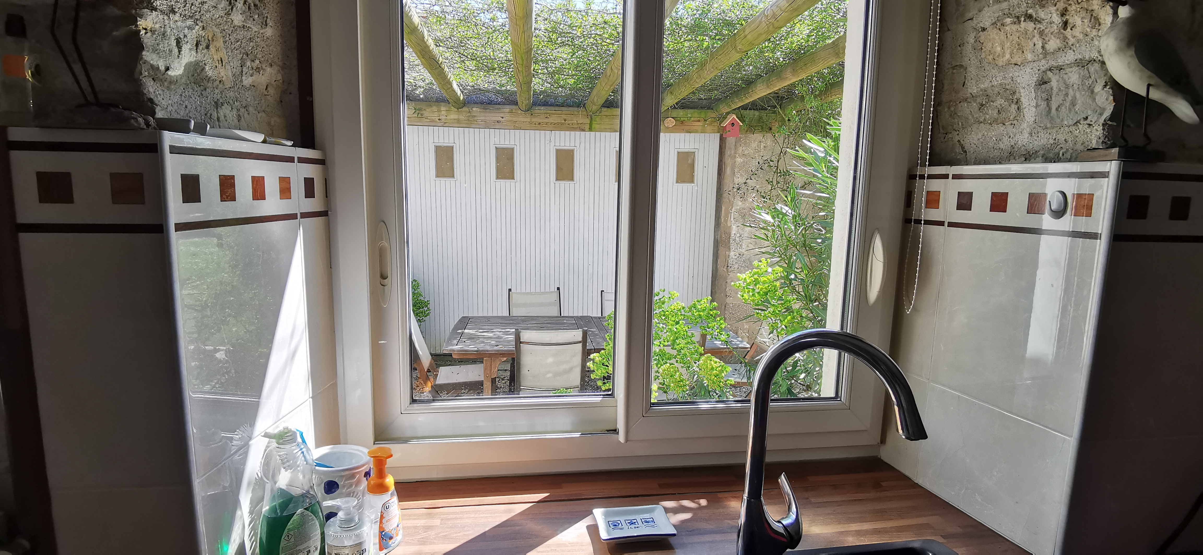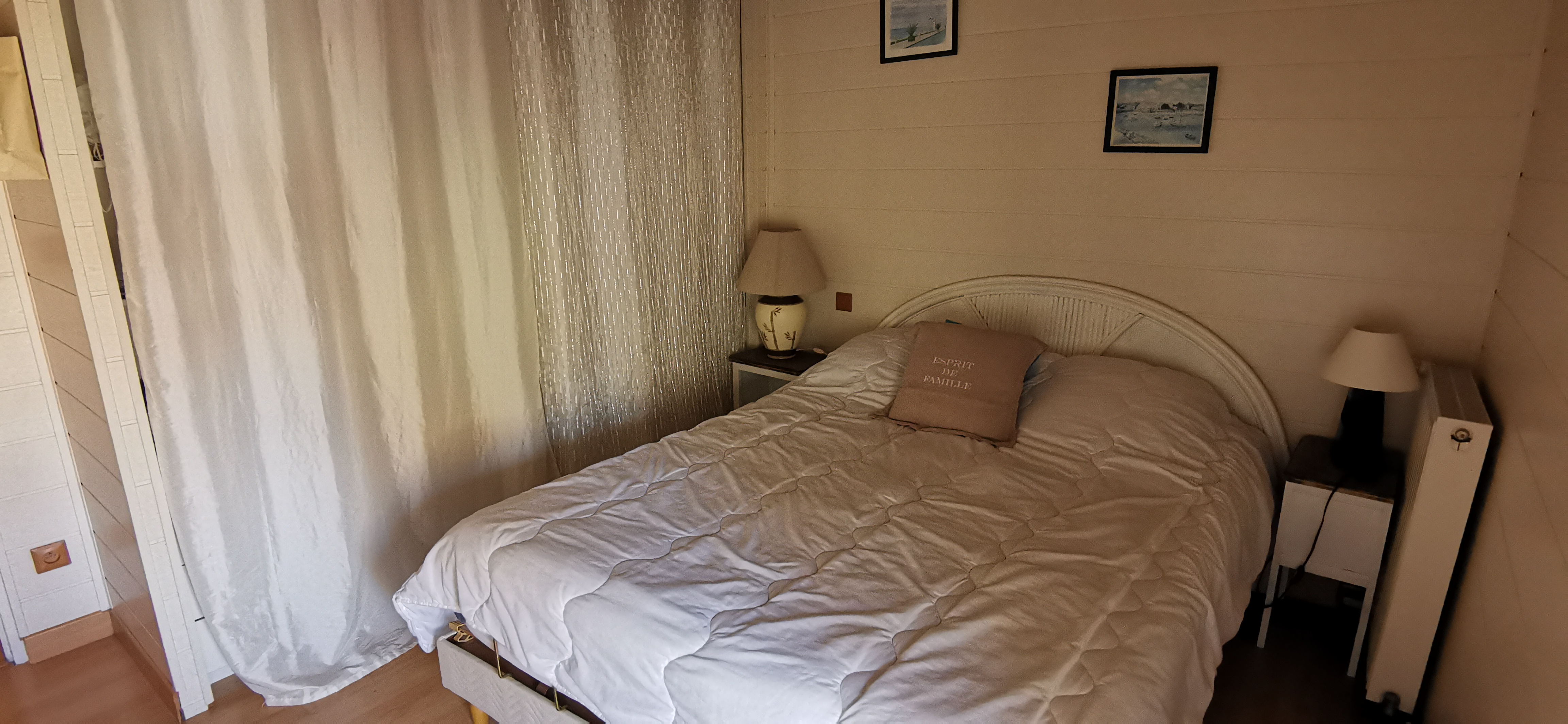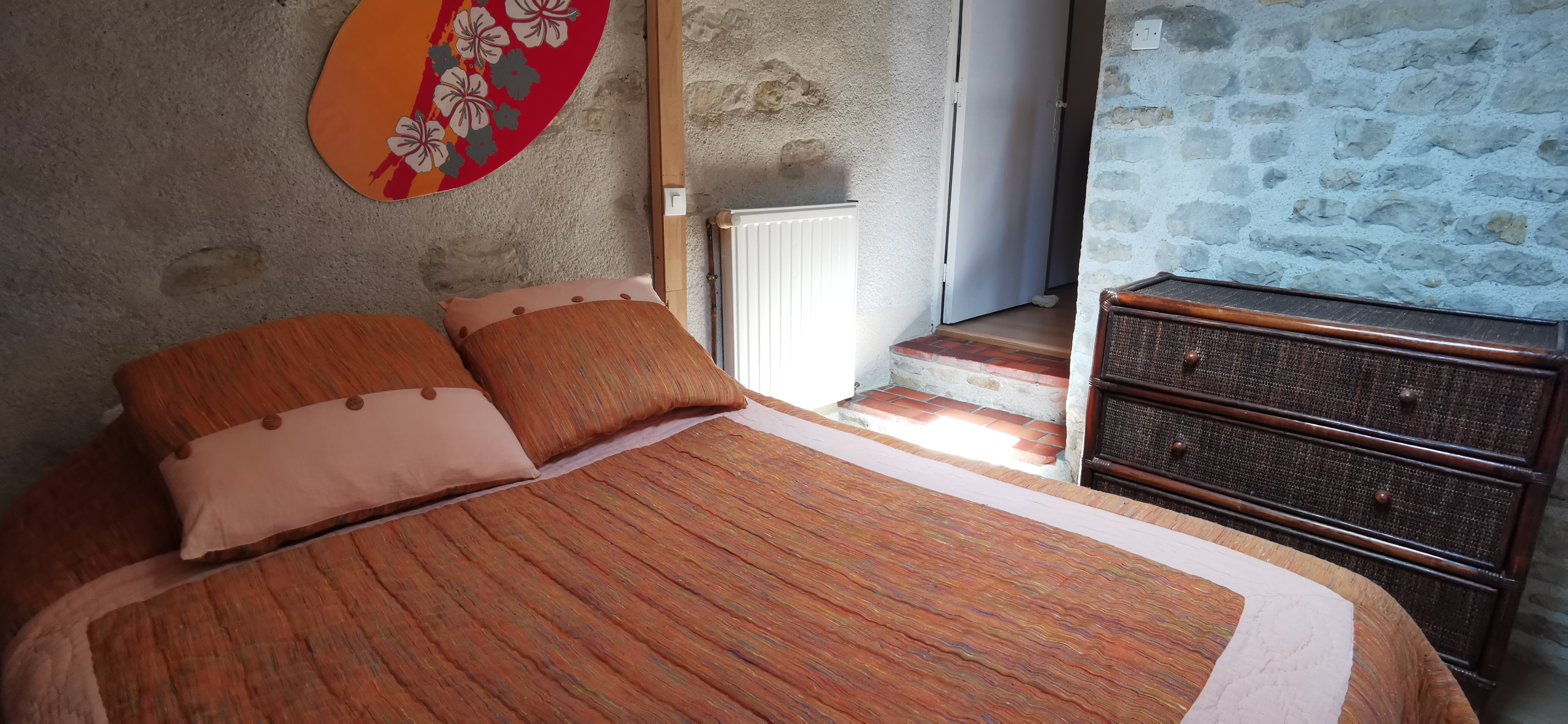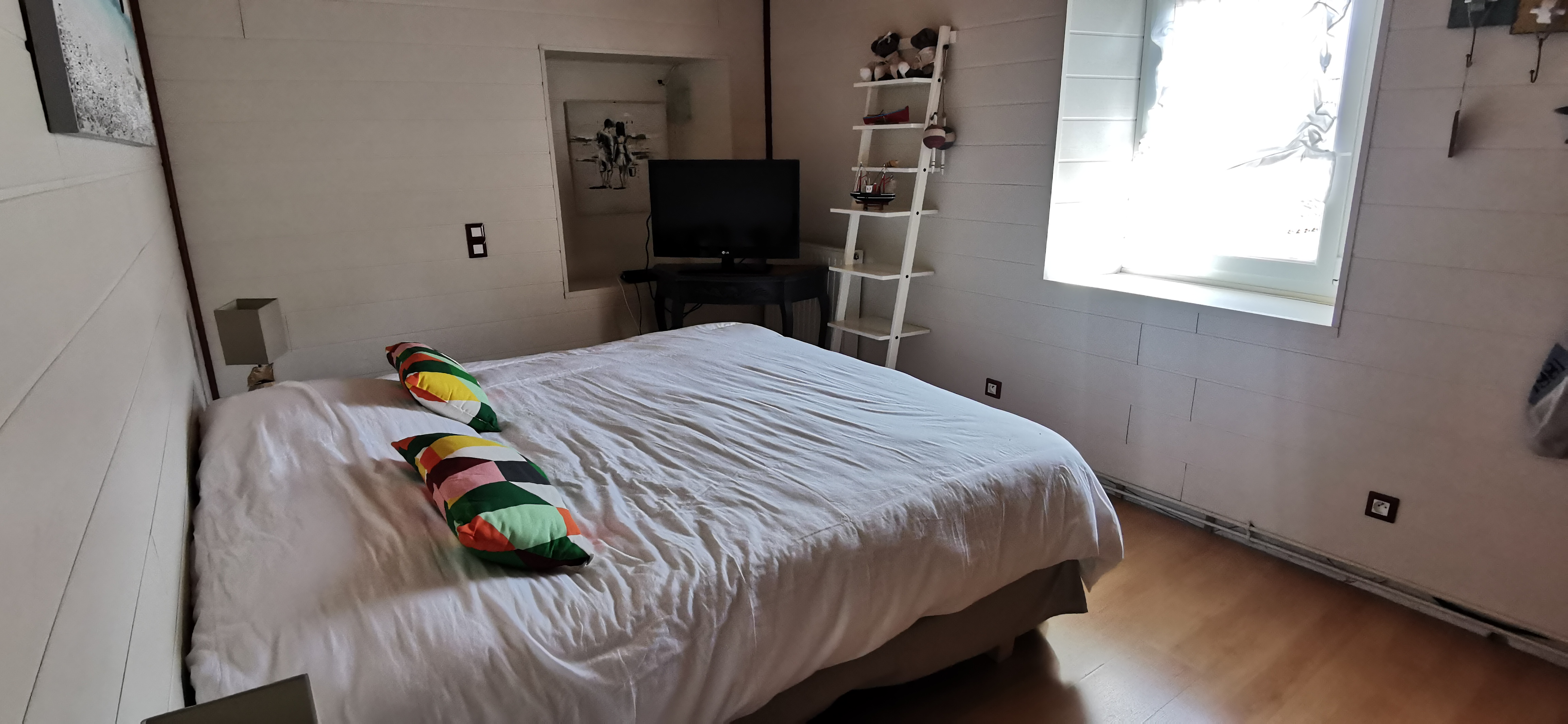 1 chambre mansardée 1 lit de 140 (la fenêtre de la chambre donne accès dans la cuisine).