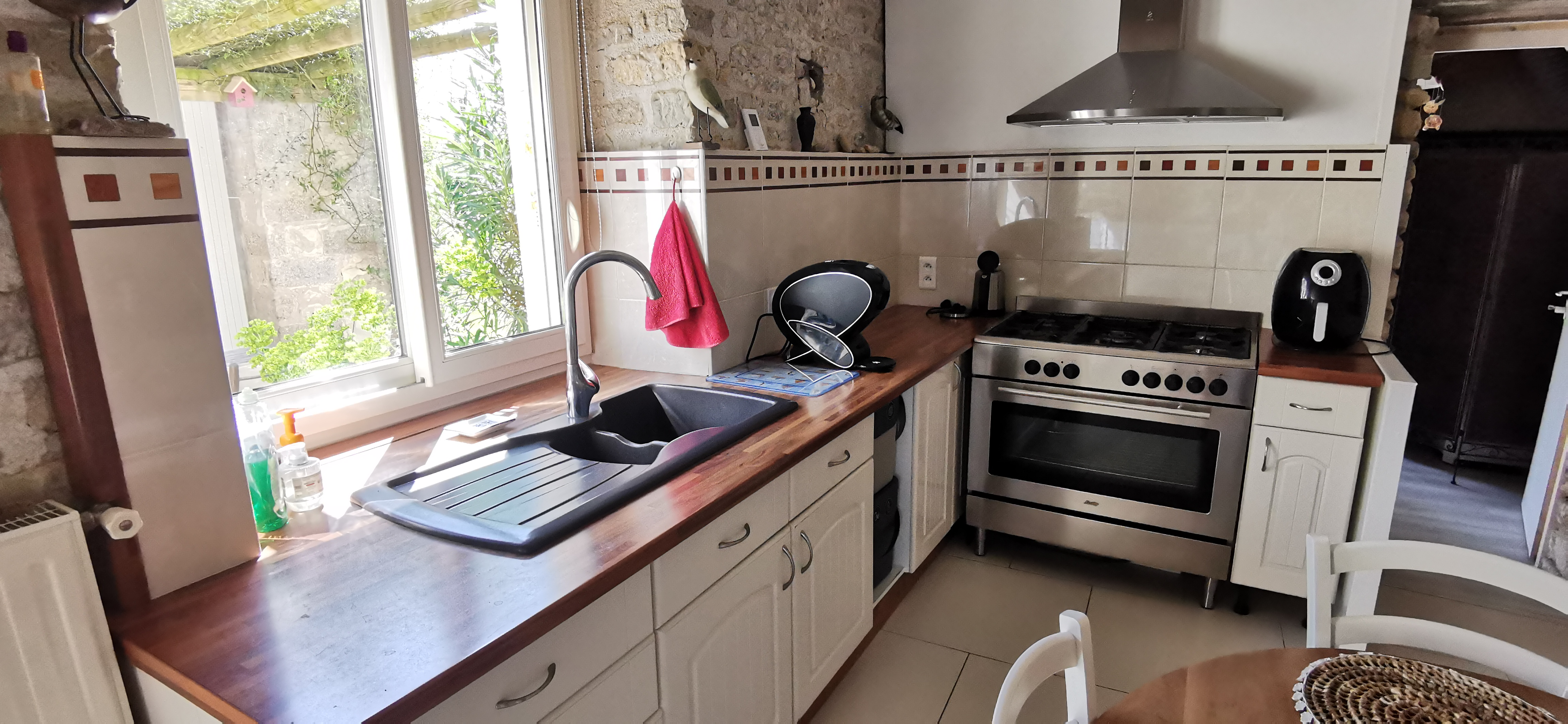 Dans la commune Le Bernard - A 300 m des commerces, 7 km de la plage du Rocher de Longeville/mer et 2,5 km du centre-ville, maison de pierres mitoyenne d'un côté, pour 6 personnes.