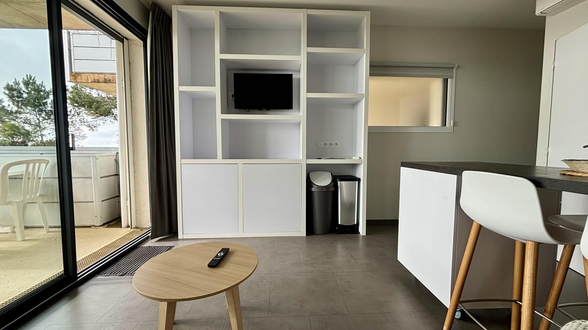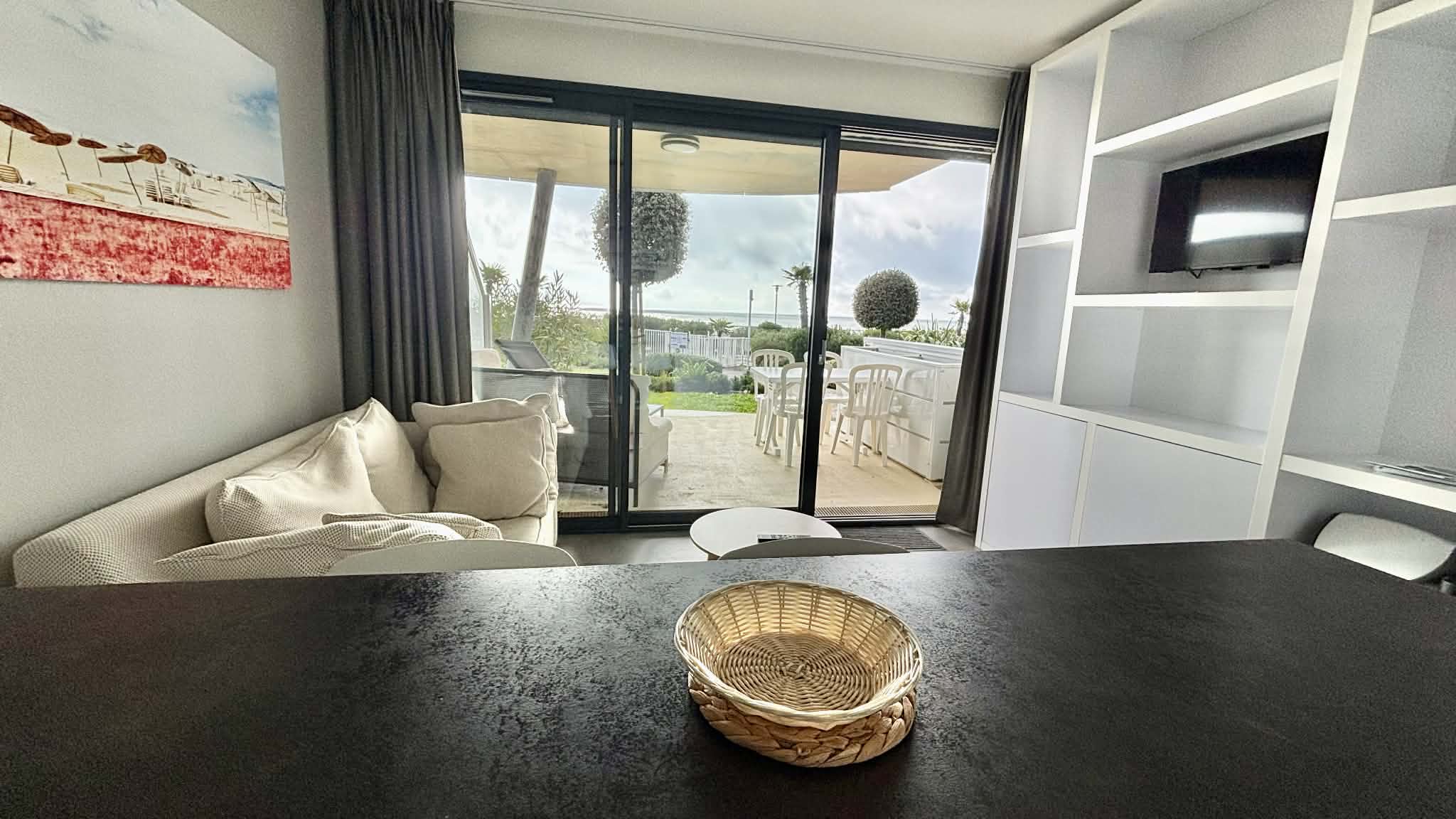 Salon/séjour avec îlot central, canapé convertible en 140, télévision écran plat,