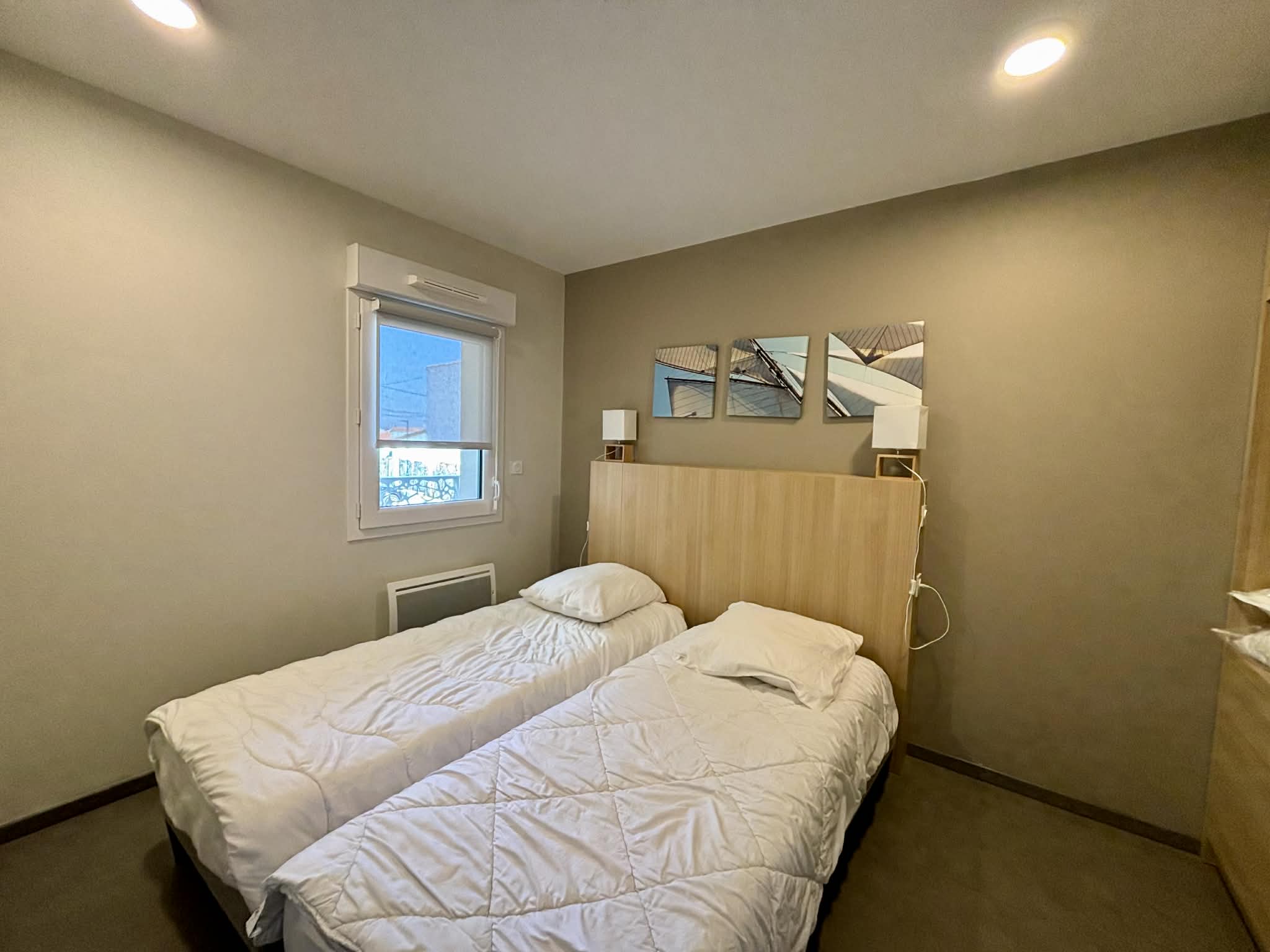 Une chambre avec deux lits de 80 pouvant se rapprocher pour faire un lit en 160 et dressing,