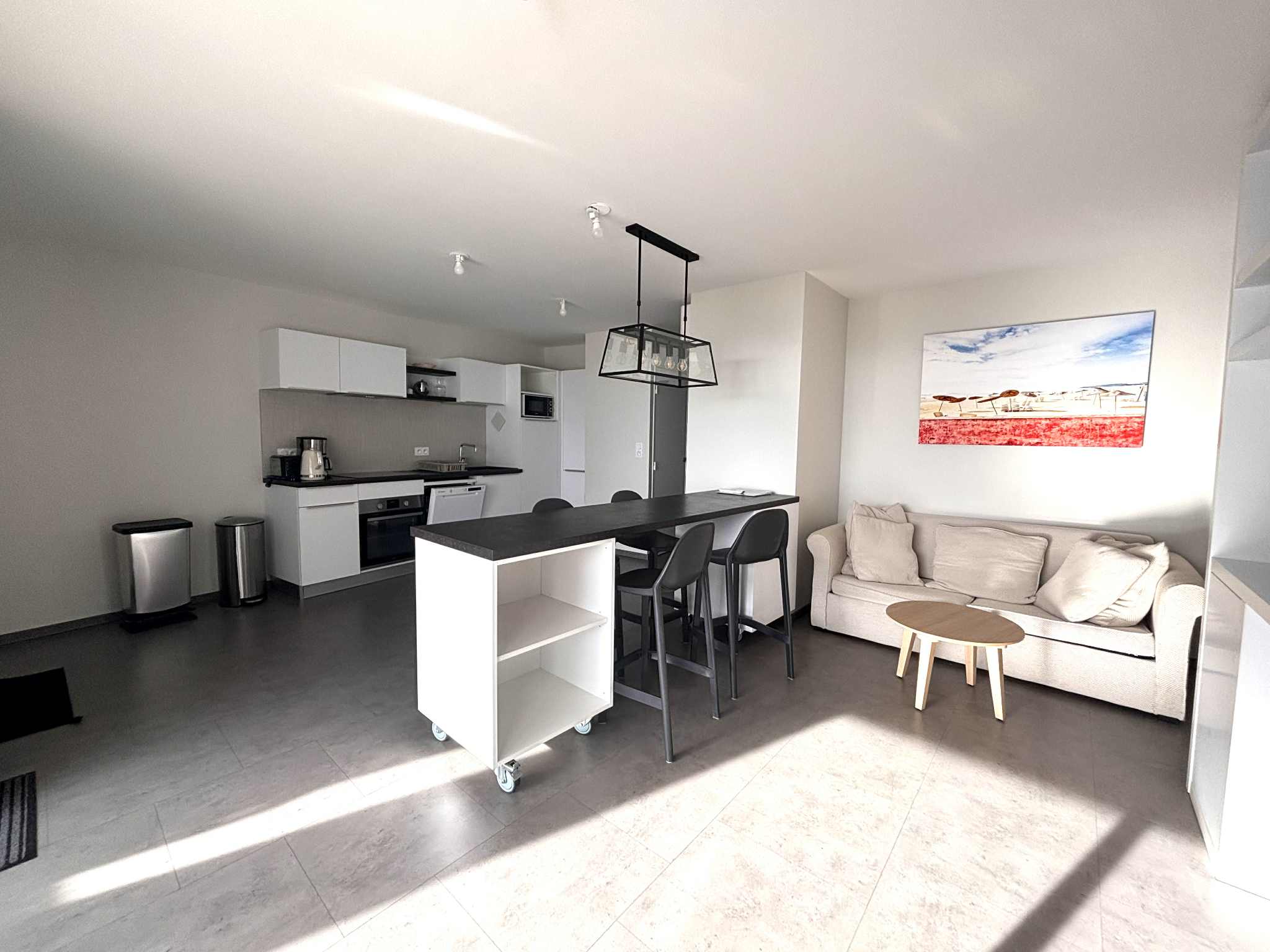 Salon/séjour avec îlot central, canapé convertible en 140, télévision écran plat,