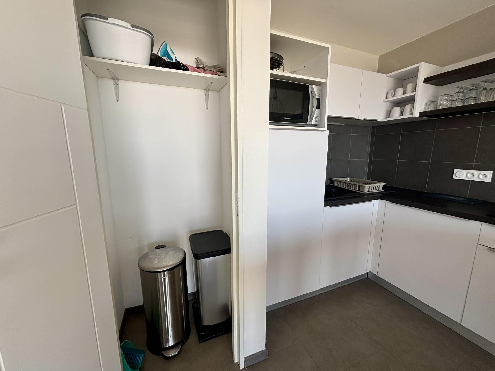Placard de rangement avec nécessaire pour le nettoyage (aspirateur, serpillère, balais),