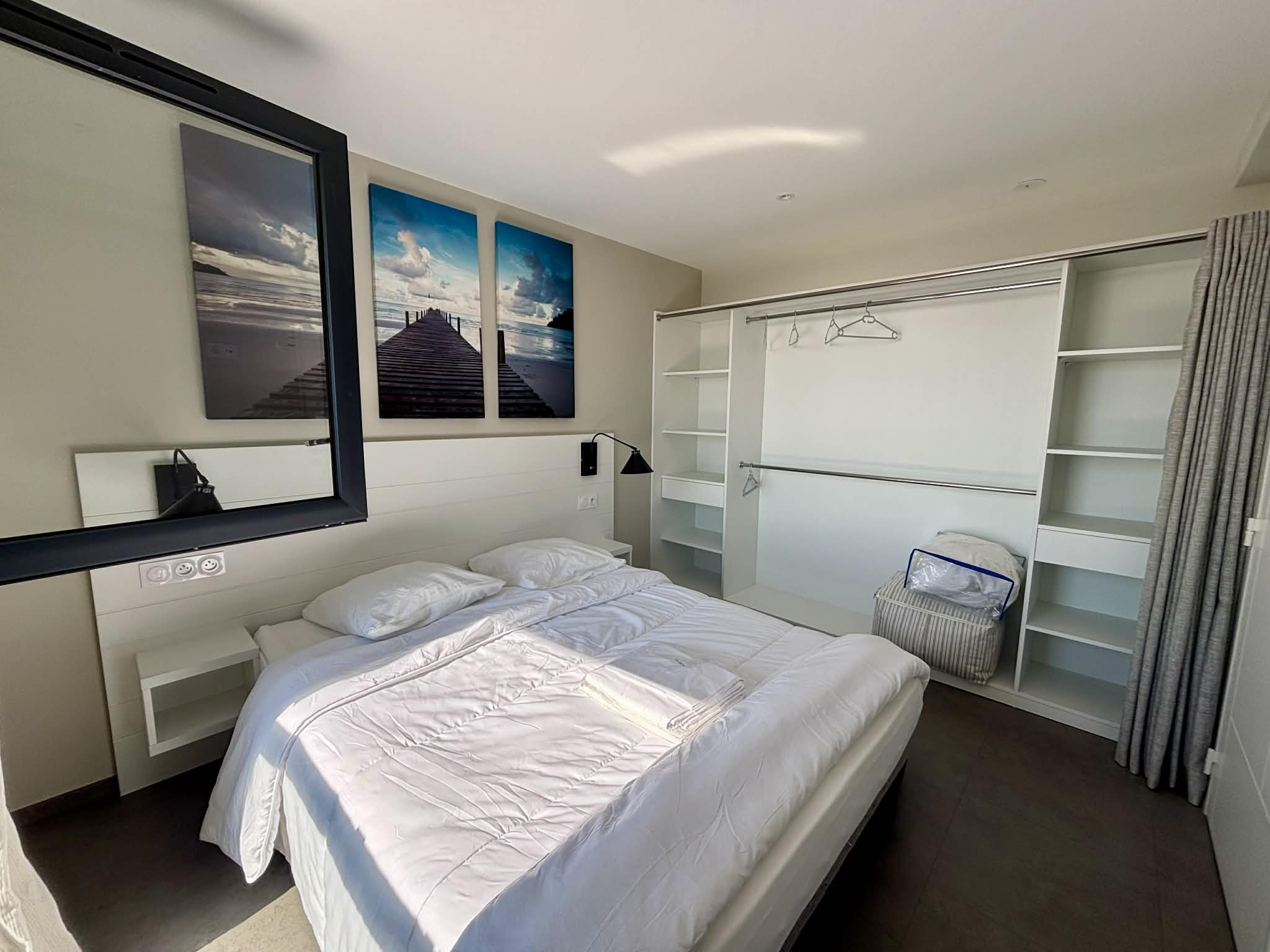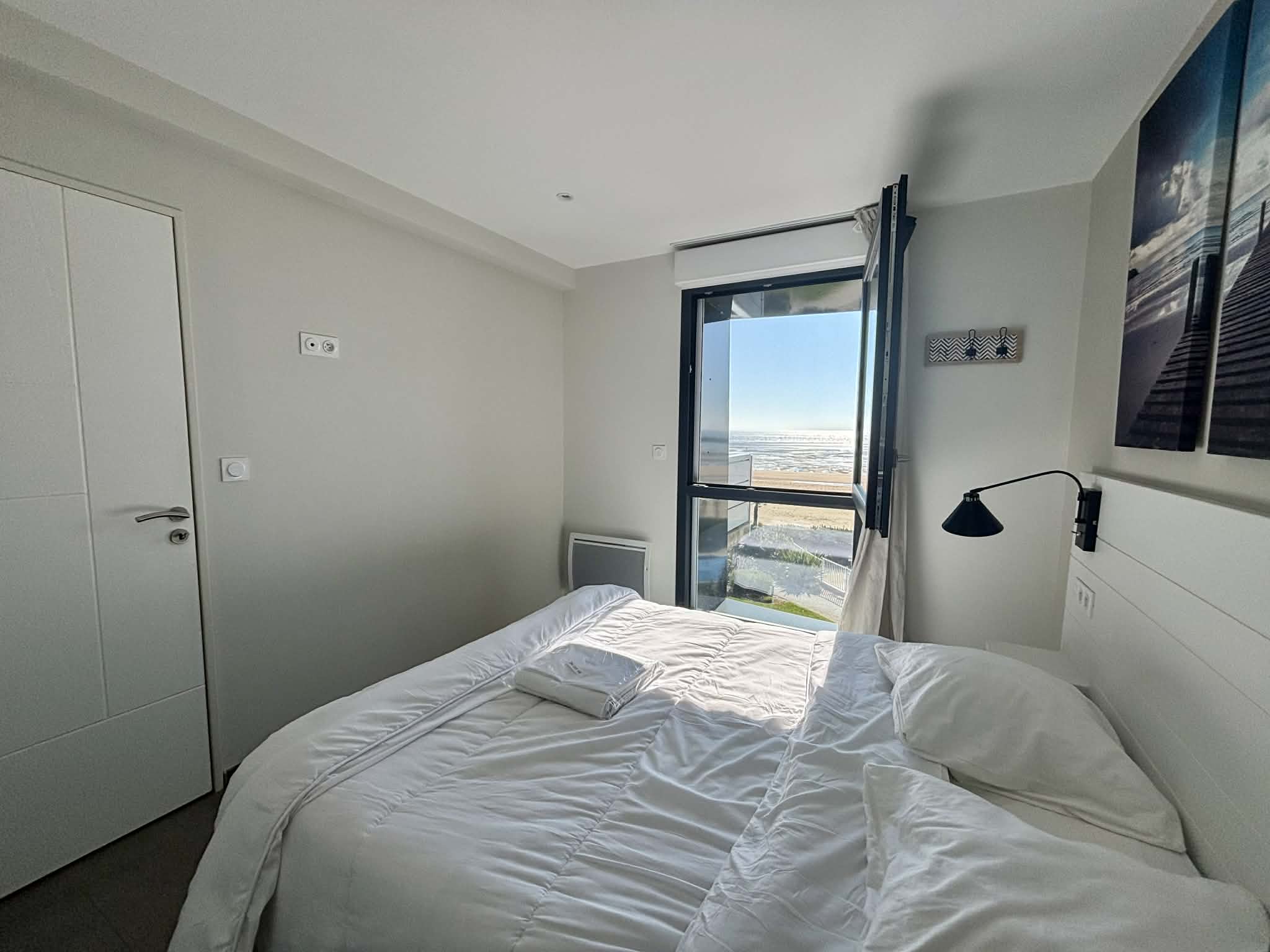 Une chambre avec un lit en 160 et dressing (fenêtre côté mer),