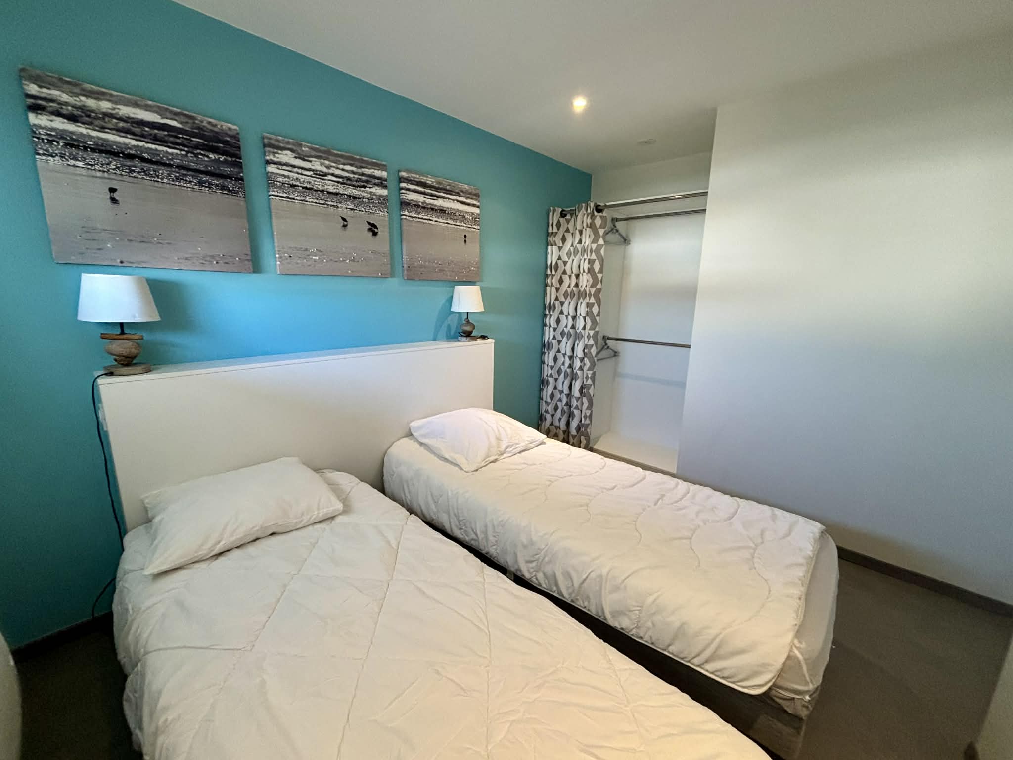 Une chambre avec deux lits de 80 pouvant se rapprocher pour faire un lit en 160 et dressing,