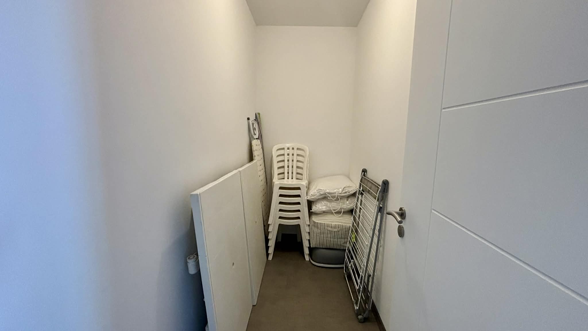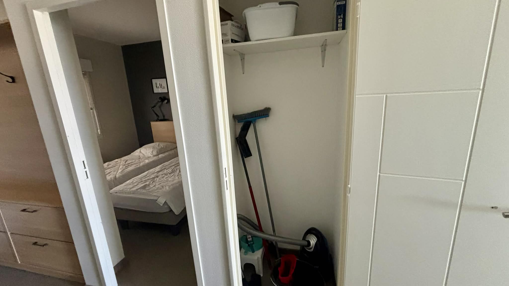 Placard de rangement avec nécessaire pour le nettoyage (aspirateur, serpillère, balais),