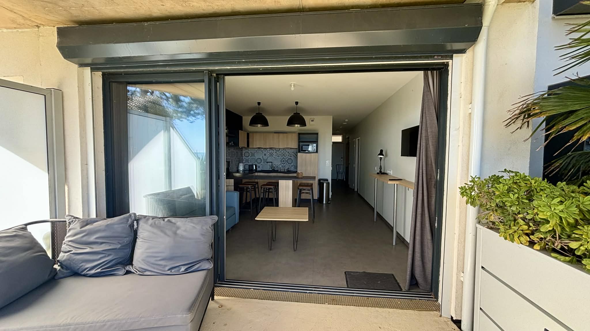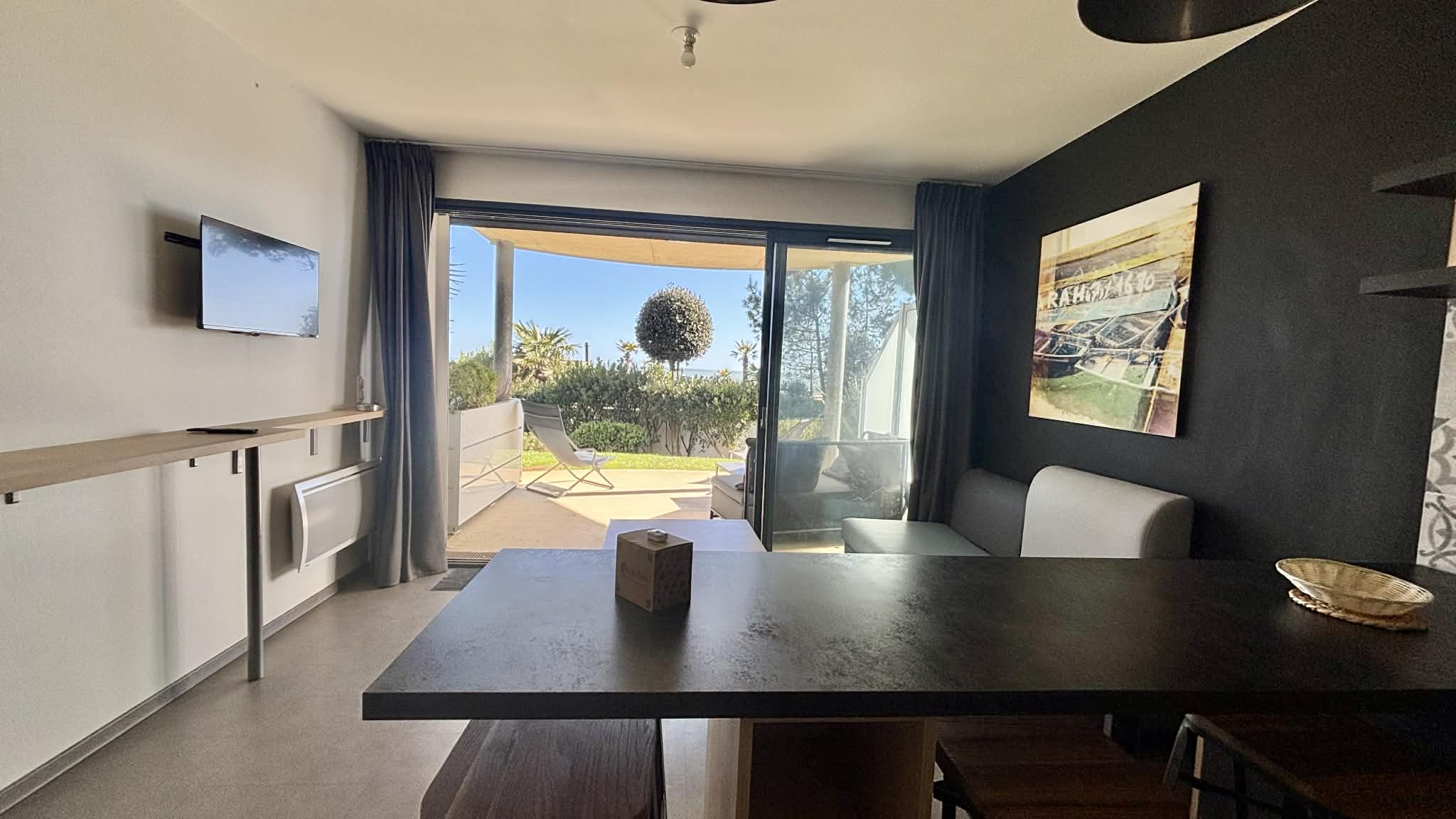 Salon/séjour avec îlot central, canapé convertible en 140, télévision écran plat,