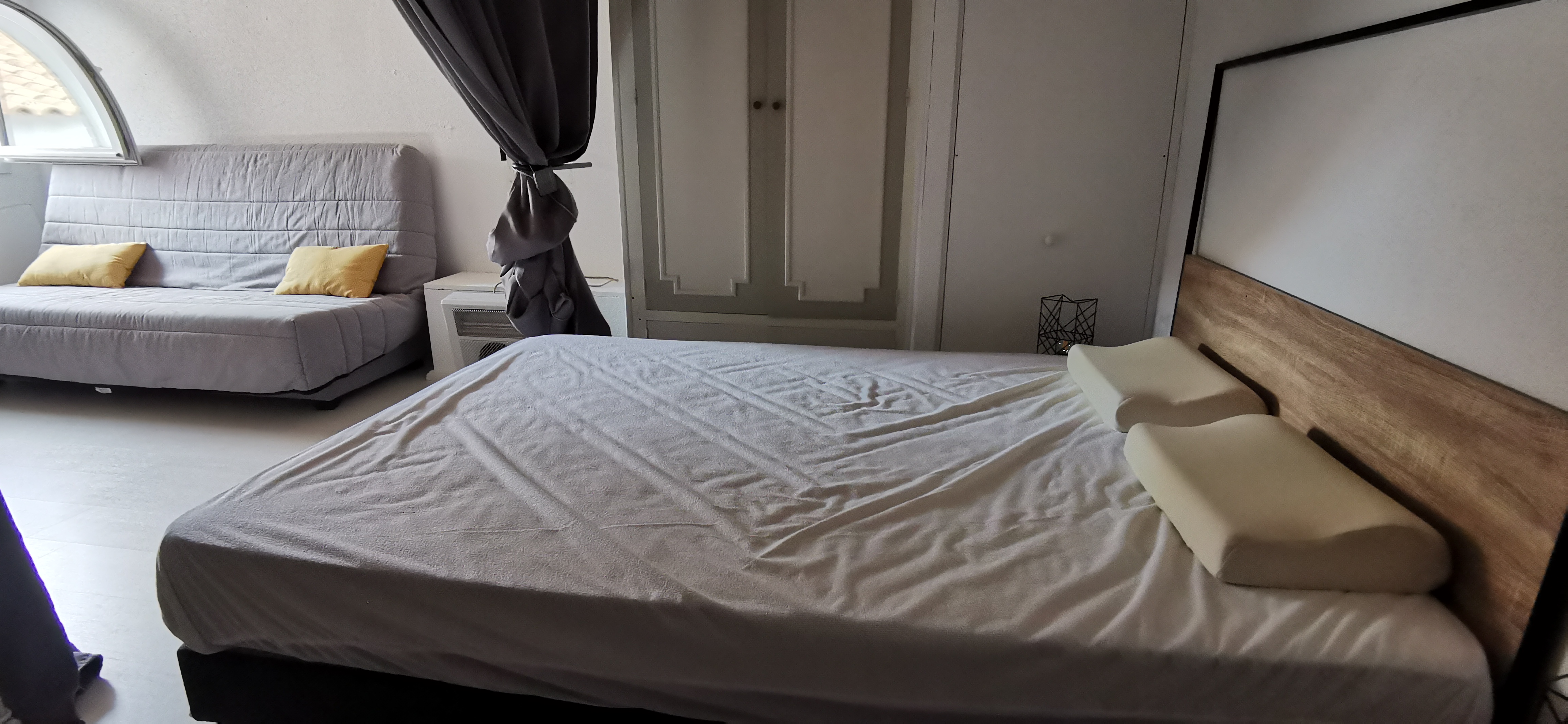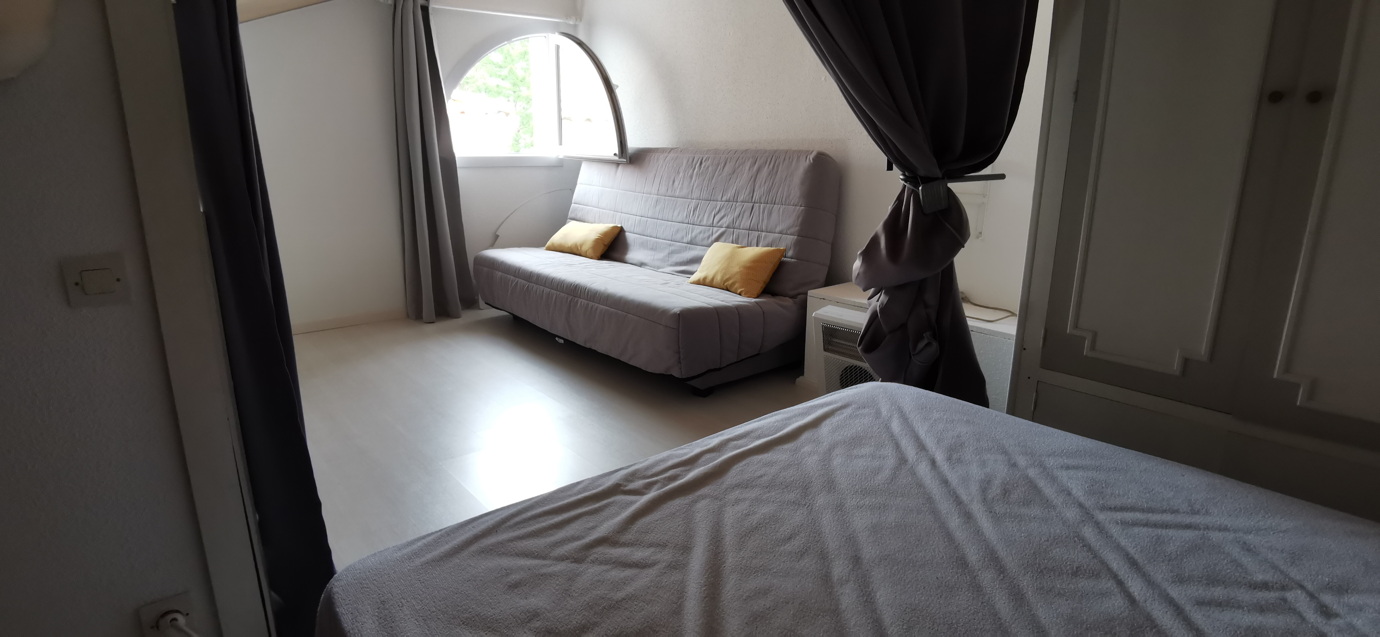 Chambre ouverte avec un lit de 160 (possibilité de fermer par un rideau).