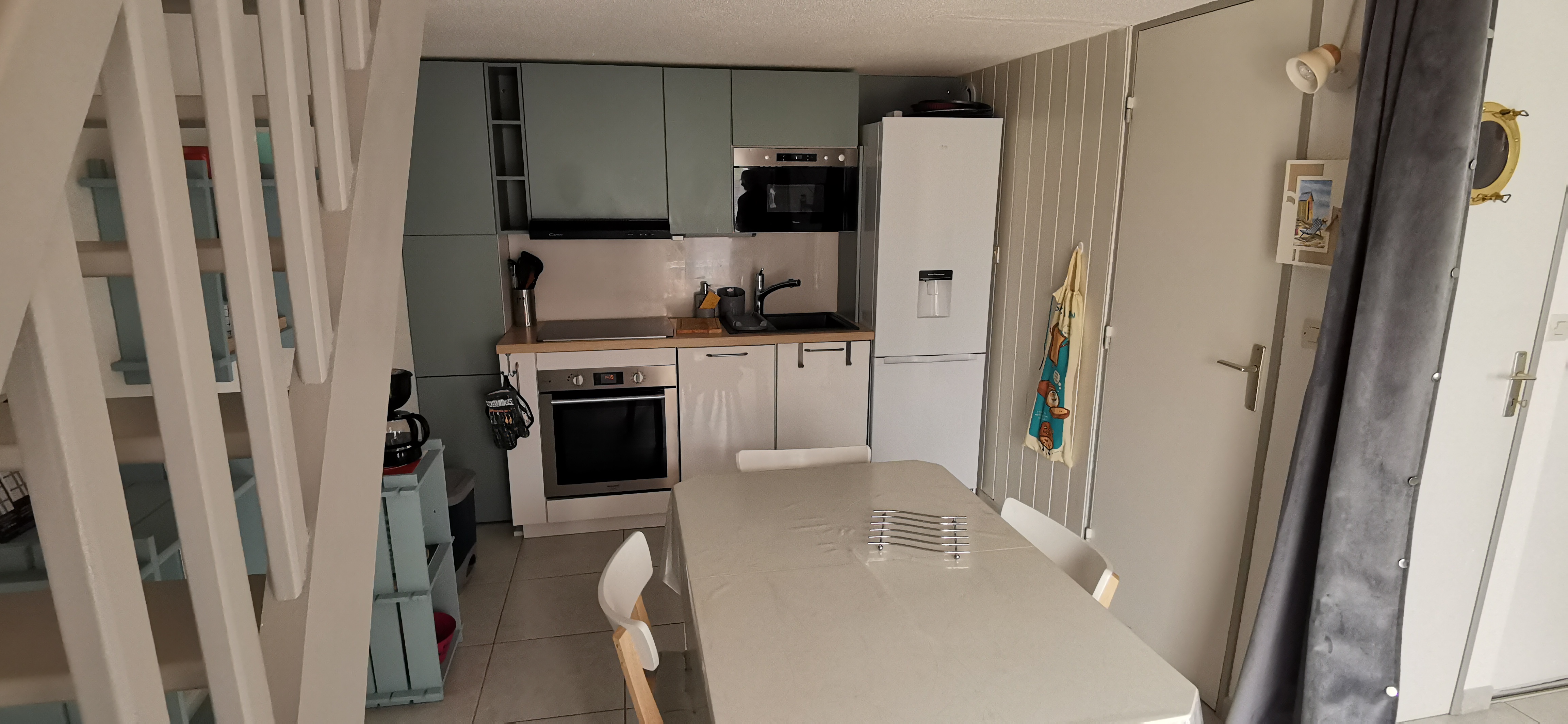 Une cuisine aménagée et équipée (plaque induction, four, réfrigérateur avec partie congélation, lave-vaisselle,...),