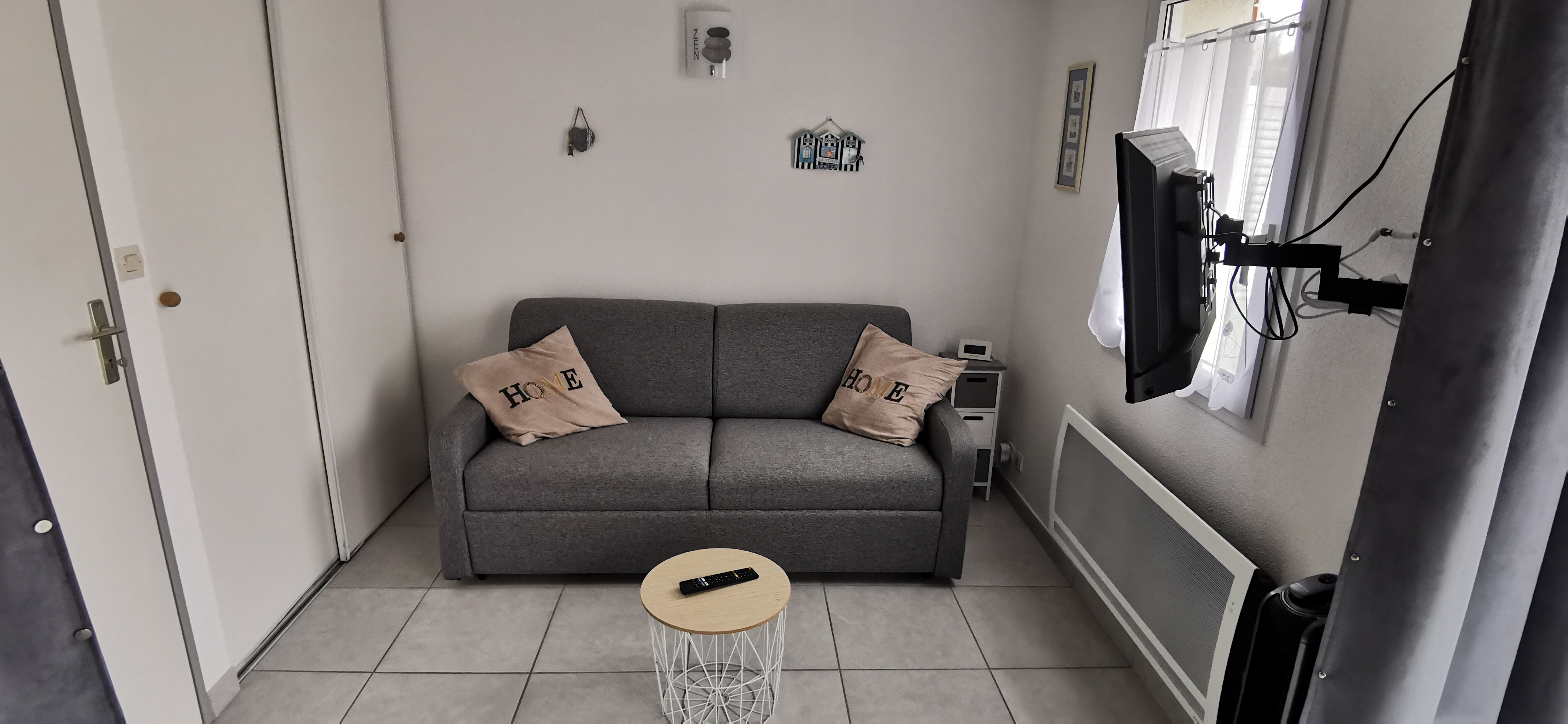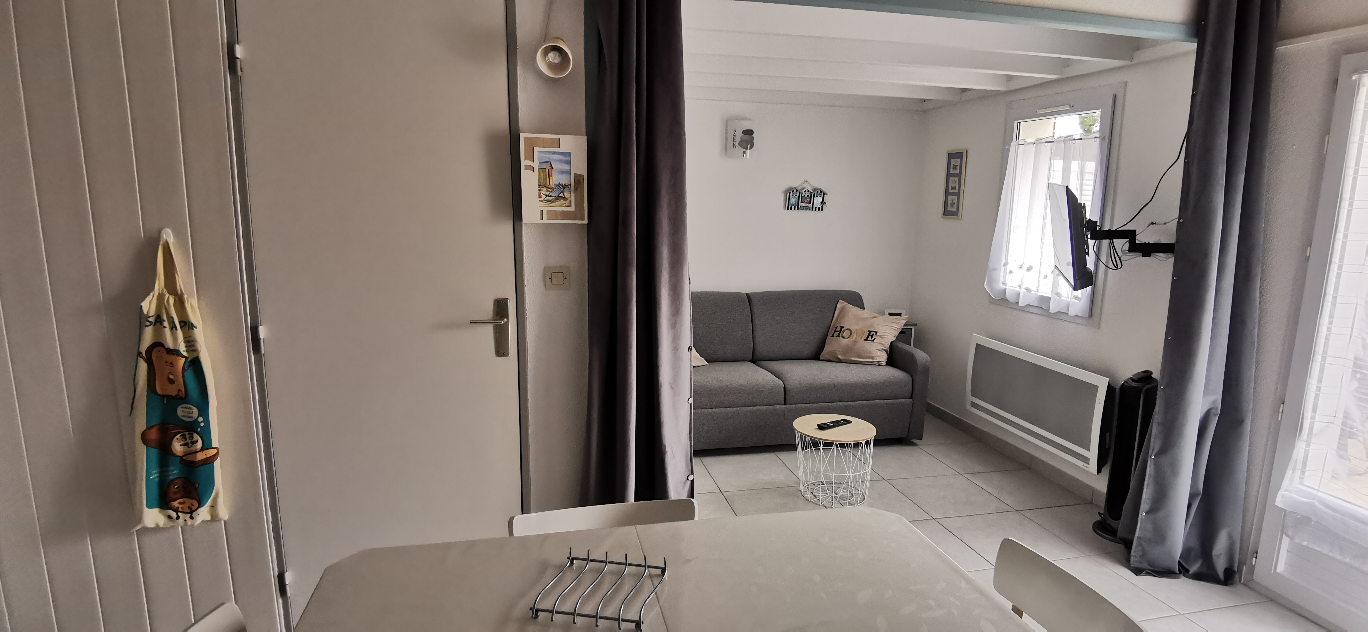 Un salon pouvant servir de chambre séparée car possibilité fermeture par rideau avec une banquette convertible.