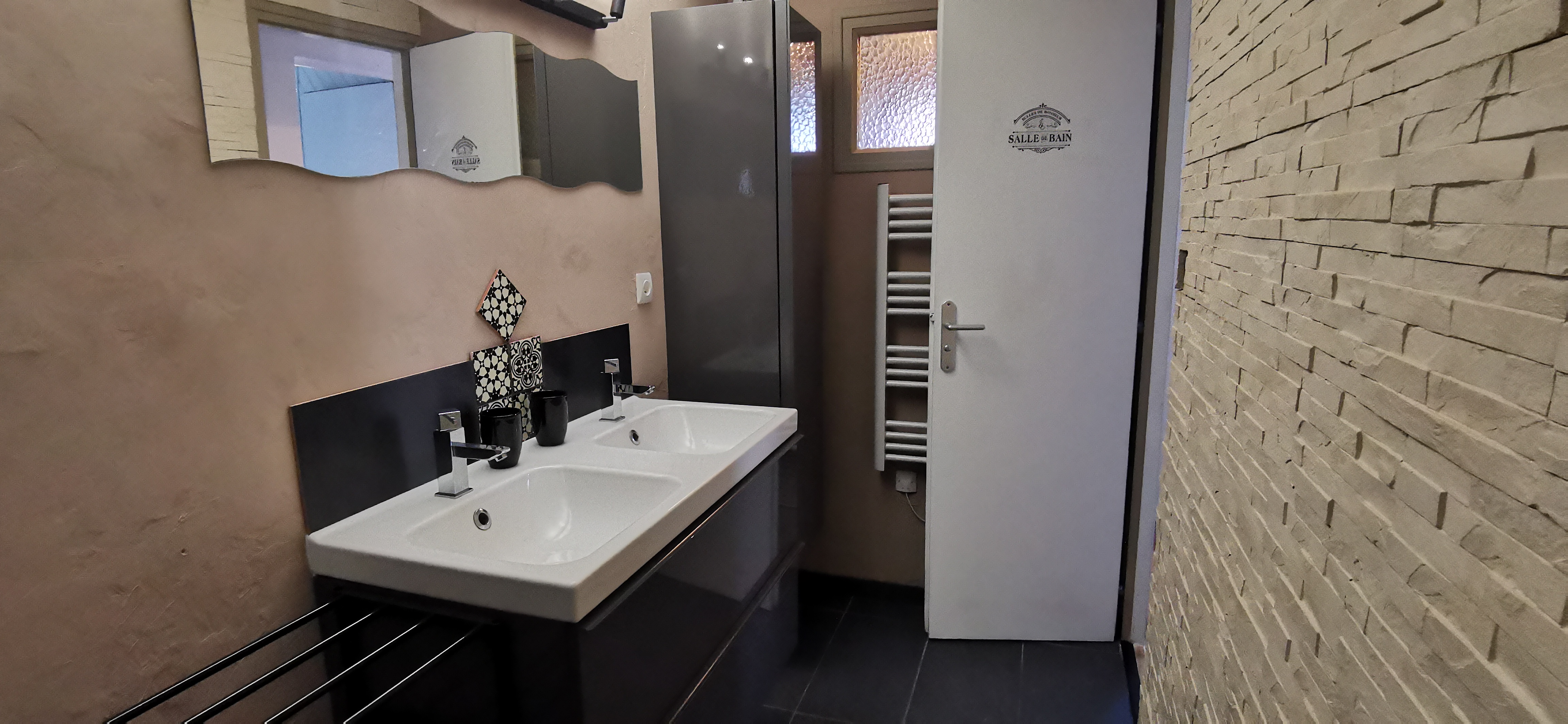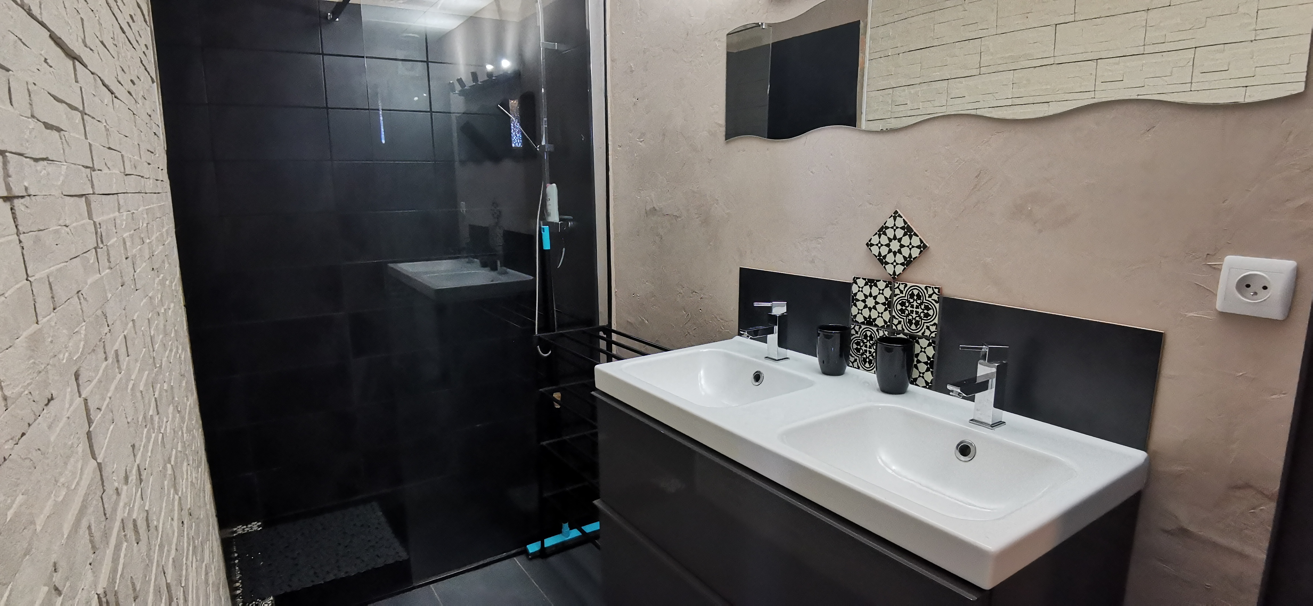 Salle d'eau avec douche, double vasques,