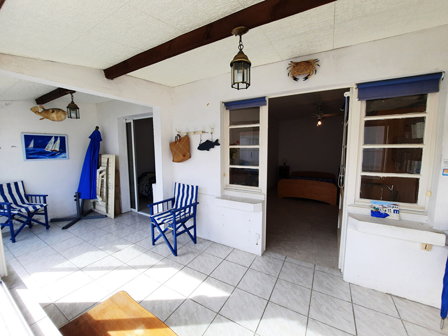 Situation idéale pour cette charmante maison située à proximité de la plage et des commerces. Elle se compose d'une pièce de vie avec cuisine aménagée et équipée, de deux chambres, d'une salle d'eau avec WC, ainsi que d'une véranda lumineuse.