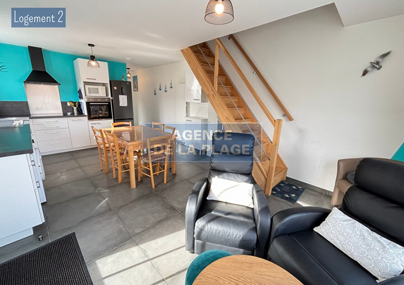 Une première maison de 61 m² comprenant une cuisine aménagée et équipée, une pièce de vie, un dégagement, une chambre ainsi qu'une salle d'eau avec toilettes.